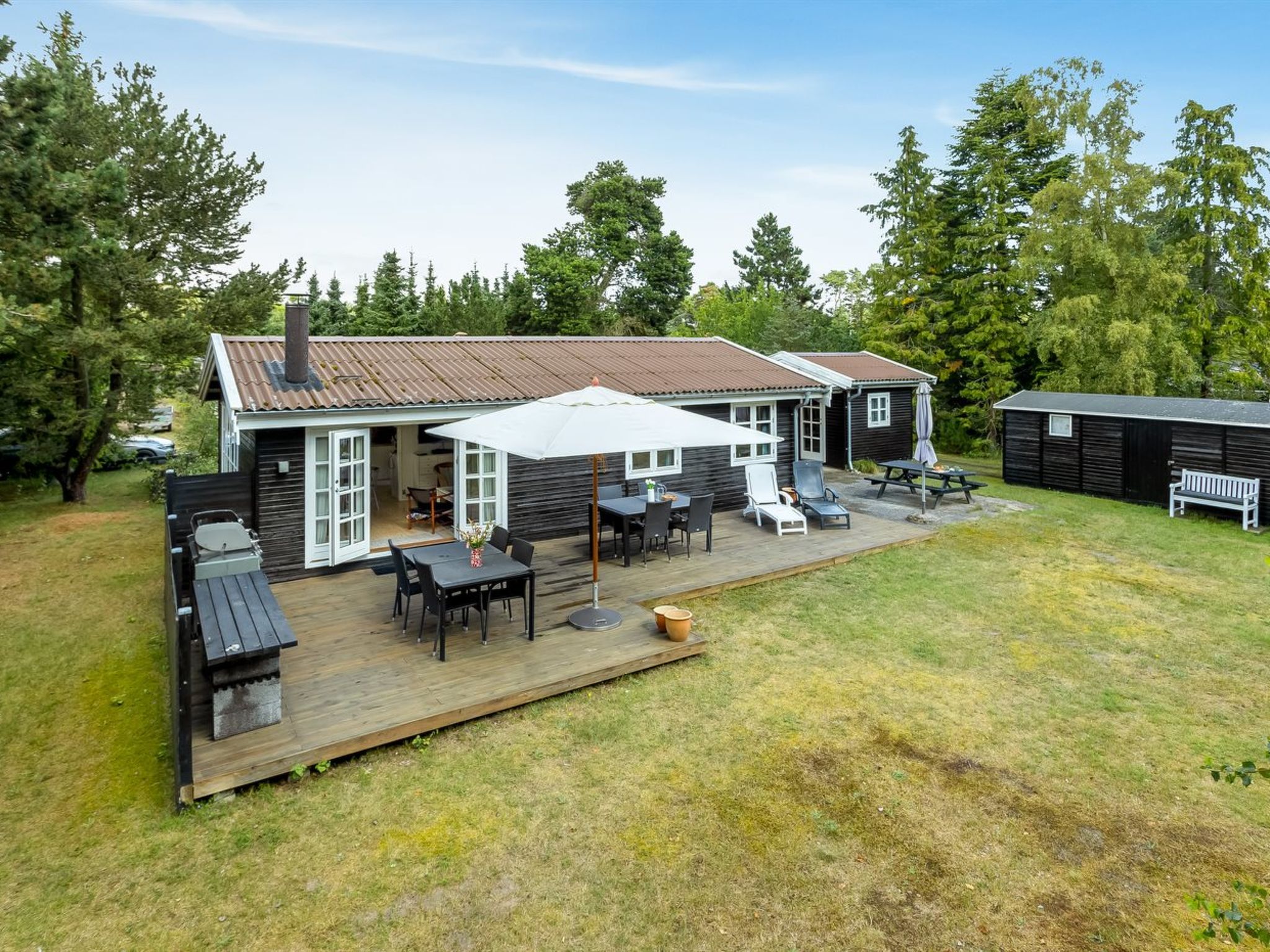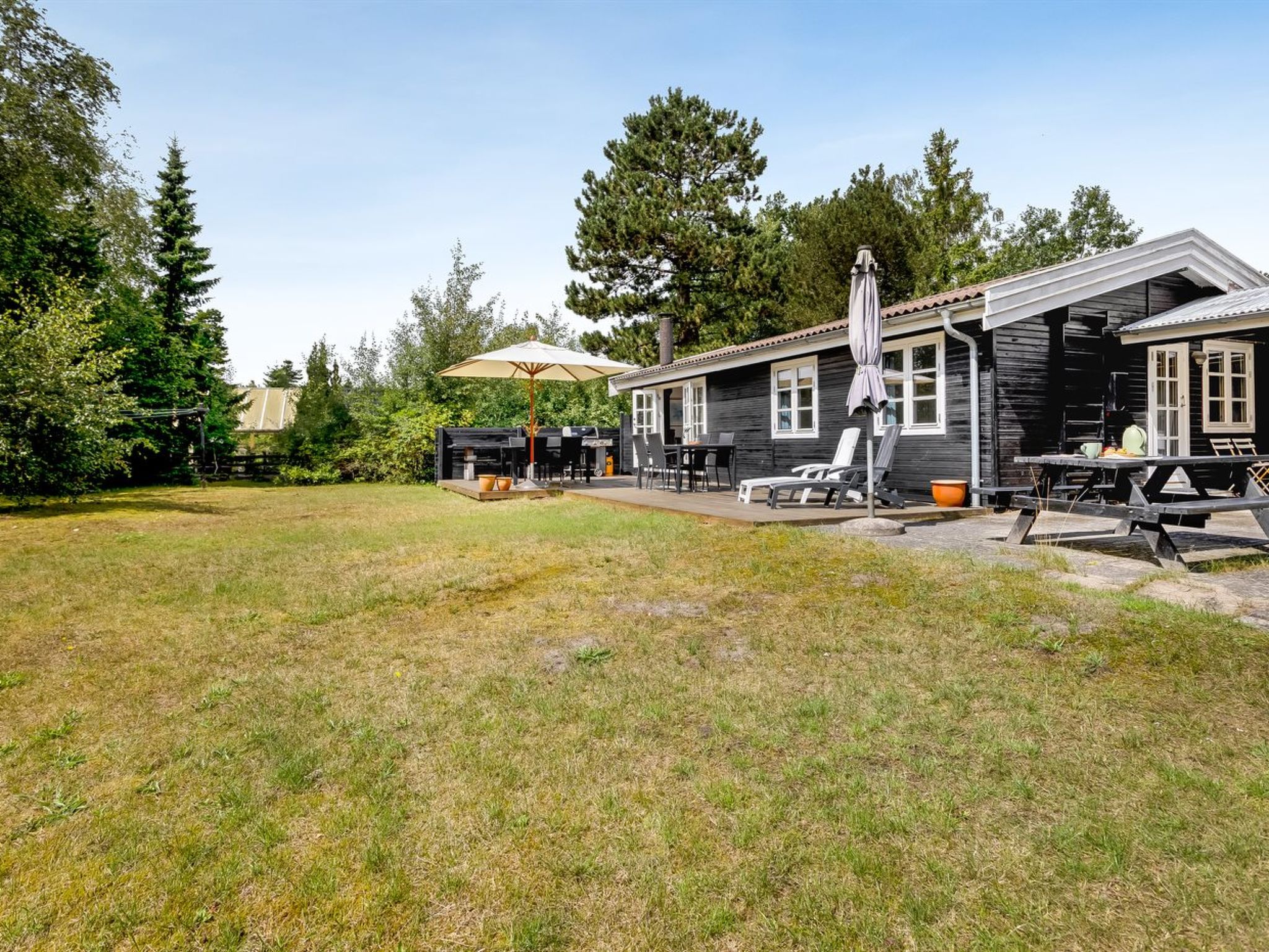 Einfamilienhaus, Baujahr 1975. 200 m vom Meer. Zur Alleinbenutzung: naturbelassenes Grundstück 1'080 m2. Terrasse (55 m2), Grill, Kinderspielplatz (Schaukel), Parkplatz beim Haus. Lebensmittelgeschäft 450 m. Der Besitzer akzeptiert keine Jugendgruppen.