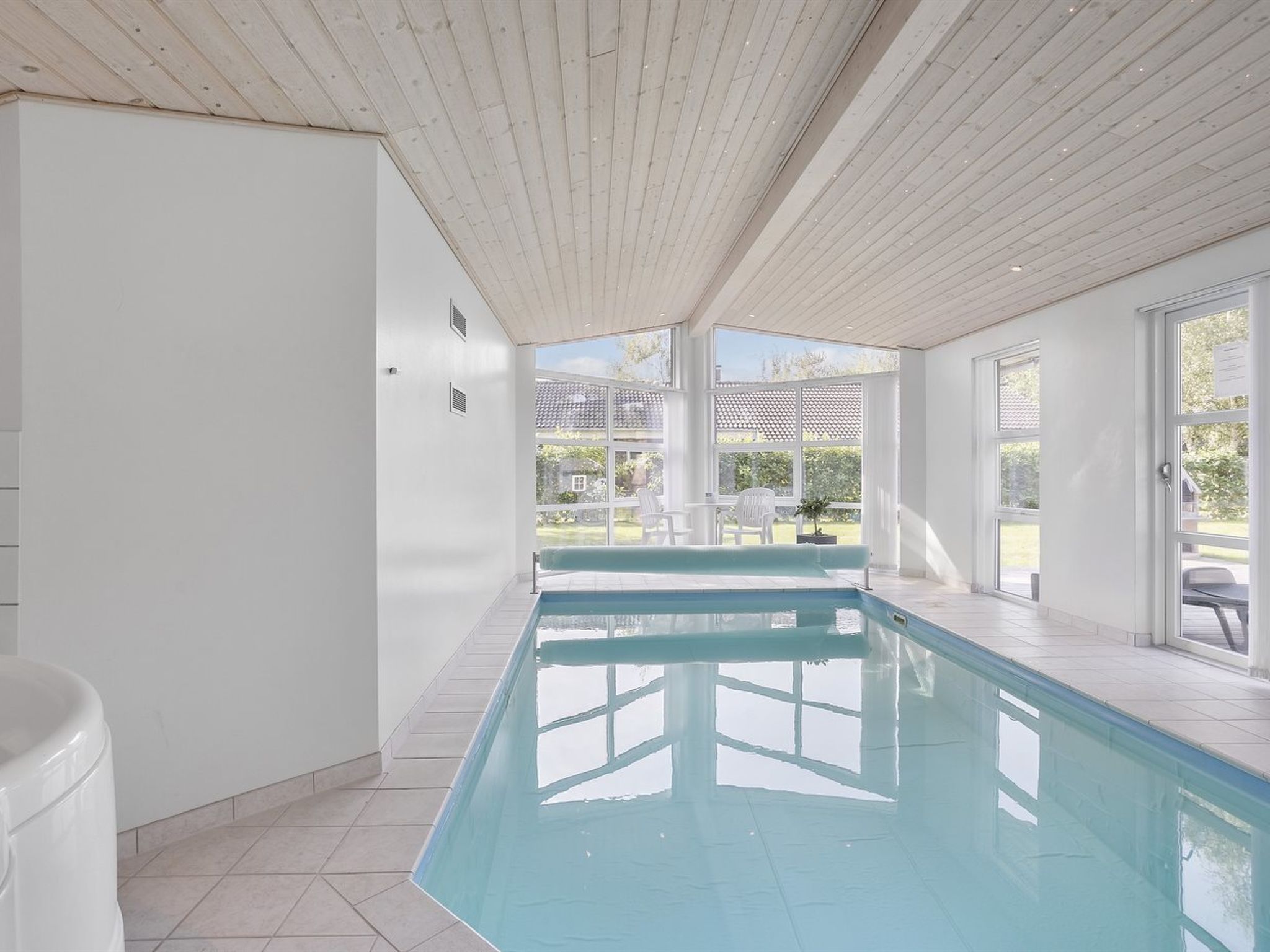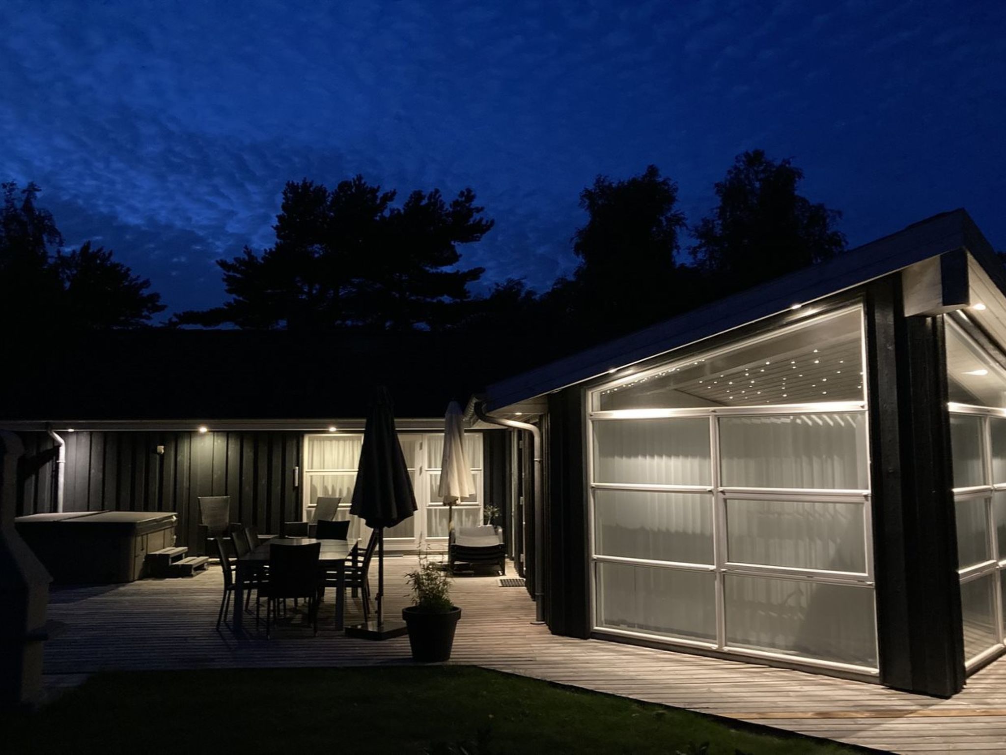 Einfamilienhaus, Baujahr 2010. 600 m vom Meer. Zur Alleinbenutzung: Grundstück 980 m2, gepflegter Garten, Hallenbad (3 x 5 m, 1'5.6 m2, 140 - 140 cm tief). Terrasse (70 m2), Grill, Kinderspielplatz (Schaukel). Im Hause: Sauna, Waschmaschine, Wäschetrockner. Parkplatz beim Haus. Lebensmittelgeschäft 100 m. Der Besitzer akzeptiert keine Jugendgruppen.