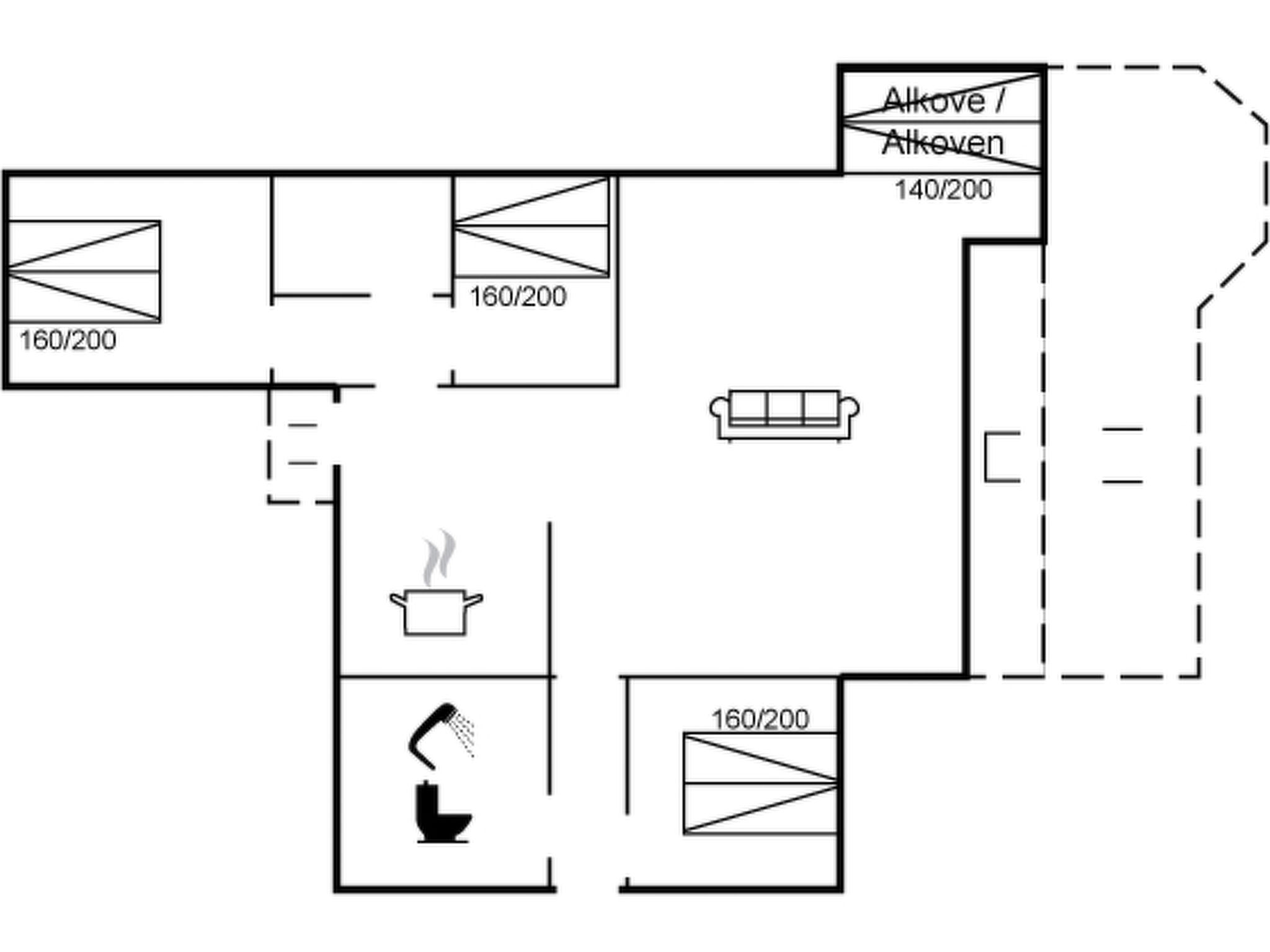 Einfamilienhaus, Baujahr 1988. 200 m vom Meer. Zur Alleinbenutzung: Grundstück 6'350 m2, gepflegter Garten. Terrasse (13 m2). Im Hause: Waschmaschine, Wäschetrockner. Lebensmittelgeschäft 700 m. Golfplatz 2 km. Der Besitzer akzeptiert keine Jugendgruppen.