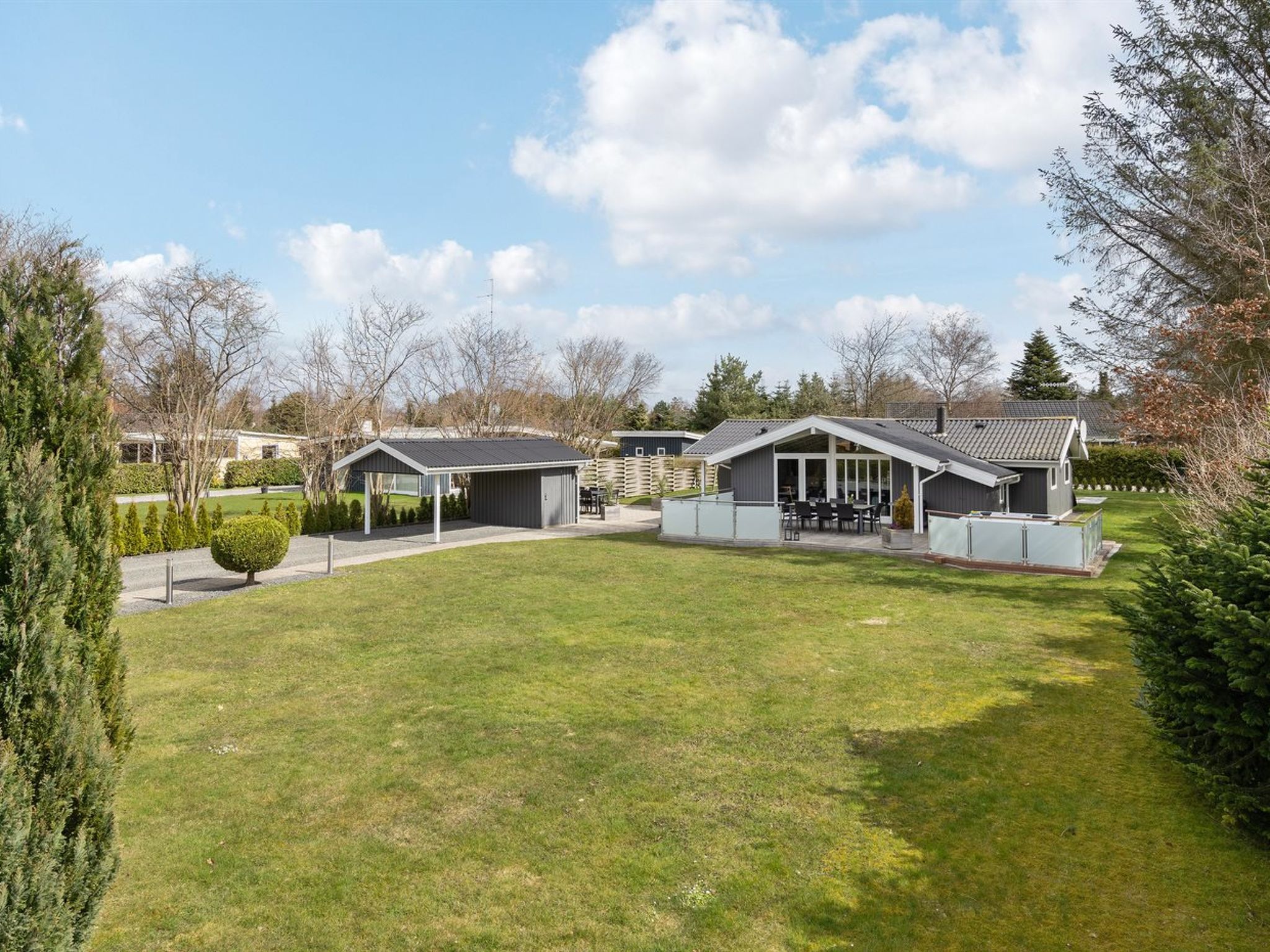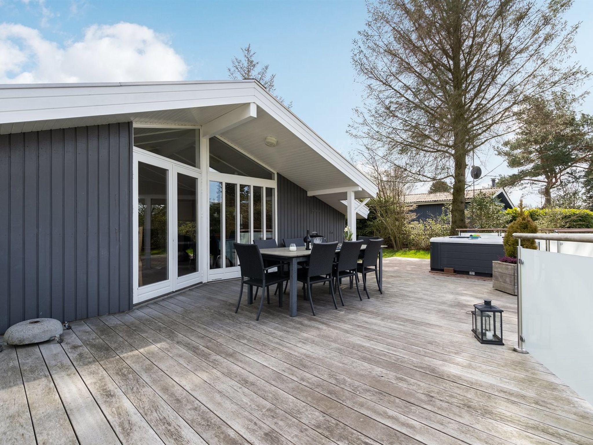 Einfamilienhaus, Baujahr 1996. 800 m vom Meer. Zur Alleinbenutzung: Grundstück 1'000 m2, gepflegter Garten. Terrasse (50 m2), Grill, Kinderspielplatz (Schaukel). Im Hause: Sauna, Waschmaschine. Parkplatz beim Haus. Carport. Lebensmittelgeschäft 500 m. Golfplatz 2 km. Der Besitzer akzeptiert keine Jugendgruppen.