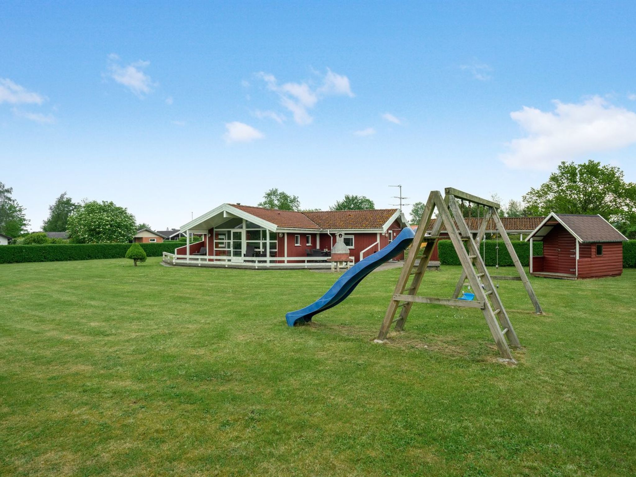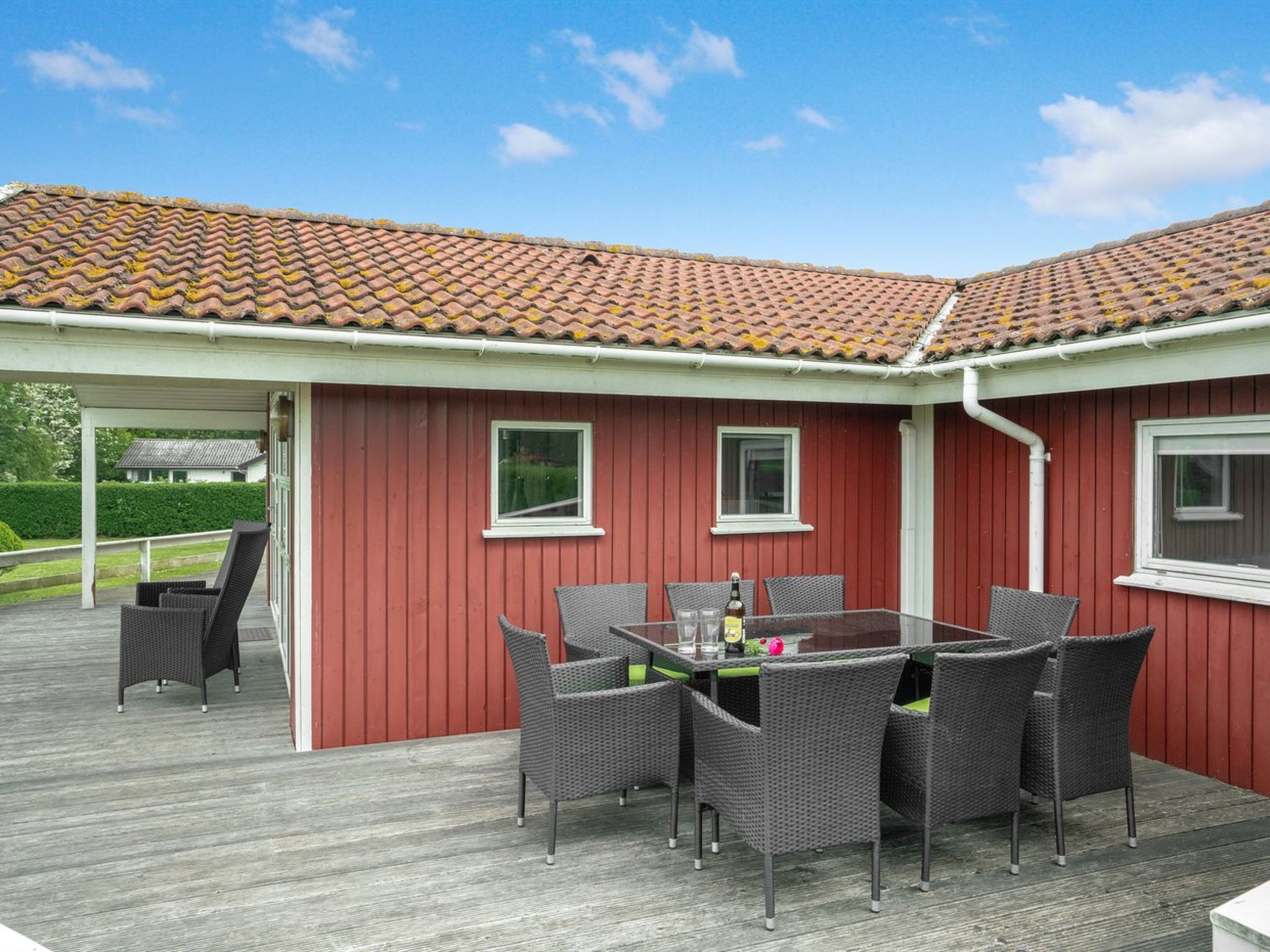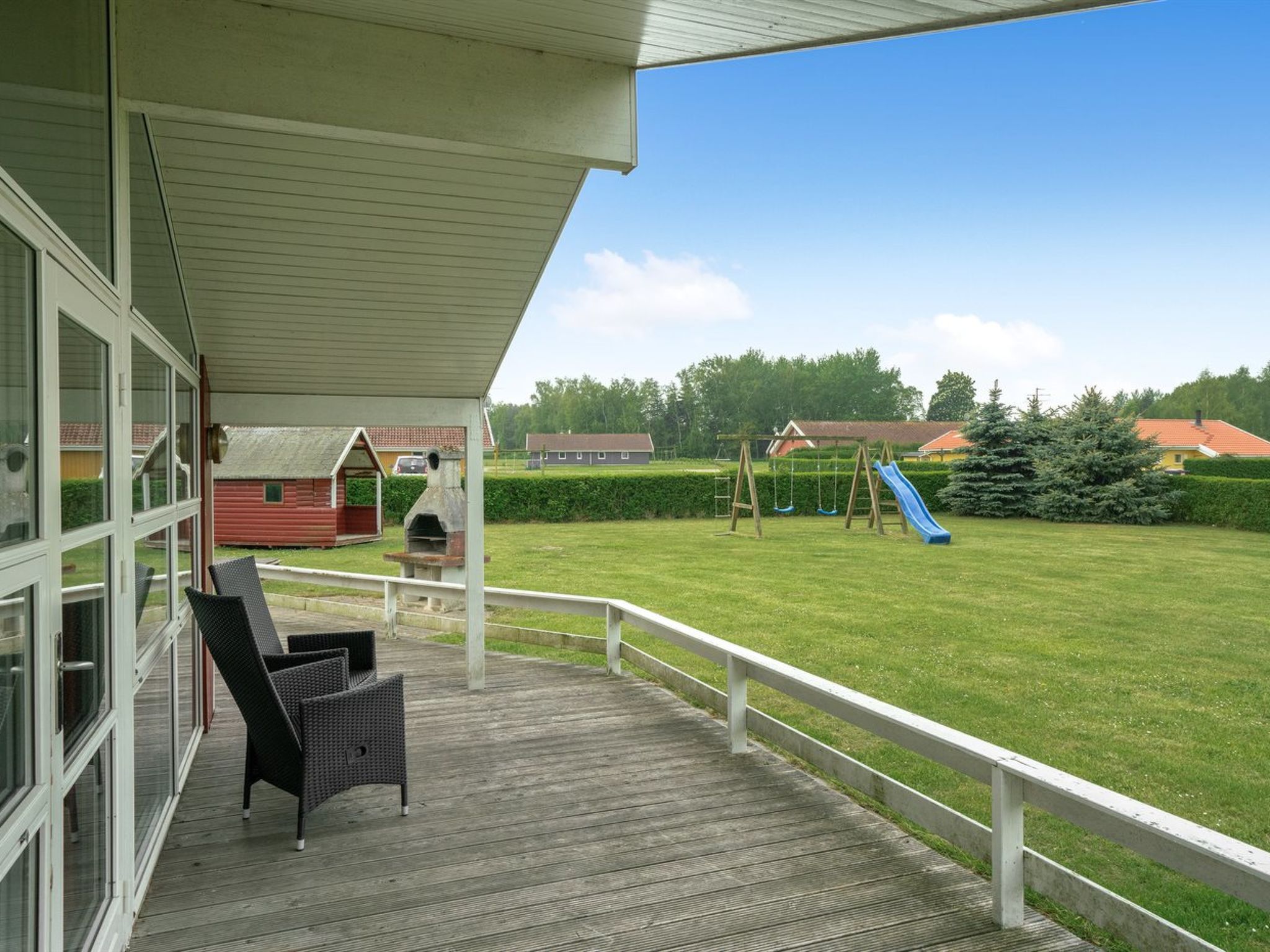Einfamilienhaus, Baujahr 1996. 250 m vom Meer. Zur Alleinbenutzung: naturbelassenes Grundstück 1'549 m2. Terrasse (60 m2), Grill, Kinderspielplatz (Rutschbahn, Schaukel). Im Hause: Sauna, Solarium, Trampolin, Waschmaschine, Wäschetrockner. Parkplatz beim Haus. Carport. Lebensmittelgeschäft 3 km.