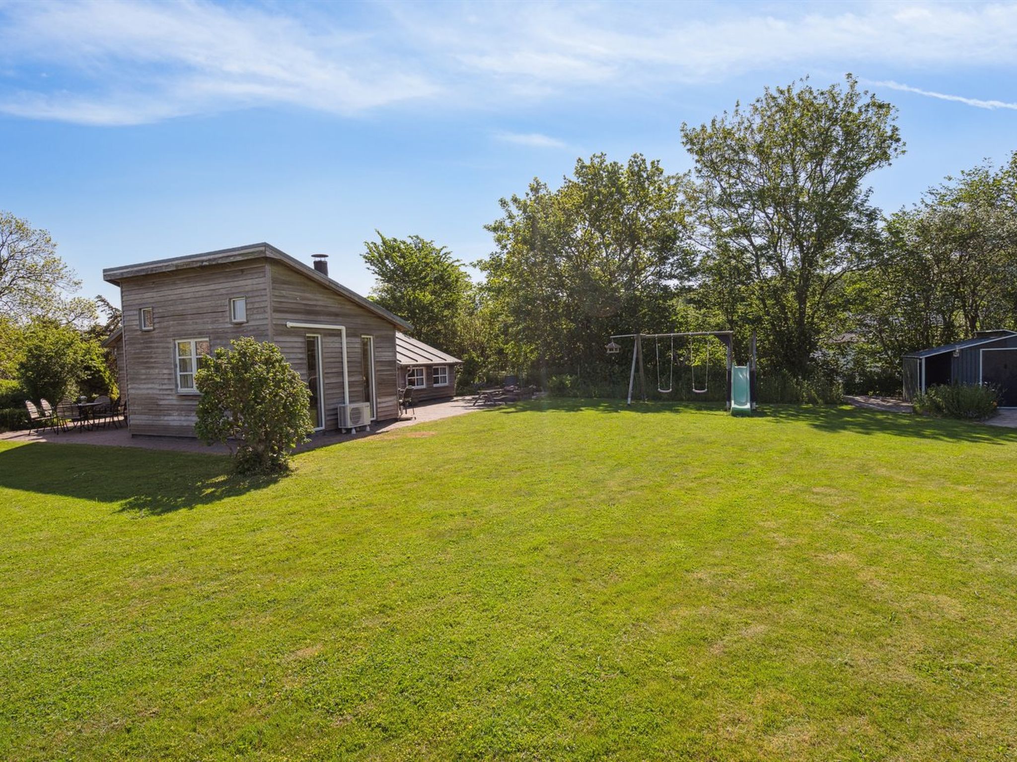 Einfamilienhaus, Baujahr 1960. 400 m vom Meer. Zur Alleinbenutzung: Grundstück 1'200 m2, gepflegter Garten. Terrasse (10 m2), Grill, Kinderspielplatz (Rutschbahn, Schaukel). Im Hause: Sauna, Waschmaschine. Parkplatz beim Haus. E-Ladestation. Lebensmittelgeschäft 2 km. Der Besitzer akzeptiert keine Jugendgruppen.