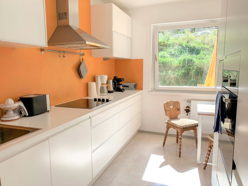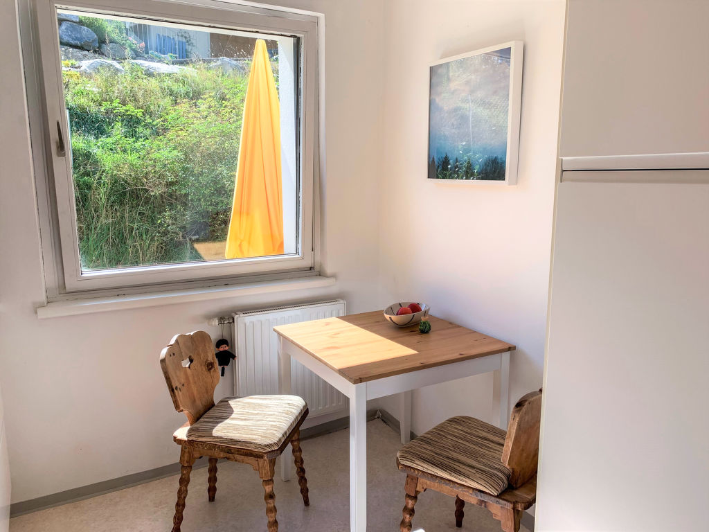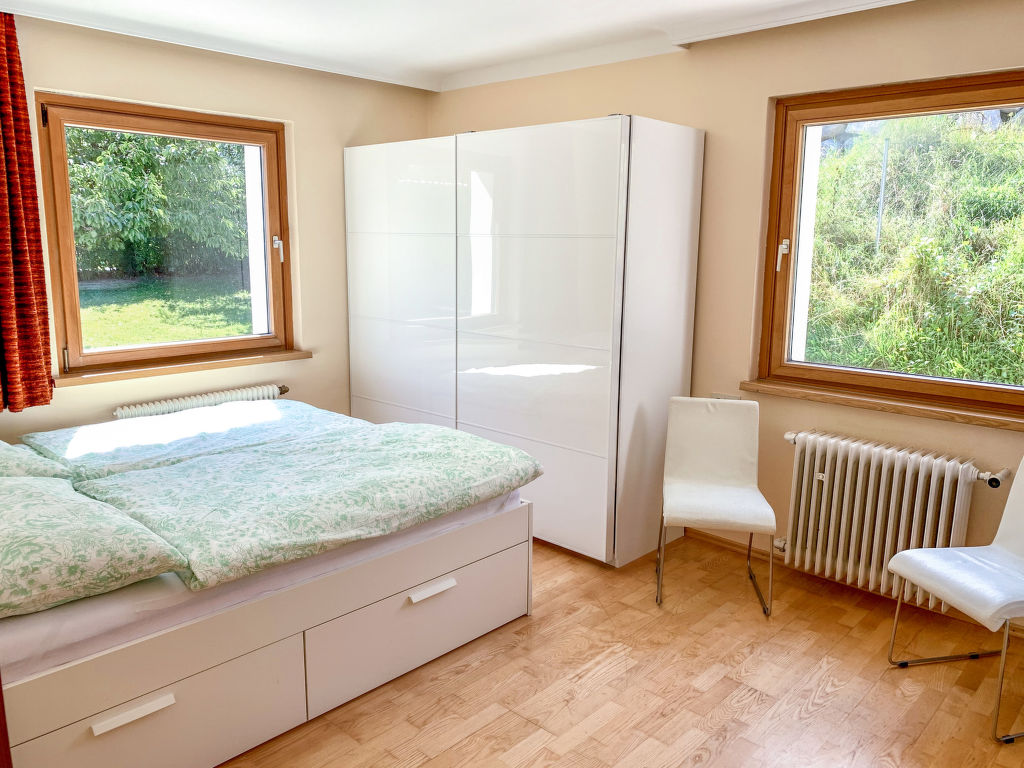 3-Zimmer-Wohnung 70 m2, im Erdgeschoss. Gemütlich eingerichtet: Eingang. 2 Doppelzimmer. Wohnzimmer mit Esstisch und TV (Flachbildschirm), Radio. Ausgang zur Terrasse, zum Gartensitzplatz. Küche (Backofen, Geschirrspüler, 4 Glaskeramikherd Platten, Toaster, Wasserkocher, Tiefkühler, elektrische Kaffeemaschine) mit Esstisch. Dusche, sep. WC. Terrasse 10 m2, Gartensitzplatz. Terrassenmöbel, Liegestühle (2). Sicht auf die Berge und das Tal. Zur Verfügung: Babybett bis 2 Jahre. Internet (Wireless LAN, gratis). Parkplatz (überdacht). Bitte beachten: geeignet für Familien. Nichtraucher-Unterkunft.