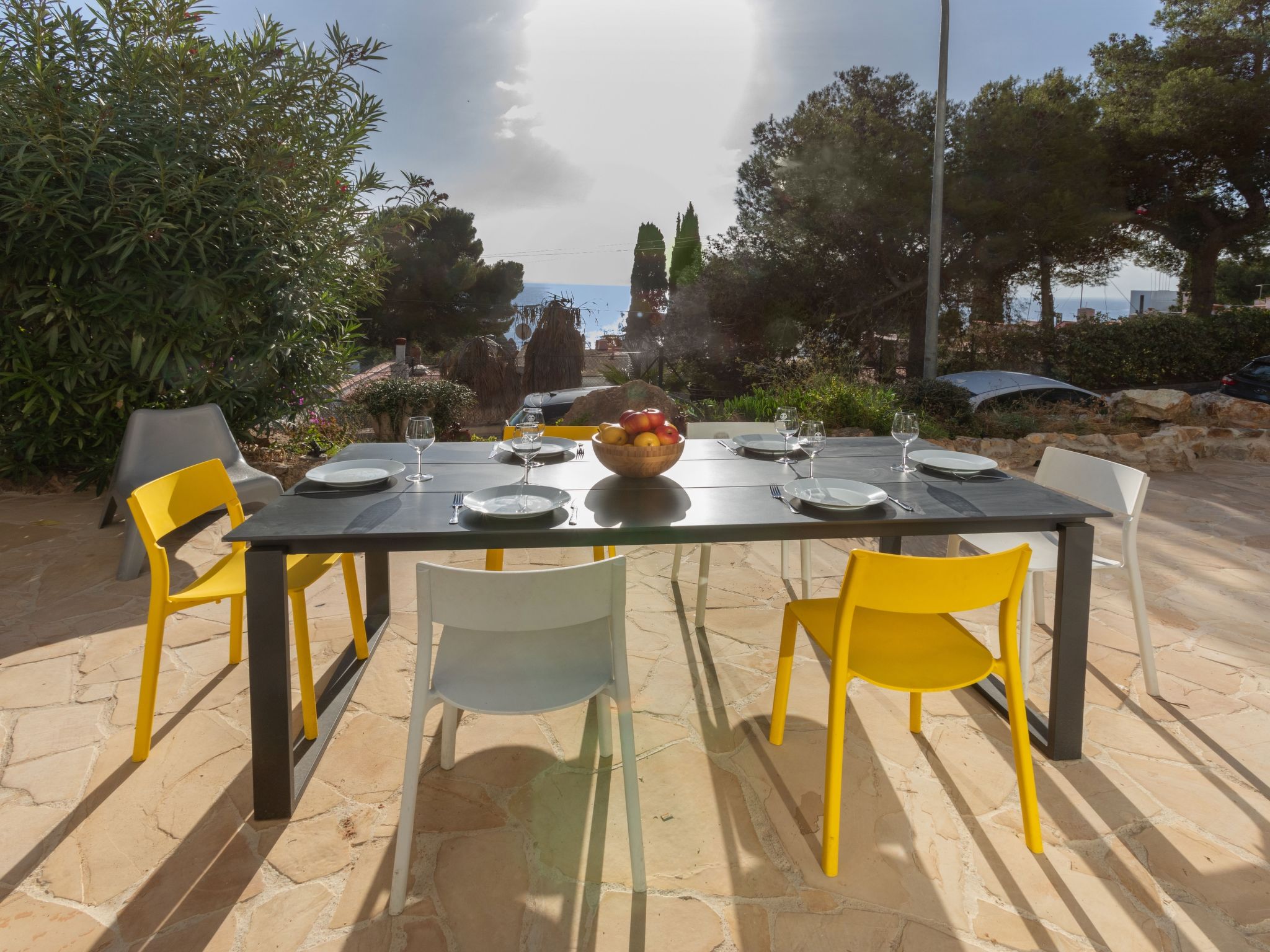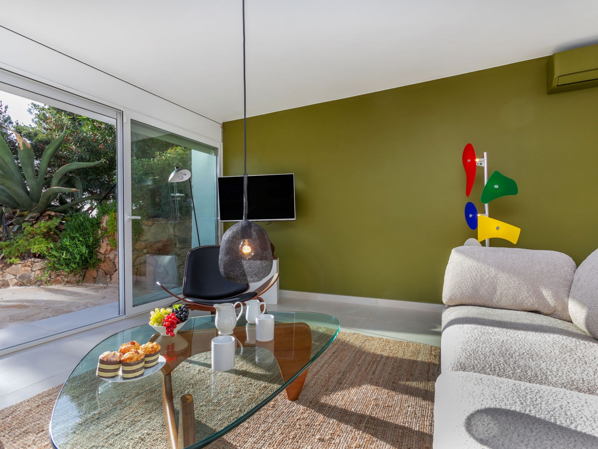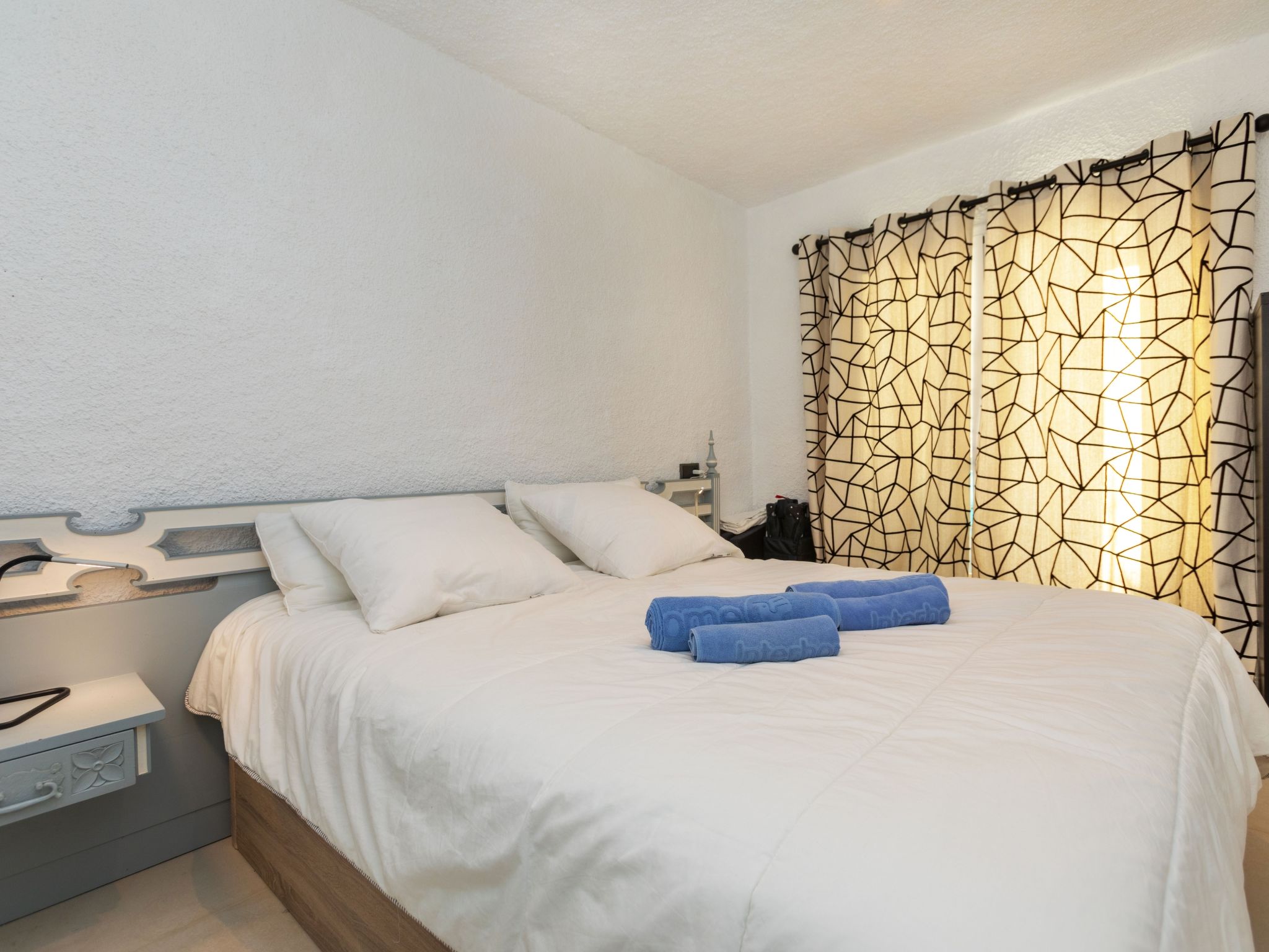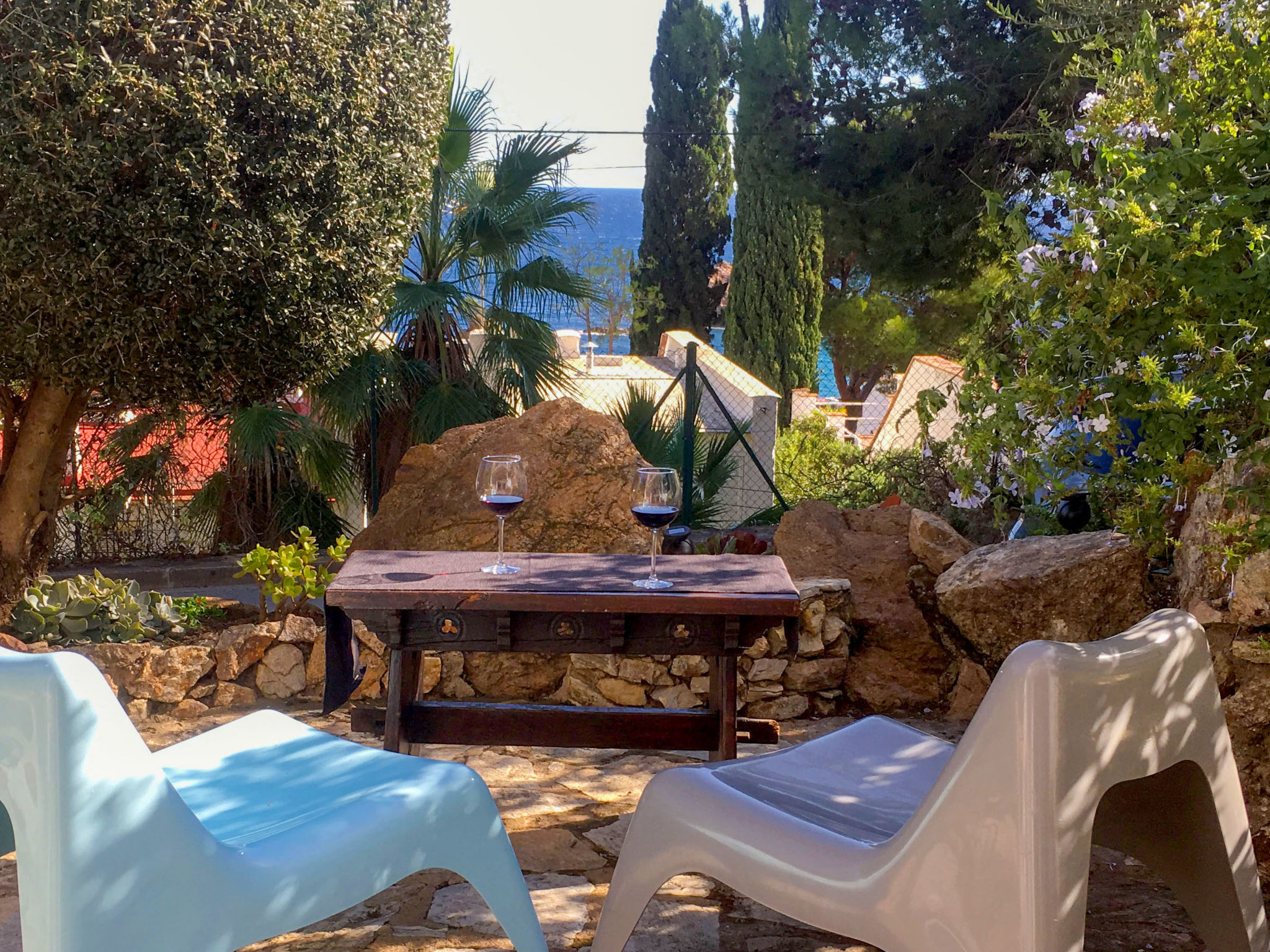 "Cosy", 3-Zimmer-Wohnung 54 m2, im Erdgeschoss. Geräumig und hell, zweckmässig und stilvoll eingerichtet: 1 Doppelzimmer mit 1 franz. Bett (150 cm, Länge 190 cm). 1 Doppelzimmer mit 2 Betten (90 cm, Länge 190 cm). Grosse, offene Küche (Backofen, 4 Glaskeramikherd Platten, Toaster, Wasserkocher, Mikrowelle, Tiefkühler, elektrische Kaffeemaschine) mit Esstisch, Sat-TV, Digital-TV und Internationale TV-Sender. Ausgang zum Gartensitzplatz. Dusche/WC. Terrasse 28 m2. Terrassenmöbel, Gartengrill, Liegestühle. Sicht auf das Meer. Zur Verfügung: Waschmaschine, Bügeleisen, Kinderhochstuhl, Babybett bis 2 Jahre, Haartrockner. Internet (Wireless LAN). Bitte beachten: geeignet für Familien. TV nur FR, DE, ES. HUTG033134
