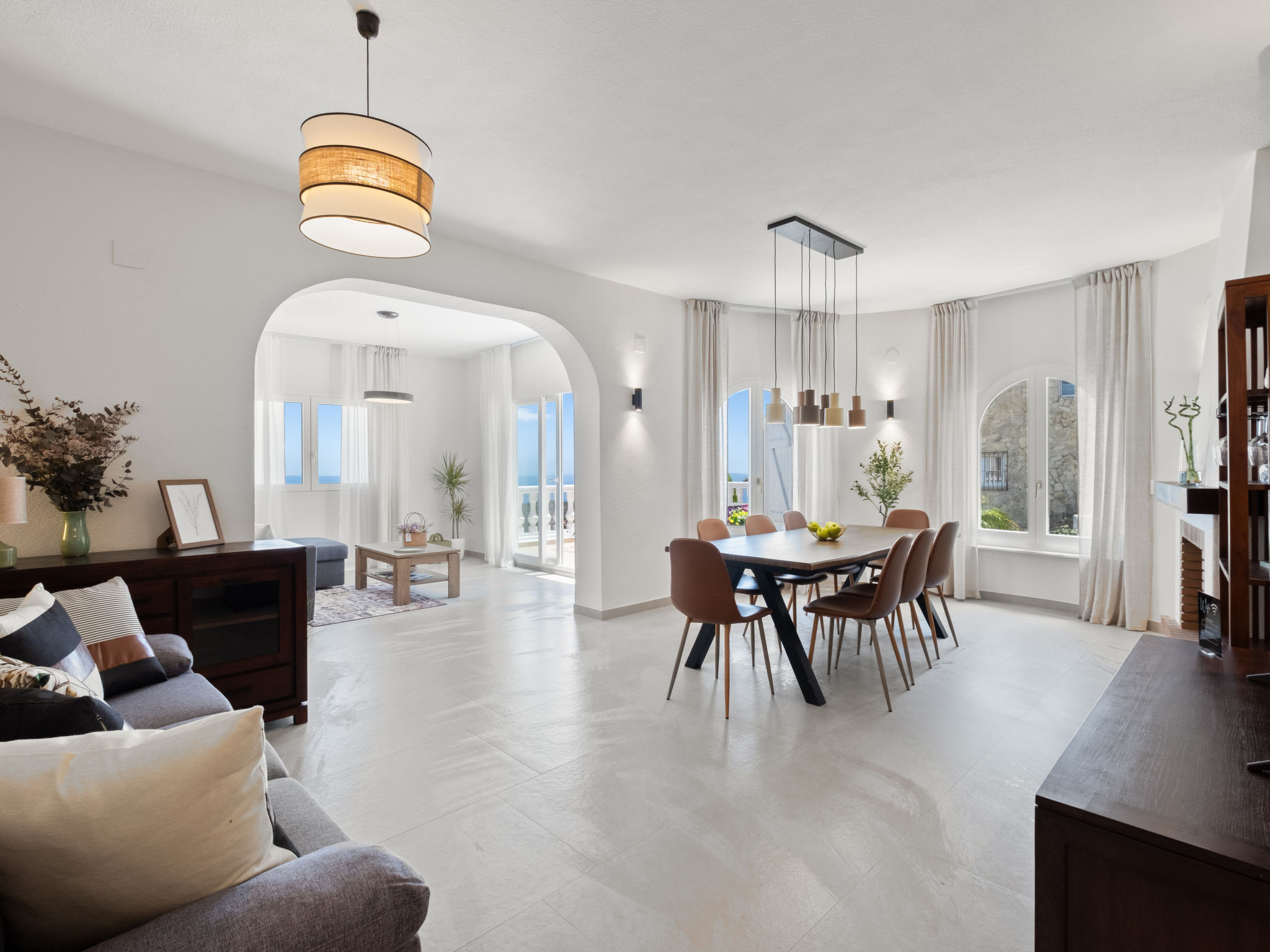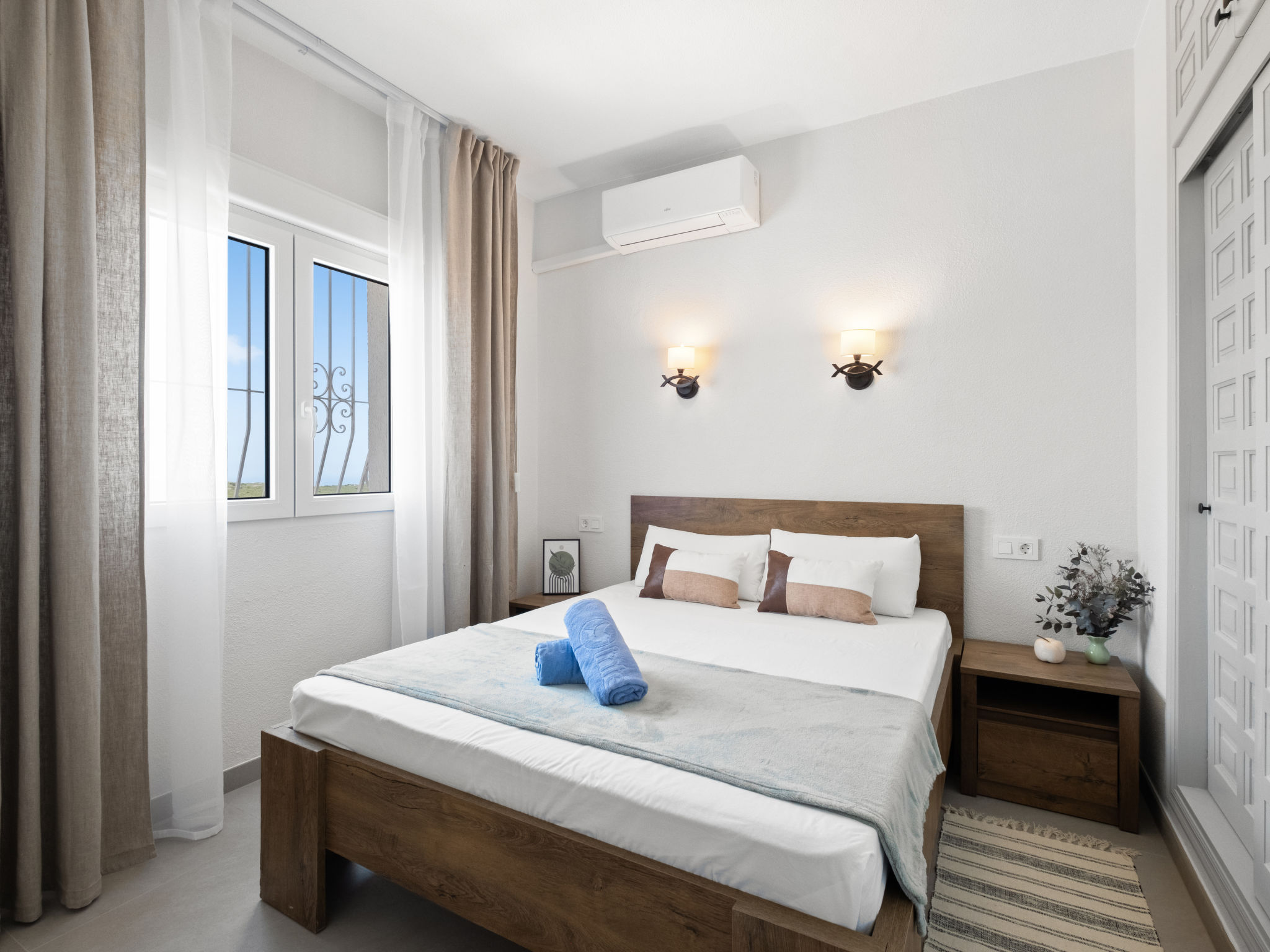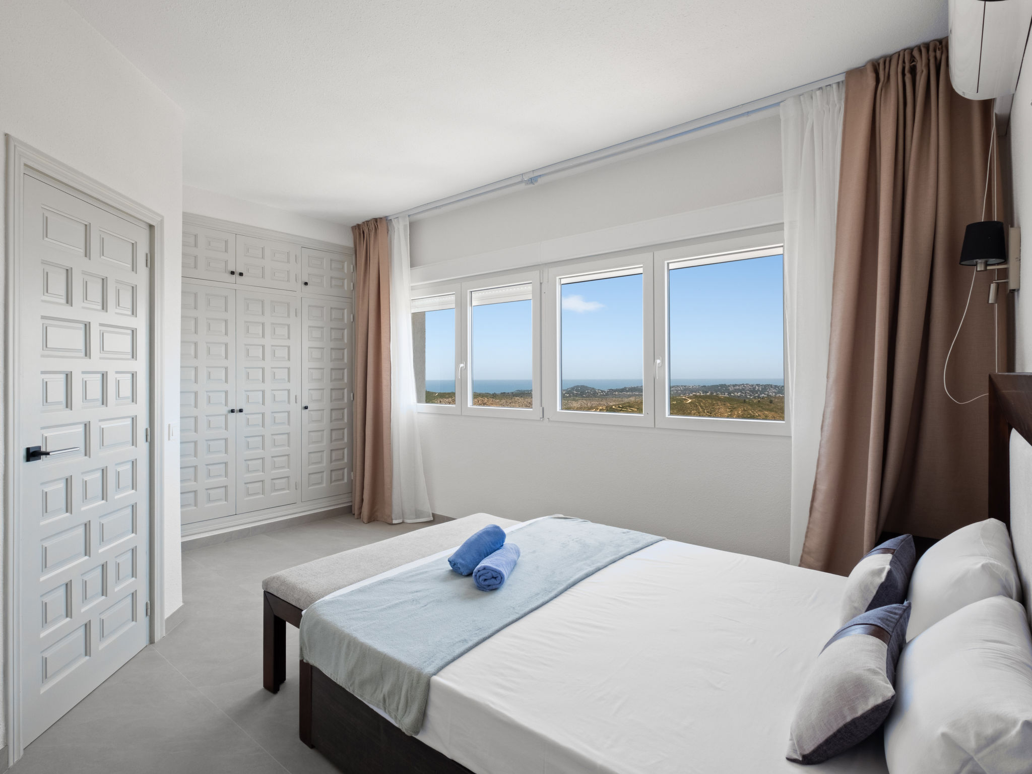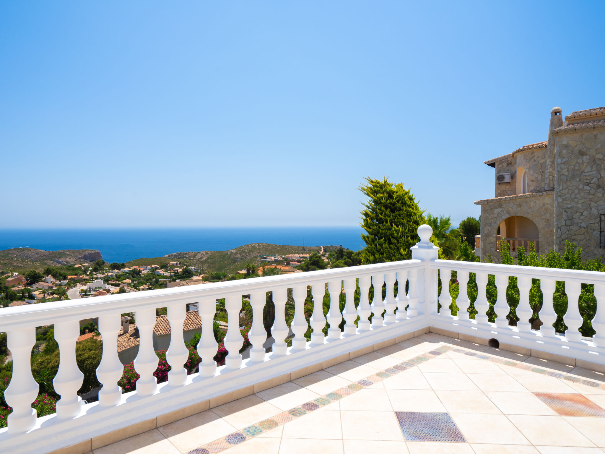 "Dalias", 6-Zimmer-Villa 220 m2 auf 2 Stockwerken. Objekt geeignet für 8 Erwachsene + 2 Kinder. Geräumig, komfortabel und schön eingerichtet: offenes Wohn-/Esszimmer mit TV, Klimaanlage und Warmluftheizung. Ausgang zur Terrasse. 1 Zimmer mit 1 franz. Bett (1 x 160 cm, Länge 200 cm), Bad/WC. Küche (Backofen, 4 Glaskeramikherd Platten, Toaster, Wasserkocher, Mikrowelle, elektrische Kaffeemaschine). Dusche/WC. Unteres Geschoss: 1 Zimmer mit 1 franz. Bett (1 x 140 cm, Länge 200 cm), Klimaanlage und Warmluftheizung. 1 Zimmer mit 1 franz. Bett (1 x 180 cm, Länge 200 cm), Klimaanlage und Warmluftheizung. 1 Zimmer mit 1 x 2 Etagenbetten (90 cm, Länge 200 cm), Klimaanlage und Warmluftheizung. 1 Zimmer mit 1 franz. Bett (1 x 150 cm, Länge 200 cm), Dusche/WC. Ausgang zur Terrasse. 1 Zimmer mit 1 franz. Bett (1 x 140 cm, Länge 200 cm). Bad/WC. Grosse Terrasse. Gartengrill, Liegestühle. Panoramasicht auf das Meer und die Landschaft. Zur Verfügung: Waschmaschine, Bügeleisen, Kinderhochstuhl, Babybett bis 2 Jahre, Haartrockner. Internet (Wireless LAN, gratis). Bitte beachten: geeignet für Familien ein Doppelzimmer liegt außerhalb der Wohnung. 1 Haustier/Hund erlaubt. Nur Smart-TV. R000000001