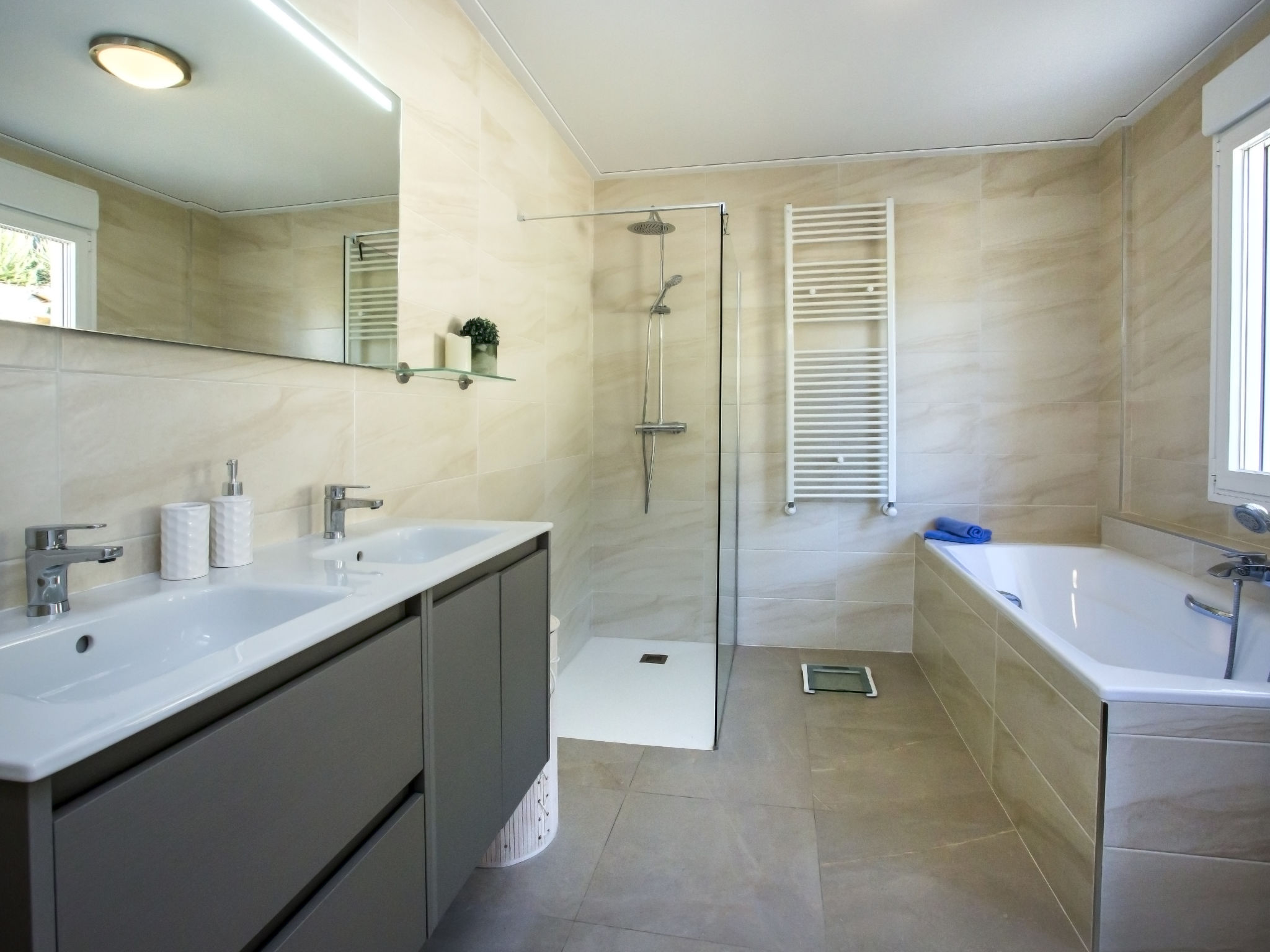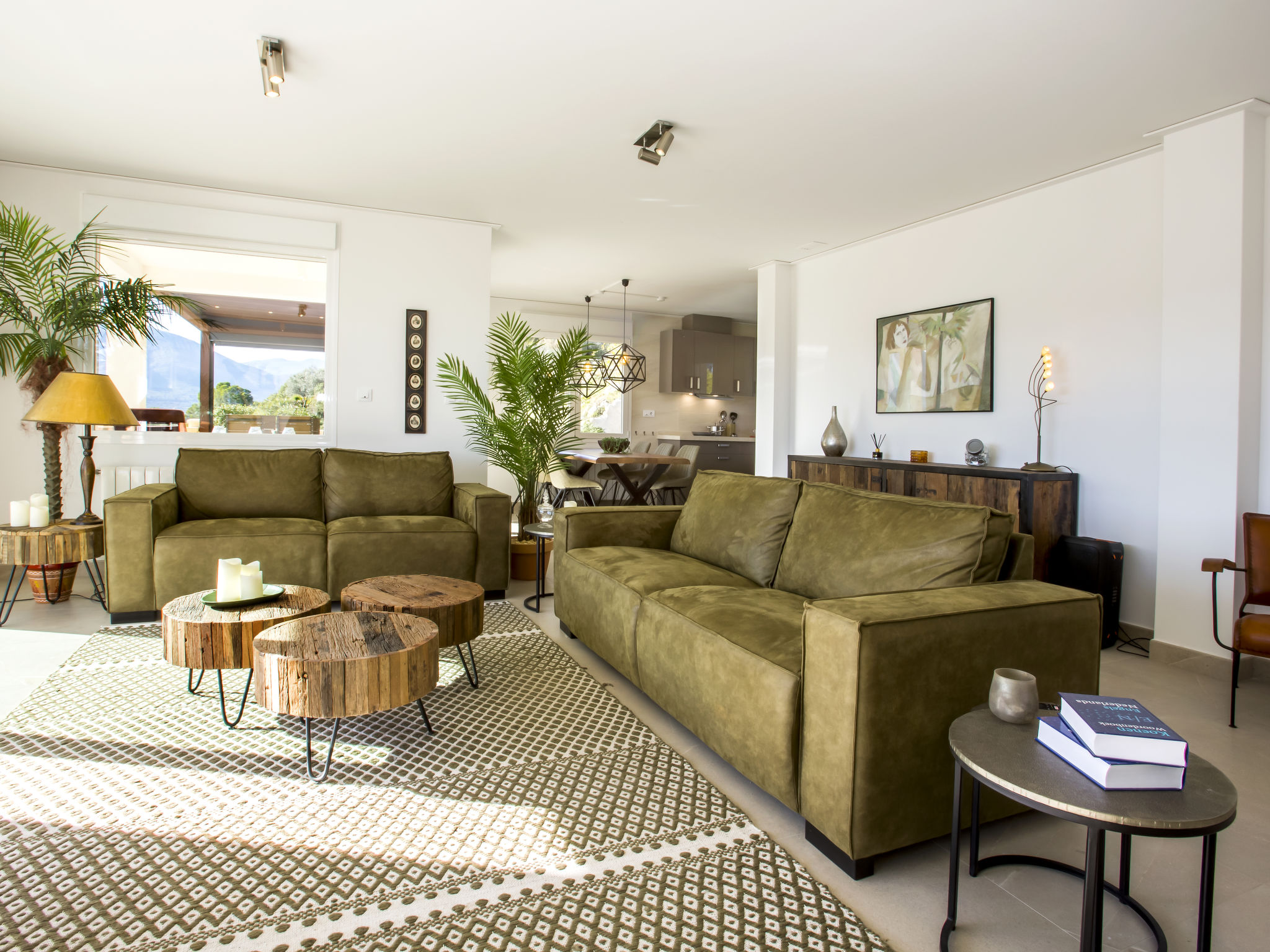 "Villa Cara Mull", 9-Zimmer-Villa 500 m2 auf 2 Stockwerken. Geräumig und hell, sehr schön und luxuriös eingerichtet: Wohn-/Esszimmer mit Sat-TV und Digital-TV. Ausgang zur Terrasse, Pergola. 1 Zimmer 50 m2 mit 1 franz. Bett (180 cm, Länge 200 cm), Bad/Bidet/WC. Ausgang zur Terrasse. 2 Zimmer, jedes Zimmer mit 1 franz. Bett (180 cm, Länge 200 cm). Ausgang zur Terrasse. Grosse, offene Küche (Backofen, Geschirrspüler, 3 Induktionskochplatten, Toaster, Wasserkocher, Mikrowelle, Tiefkühler, elektrische Kaffeemaschine). Dusche, sep. WC. Unteres Geschoss: Wohn-/Esszimmer mit Sat-TV und Digital-TV. Ausgang zur Terrasse, zum Schwimmbad. 1 Zimmer mit 1 franz. Bett (180 cm, Länge 200 cm), Dusche/WC. Ausgang zur Terrasse, zum Schwimmbad. 3 Zimmer, jedes Zimmer mit 1 franz. Bett (180 cm, Länge 200 cm). Ausgang zur Terrasse, zum Schwimmbad. Grosse, offene Küche (Geschirrspüler, 4 Induktionskochplatten, Toaster, Mikrowelle, Tiefkühler, elektrische Kaffeemaschine). Sep. WC, 2 Bäder/Duschen/WC. 2 grosse Terrassen. Terrassenmöbel, Gartengrill, Liegestühle, Sitzplatz. Herrliche Sicht auf die Berge, das Tal und die Landschaft. Zur Verfügung: Waschmaschine, Wäschetrockner, Safe, Bügeleisen, Kinderhochstuhl, Babybett, Haartrockner. Internet (Wireless LAN, gratis). Smart-TV. VT-484024-A