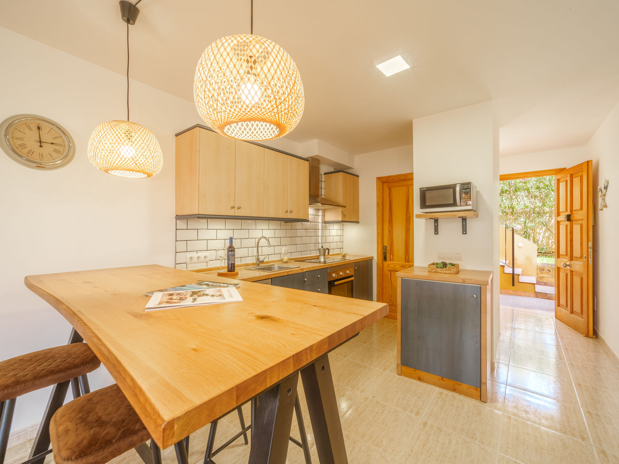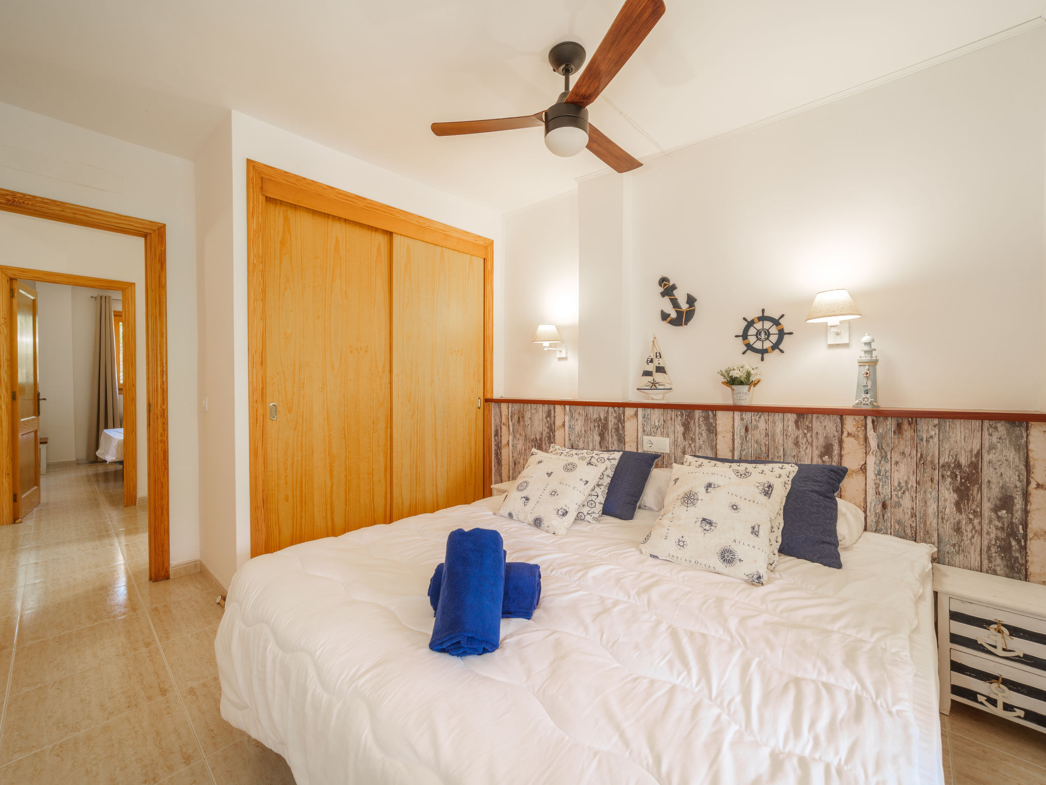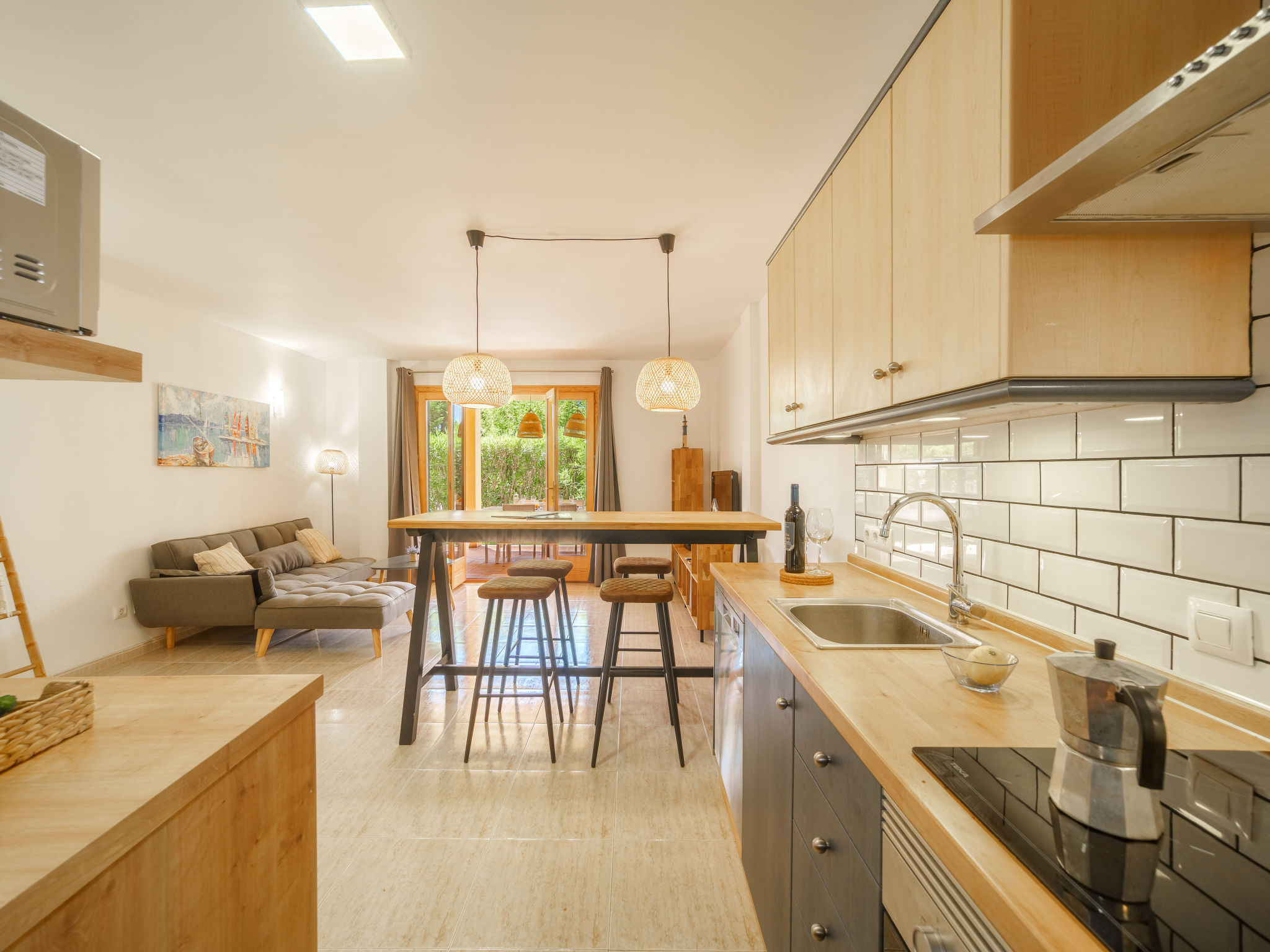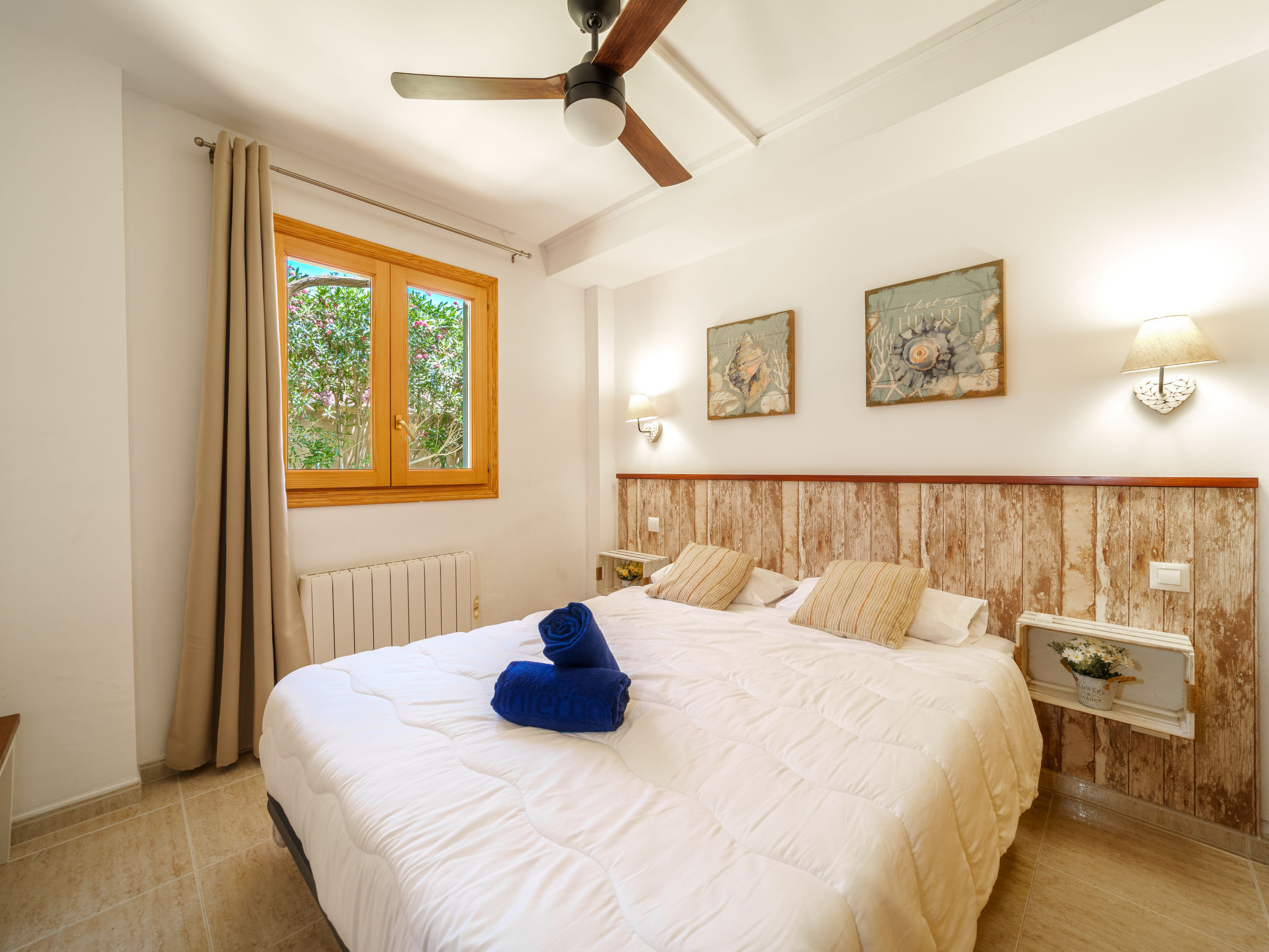 "Can Suarez", 3-Zimmer-Wohnung 90 m2, im ebenerdigen Untergeschoss. Objekt geeignet für 4 Erwachsene. Zweckmässig und gemütlich eingerichtet: offenes Wohn-/Esszimmer mit Esstisch, Digital-TV, Internationale TV-Sender, Flachbildschirm, Klimaanlage und Warmluftheizung. Ausgang zum Gartensitzplatz. 1 grosses Doppelzimmer mit Panoramafenster mit 1 franz. Bett (150 cm, Länge 200 cm), Dusche/Bidet/WC und Ventilator. 1 Doppelzimmer mit 2 Betten (90 cm, Länge 190 cm), Ventilator. Ausgang zum Gartensitzplatz. Offene Küche (Backofen, Geschirrspüler, 3 Glaskeramikherd Platten, Toaster, Wasserkocher, Mikrowelle, Tiefkühler, elektrische Kaffeemaschine) mit Bar. Bad/WC. Gartensitzplatz, Rasen, Laube. Terrassenmöbel, Gartengrill, Liegestühle, Loggia. Zur Verfügung: Waschmaschine, Safe, Bügeleisen, Kinderhochstuhl, Babybett bis 2 Jahre, Haartrockner. Internet (Wireless LAN, gratis). Parkplatz (eingezäunt, 1 Auto). 4942/2022