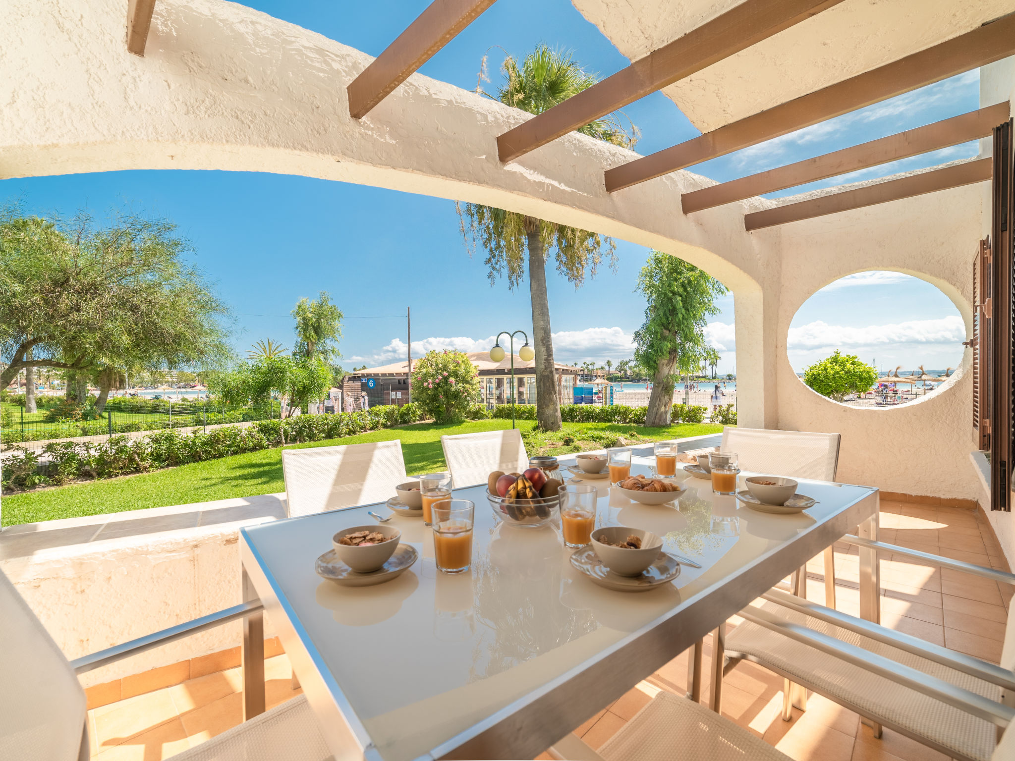 Gemütliches, komfortables Appartementhaus "Carabela Beach". Im Ortszentrum von Port d'Alcúdia, ruhige, sonnige Lage, 2 km vom Waldrand, 10 m vom Strand, direkter Zugang zum Strand. Zur Mitbenutzung: grosser Garten mit Rasen, Schwimmbad nierenförmig (20 x 10 m, 100 - 180 cm tief, saisonale Verfügbarkeit: 31.Dez.-01.Jan.). Aussendusche. Zur Alleinbenutzung: Laube, Pergola, Terrasse (9 m2). Im Hause: Internetzugang, Wireless LAN, Klimaanlage, Waschmaschine. Parkplatz beim Haus auf dem Grundstück. Einkaufsgeschäft 15 m, Lebensmittelgeschäft 50 m, Supermarkt 80 m, Einkaufszentrum 25 km, Restaurant 5 m, Bar 50 m, Bäckerei 500 m, Fahrradverleih, Biergarten 50 m, Zentrum zu Fuss in 5 Minuten erreichbar, Bushaltestelle 60 m, Sandstrand "Playa de Port Alcúdia" 15 m, Felsstrand "Alcanada" 3.5 km. Sporthafen, Jacht-Hafen 200 m, Golfplatz (18 Loch) 4.5 km, Tennis 1 km, Minigolf 600 m, Wanderwege ab Haus 1.8 km, Radweg 1.5 km, Kinderspielplatz 150 m. Nahe gelegene Sehenswürdigkeiten: Ciudad Romana de Pollentia, Ermita de la Victoria, Alcúdia (Old Town). Hidropark Aquatic Park. Bekannte Seen in der Umgebung sind gut erreichbar: S'Albufera d'Alcudia. Wandergebiete: Sa Talaia d'Alcúdia. Puig de Sant Martí. Bitte beachten: geeignet für Familien, geeignet für Senioren. Objekt geeignet für 4 Erwachsene. Der Besitzer akzeptiert keine Jugendgruppen. Flugplatz 50 km vom Haus.