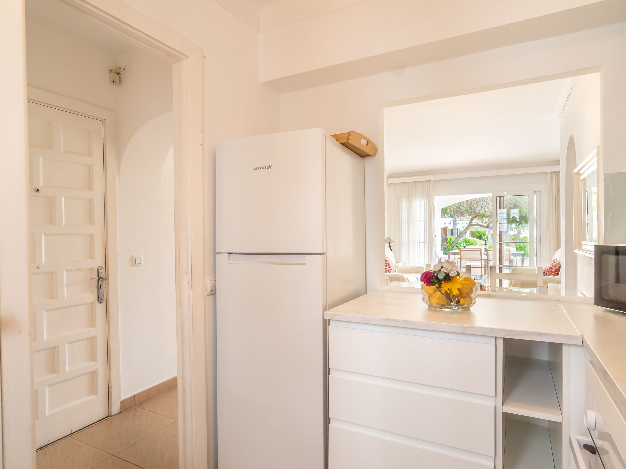 "Carabela Beach", 3-Zimmer-Wohnung 75 m2, im ebenerdigen Untergeschoss. Objekt geeignet für 4 Erwachsene. Hell, zweckmässig und gemütlich eingerichtet: Wohn-/Esszimmer mit Esstisch, Digital-TV, Internationale TV-Sender, Flachbildschirm, Klimaanlage und Warmluftheizung. Ausgang zur Terrasse. 1 Doppelzimmer mit Panoramafenster mit 1 franz. Bett (150 cm, Länge 190 cm). 1 Doppelzimmer mit 2 Betten (90 cm, Länge 190 cm). Küche (Backofen, 3 Glaskeramikherd Platten, Toaster, Wasserkocher, Mikrowelle, Tiefkühler, elektrische Kaffeemaschine) mit Bar. Dusche/WC, sep. WC. Terrasse, Laube. Terrassenmöbel. Sehr schöne Sicht auf das Meer. Zur Verfügung: Waschmaschine, Bügeleisen, Kinderhochstuhl, Babybett, Haartrockner. Internet (Wireless LAN, gratis). Der ausgeschriebene Pool ist zur alleinigen Nutzung. ETVPL/13278