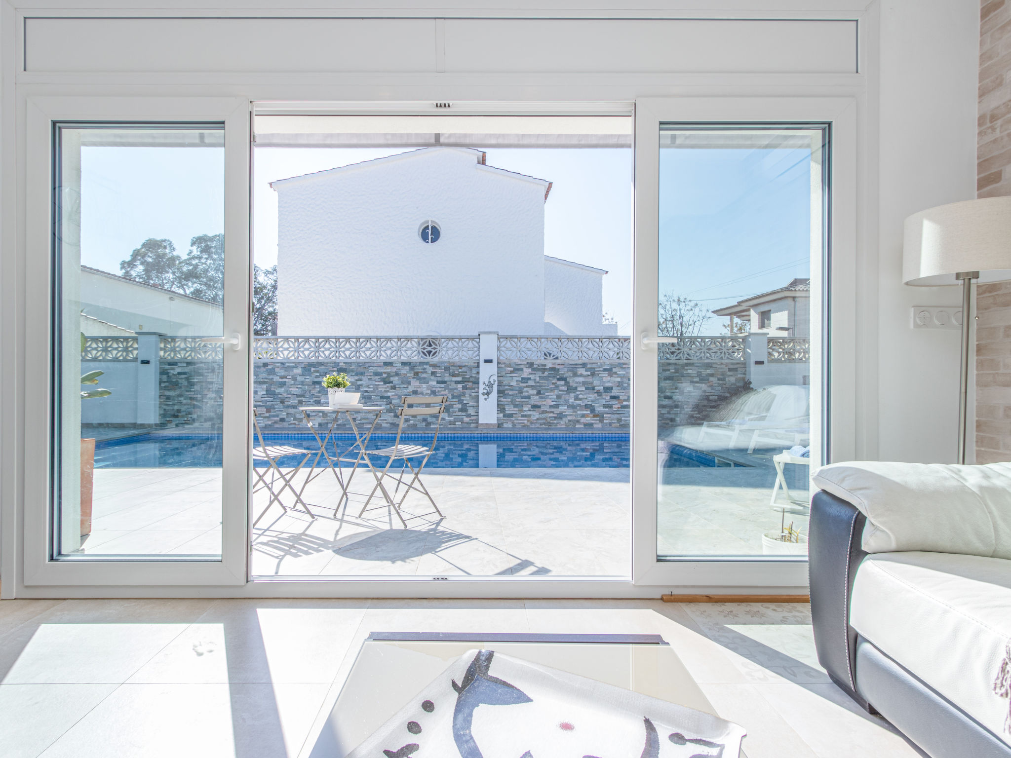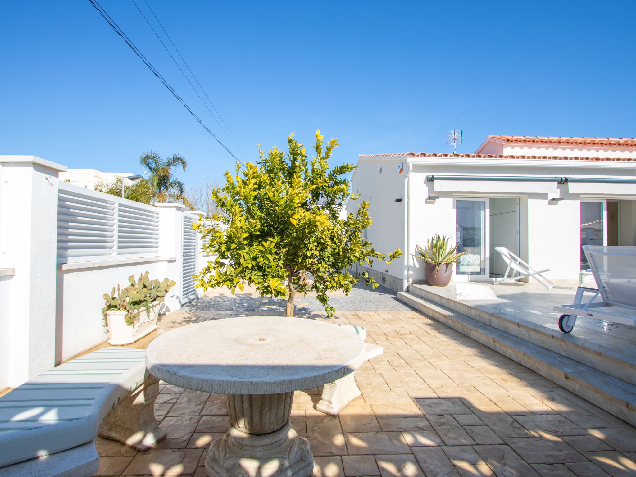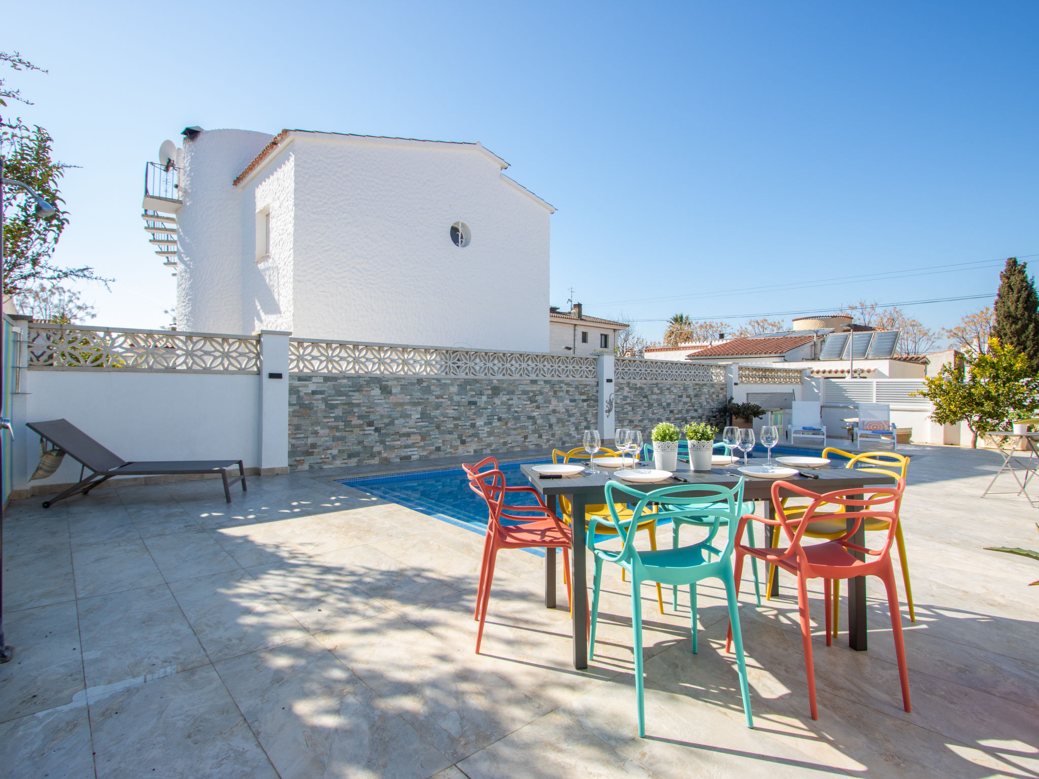 Modernes, gemütliches, komfortables Haus "CASA FILISA", renoviert im Jahre 2021. Im Ortsteil Montgri, 800 m vom Zentrum von Empuriabrava, ruhige, sonnige Lage im Villenviertel, verkehrsberuhigte Zone, 1 km vom Meer, 1 km vom Strand, 220 m vom Fluss, in einer Sackgasse. Zur Alleinbenutzung: Grundstück (eingezäunt), schöner, gepflegter Garten mit Pflanzen, Schwimmbad eckig (4 x 10 m, 100 - 200 cm tief, saisonale Verfügbarkeit: 01.Apr.-30.Okt.) mit Innentreppe. Aussendusche, Pergola, Terrasse, Gartenmöbel. Im Hause: Waschmaschine, Wäschetrockner. Parkplatz auf dem Grundstück. Einkaufsgeschäft, Lebensmittelgeschäft 300 m, Supermarkt 1 km, Einkaufszentrum 800 m, Restaurant, Bar, Bäckerei, Café, Bushaltestelle 300 m, Sandstrand "Empuriabrava" 1.2 km. Sporthafen 3 km, Golfplatz (18 Loch) 5 km, Surfschule 1.5 km, Segelschule 1.5 km, Tennis 2 km, Minigolf 800 m, Wanderwege ab Haus, Radweg 50 m. Nahe gelegene Sehenswürdigkeiten: Túnel del viento y skydive Empuriabrava 2 km, Parque Acuático Roses 6 km, Casino y festival de Peralada 12 km, Museo Dalí Figueres 15 km, Ruïnes de Empuries 21 km, Monasterio de Sant Pere de Rodes 23 km. Wandergebiete: Cadaqués / Cap de Creus 20 km. Der Besitzer akzeptiert keine Gruppen.