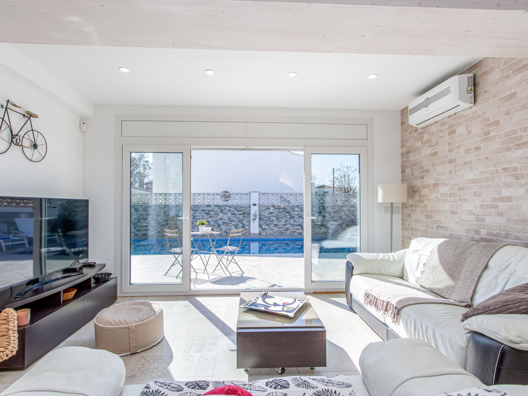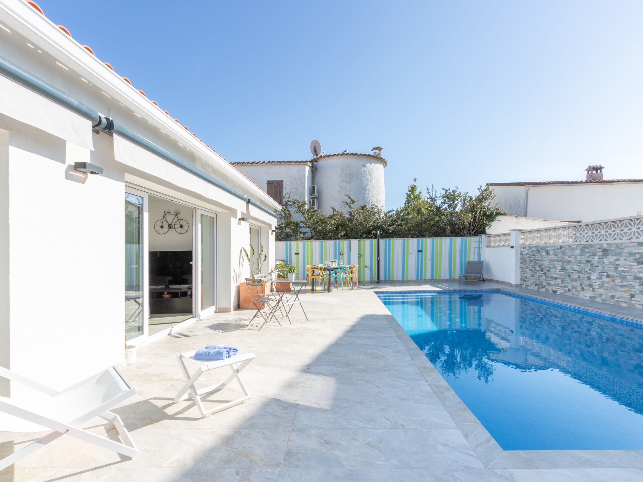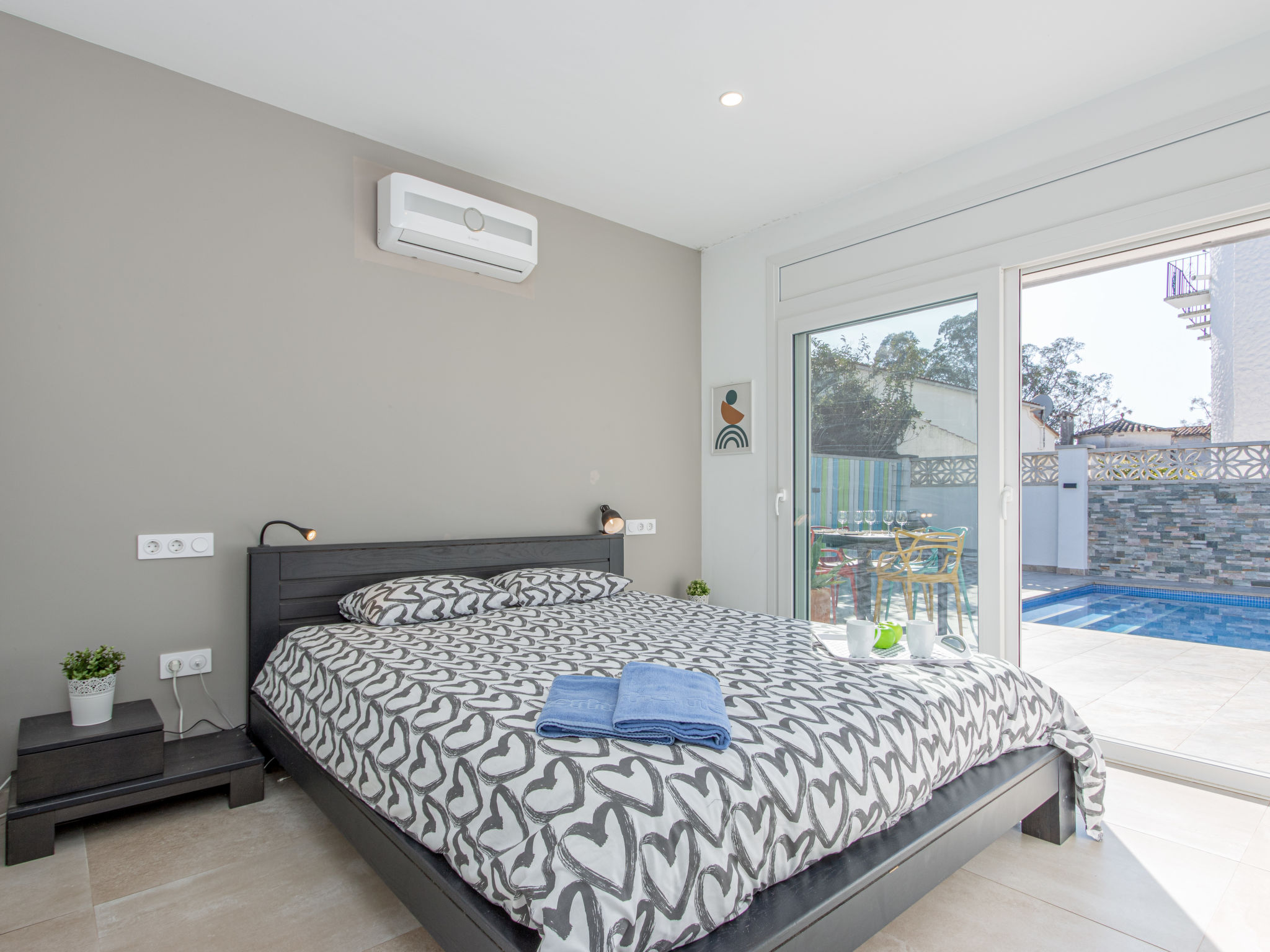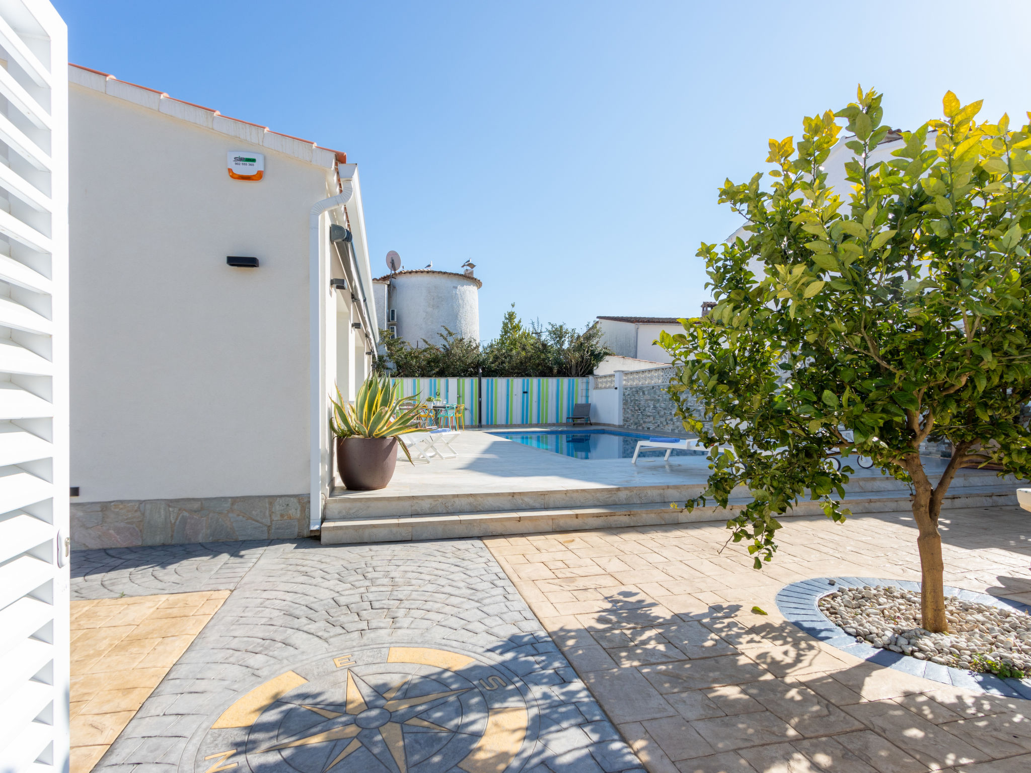 Modernes, gemütliches, komfortables Haus "CASA FILISA", renoviert im Jahre 2021. Im Ortsteil Montgri, 800 m vom Zentrum von Empuriabrava, ruhige, sonnige Lage im Villenviertel, verkehrsberuhigte Zone, 1 km vom Meer, 1 km vom Strand, 220 m vom Fluss, in einer Sackgasse. Zur Alleinbenutzung: Grundstück (eingezäunt), schöner, gepflegter Garten mit Pflanzen, Schwimmbad eckig (4 x 10 m, 100 - 200 cm tief, saisonale Verfügbarkeit: 01.Apr.-30.Okt.) mit Innentreppe. Aussendusche, Pergola, Terrasse, Gartenmöbel. Im Hause: Waschmaschine, Wäschetrockner. Parkplatz auf dem Grundstück. Einkaufsgeschäft, Lebensmittelgeschäft 300 m, Supermarkt 1 km, Einkaufszentrum 800 m, Restaurant, Bar, Bäckerei, Café, Bushaltestelle 300 m, Sandstrand "Empuriabrava" 1.2 km. Sporthafen 3 km, Golfplatz (18 Loch) 5 km, Surfschule 1.5 km, Segelschule 1.5 km, Tennis 2 km, Minigolf 800 m, Wanderwege ab Haus, Radweg 50 m. Nahe gelegene Sehenswürdigkeiten: Túnel del viento y skydive Empuriabrava 2 km, Parque Acuático Roses 6 km, Casino y festival de Peralada 12 km, Museo Dalí Figueres 15 km, Ruïnes de Empuries 21 km, Monasterio de Sant Pere de Rodes 23 km. Wandergebiete: Cadaqués / Cap de Creus 20 km. Der Besitzer akzeptiert keine Gruppen.