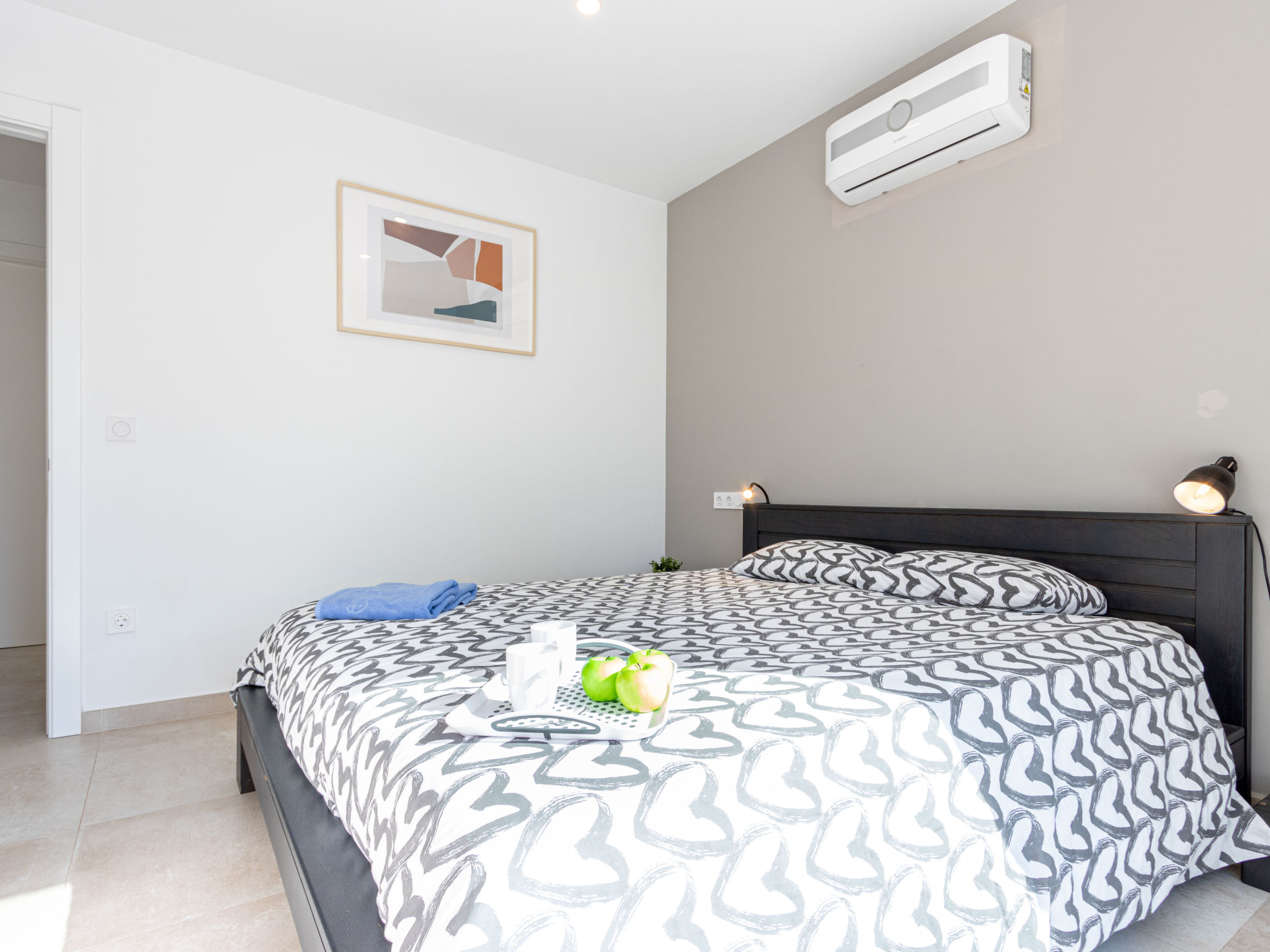 4-Zimmer-Haus 127 m2. Geräumig und hell, vollständig renoviert, sehr modern und stilvoll eingerichtet: Wohn-/Esszimmer mit Esstisch, Sat-TV, Digital-TV und Internationale TV-Sender (Flachbildschirm), Klimaanlage und Warmluftheizung. Ausgang zur Terrasse, zum Schwimmbad. 1 Zimmer mit 1 franz. Bett (160 cm, Länge 200 cm), Klimaanlage und Warmluftheizung. Ausgang zum Schwimmbad. 1 Zimmer mit 1 franz. Bett (140 cm, Länge 190 cm), Klimaanlage und Warmluftheizung. 1 Zimmer mit 2 Betten (90 cm, Länge 190 cm), Klimaanlage und Warmluftheizung. Küche (Backofen, Geschirrspüler, 3 Induktionskochplatten, Toaster, Wasserkocher, Mikrowelle, Tiefkühler, elektrische Kaffeemaschine, Kapseln für die Kaffeemaschine (NESPRESSO) extra). Bad/WC, Dusche/WC. Grosser Gartensitzplatz. Terrassenmöbel, Liegestühle. Zur Verfügung: Waschmaschine, Wäschetrockner, Bügeleisen, Kinderhochstuhl, Babybett, Haartrockner. Internet (Wireless LAN, gratis). Parkplatz (eingezäunt). Bitte beachten: geeignet für Familien. Nichtraucher-Haus. Maximal 1 kleines Haustier/Hund erlaubt. TV nur FR, DE, ES. HUTG060557