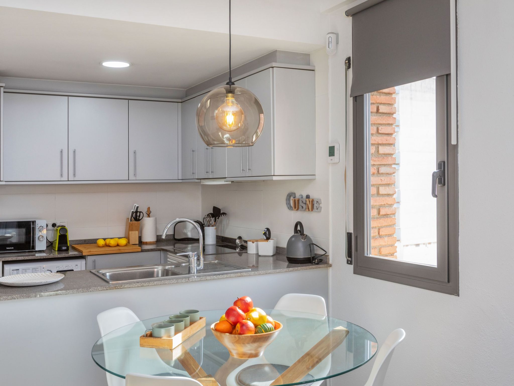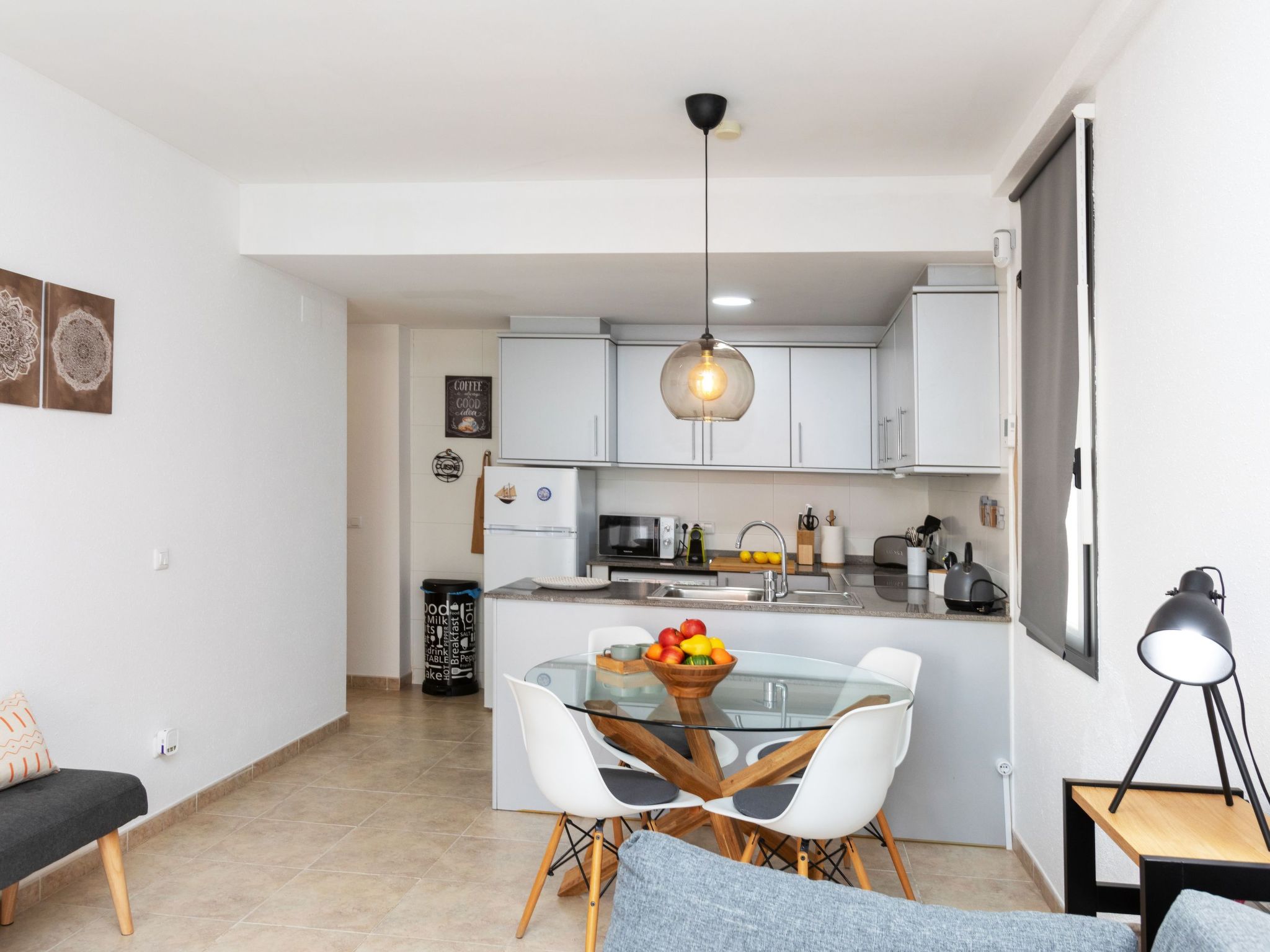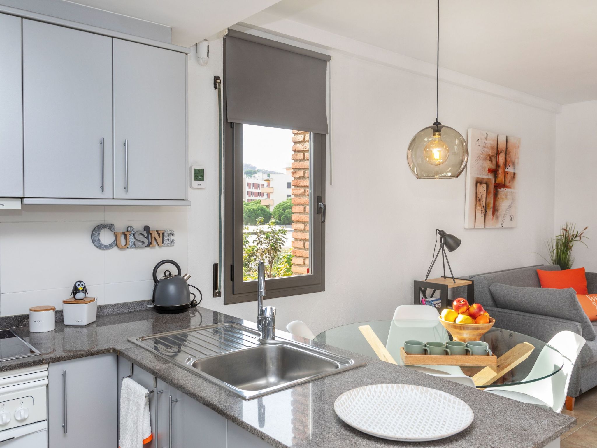 "Es Freus", 2-Zimmer-Wohnung 50 m2. Hell, zweckmässig und gemütlich eingerichtet: Wohn-/Esszimmer mit 1 Diwanbett (135 cm, Länge 190 cm), Esstisch und Digital-TV. Ausgang zur Terrasse. 1 Doppelzimmer mit 1 franz. Bett (150 cm, Länge 190 cm). Offene Küche (Backofen, 4 Glaskeramikherd Platten, Toaster, Wasserkocher, Mikrowelle, Tiefkühler, elektrische Kaffeemaschine). Dusche/WC. Balkon. Balkonmöbel. Sicht auf das Schwimmbad, den Garten und die Ortschaft. Zur Verfügung: Bügeleisen, Kinderhochstuhl, Babybett bis 2 Jahre, Haartrockner. Internet (Wireless LAN). Bitte beachten: geeignet für Familien. TV nur ES. HUTG-042197