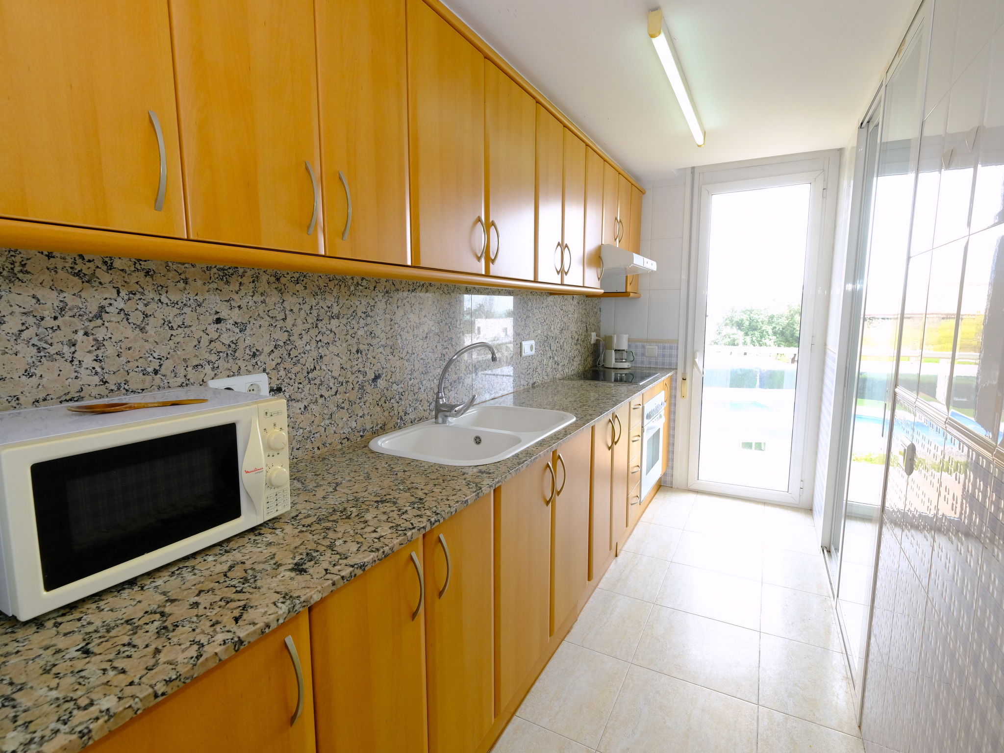 "Pasarela", 4-Zimmer-Wohnung 110 m2. Komfortabel und gemütlich eingerichtet: Wohn-/Esszimmer mit Esstisch und Digital-TV. Ausgang zum Balkon. 1 Zimmer mit 1 franz. Bett (135 cm). Ausgang zum Balkon. 1 Zimmer mit 2 Betten (90 cm). 1 Zimmer mit 2 Betten (90 cm). Küche (Backofen, 4 Glaskeramikherd Platten, Toaster, Mikrowelle, elektrische Kaffeemaschine). Bad/Bidet/WC, Dusche/WC. Sicht auf das Schwimmbad. Zur Verfügung: Waschmaschine, Bügeleisen. Internet (Wireless LAN, gratis). HUTTE002828