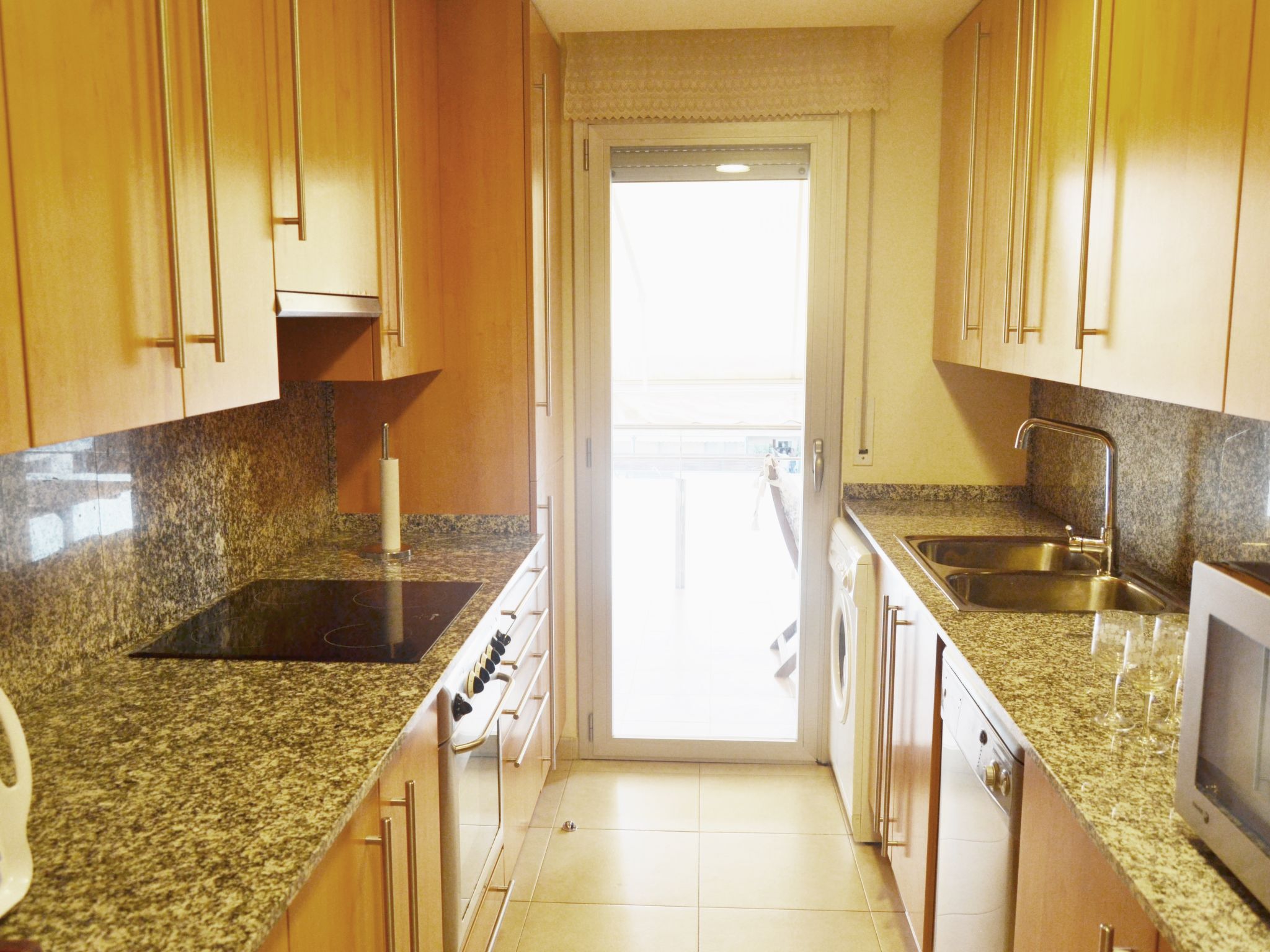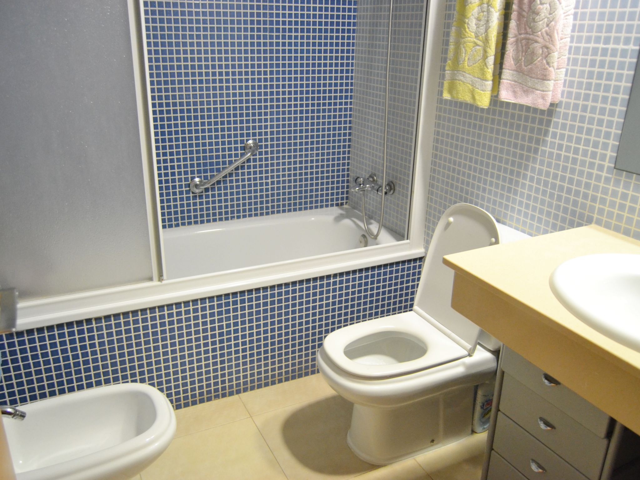 "Deltamar", 3-Zimmer-Wohnung 70 m2. Komfortabel und gemütlich eingerichtet: Wohn-/Esszimmer mit Esstisch und Digital-TV. Ausgang zum Balkon. 1 Zimmer mit 1 franz. Bett (135 cm). 1 Zimmer mit 2 Betten (90 cm), 2 Ausziehbetten. Ausgang zum Balkon. Küche (Backofen, Geschirrspüler, 4 Glaskeramikherd Platten, Toaster, Wasserkocher, Mikrowelle, elektrische Kaffeemaschine). Bad/Bidet/WC. Klimaanlage. Balkon. Balkonmöbel. Zur Verfügung: Waschmaschine, Bügeleisen. HUTTE003193