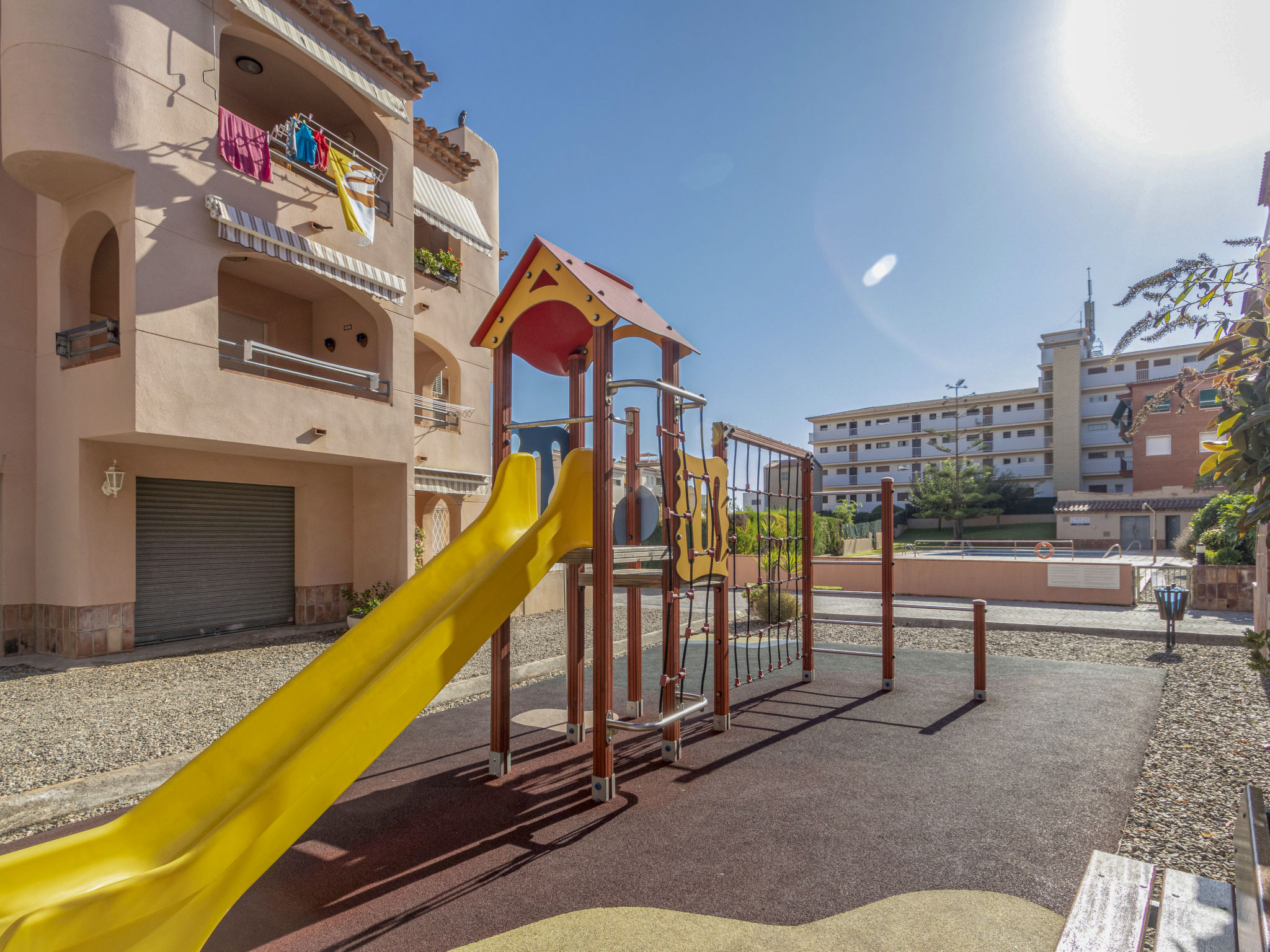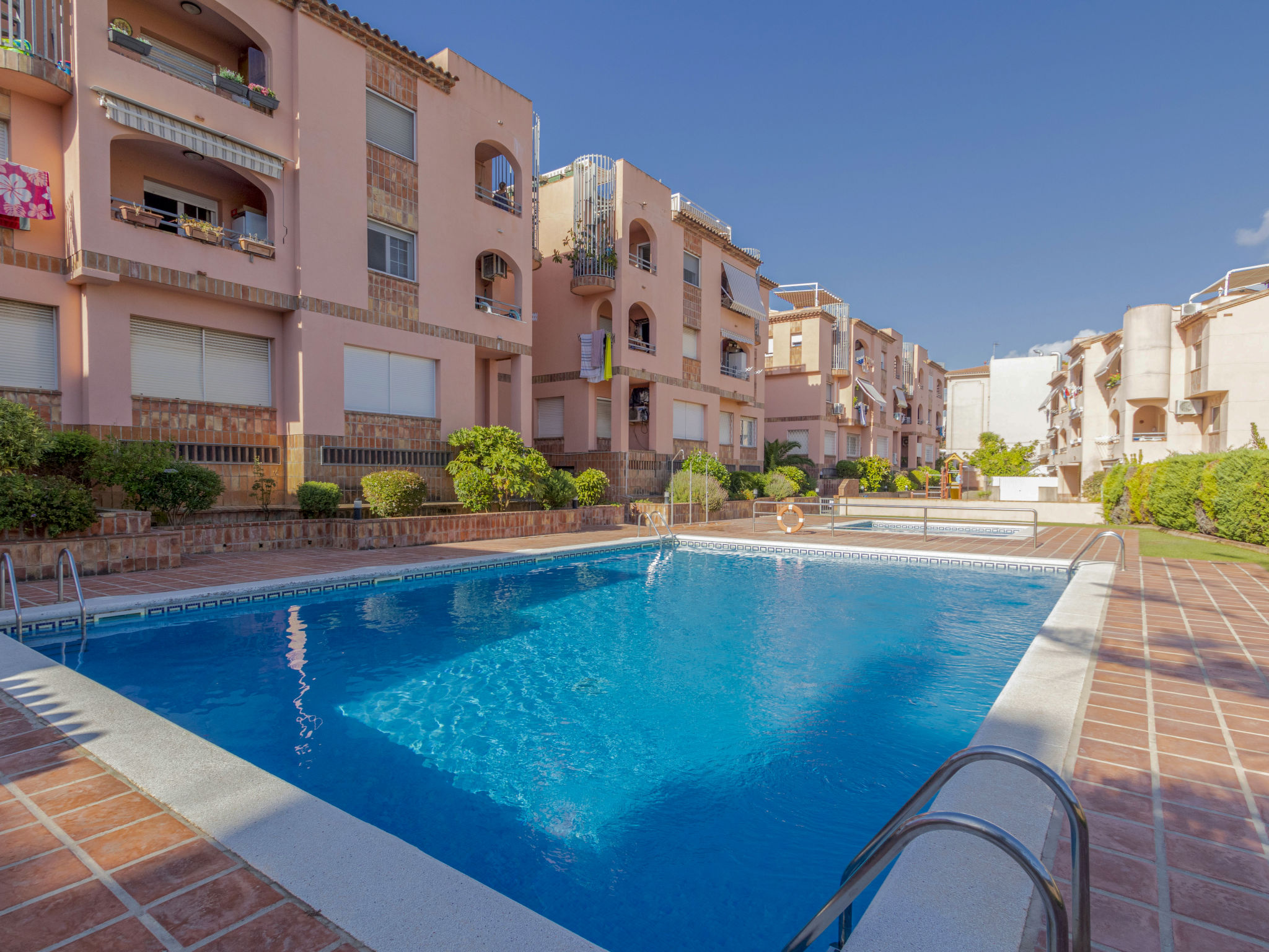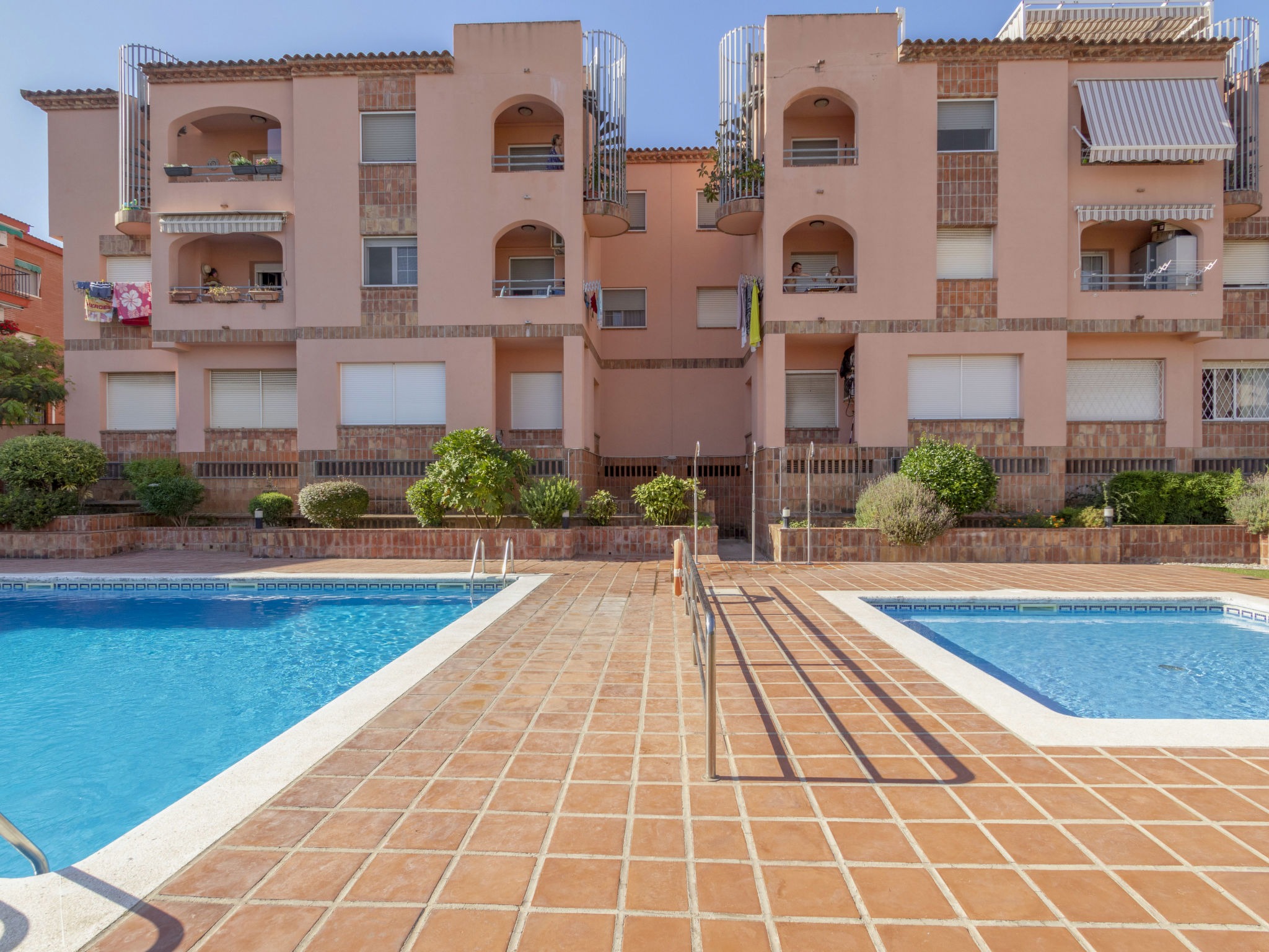 Torredembarra 18 km von Tarragona: Gemütliches Appartementhaus "Torrepuerto". Ruhige Lage, 450 m vom Meer, 450 m vom Strand. Zur Mitbenutzung: Garten, Schwimmbad eckig (saisonale Verfügbarkeit: 12.Jun.-20.Sep.). Aussendusche (Schaukel), öffentliche Parkplätze auf der Strasse. Einkaufsgeschäft, Lebensmittelgeschäft 350 m, Supermarkt 650 m, Einkaufszentrum 19 km, Restaurant 250 m, Bar 400 m, Bäckerei 900 m, Café, Fußgängerzone 450 m, Zentrum zu Fuss in 15 Minuten erreichbar, Bushaltestelle 350 m, Bahnstation "Renfe Torredembarra" 750 m. Sporthafen 700 m, Tennis 2 km, Reitstall 2 km. Nahe gelegene Sehenswürdigkeiten: Port Aventura 30 km, Aquopolis 35 km, Jungle Trek 8 km. Bekannte Seen in der Umgebung sind gut erreichbar: Pantano de Foix 33 km, Bassa de les Olles 85 km, Embalse de Siurana 60 km. Wandergebiete: Ronda verda del Baix Gaia 5 km, La Musara 56 km. Bitte beachten: kein Fahrstuhl vorhanden. Objekt geeignet für 2 Erwachsene + 2 Kinder. Der Besitzer akzeptiert keine Jugendgruppen. Die Nachbarschaft ist sehr lärmempfindlich. Ruhe und gutes Benehmen wird erwartet.