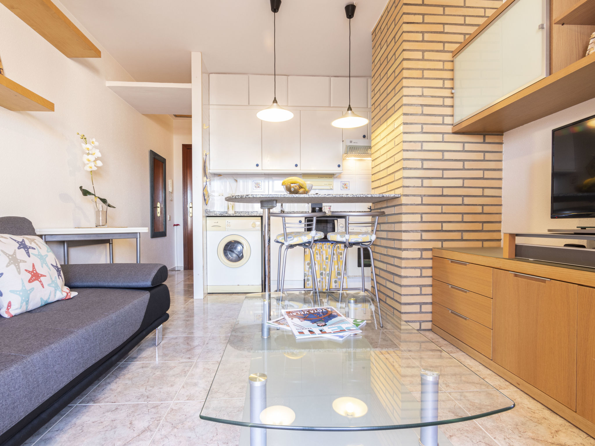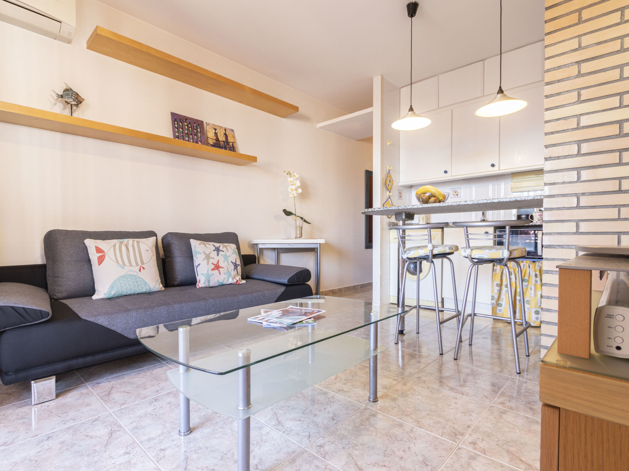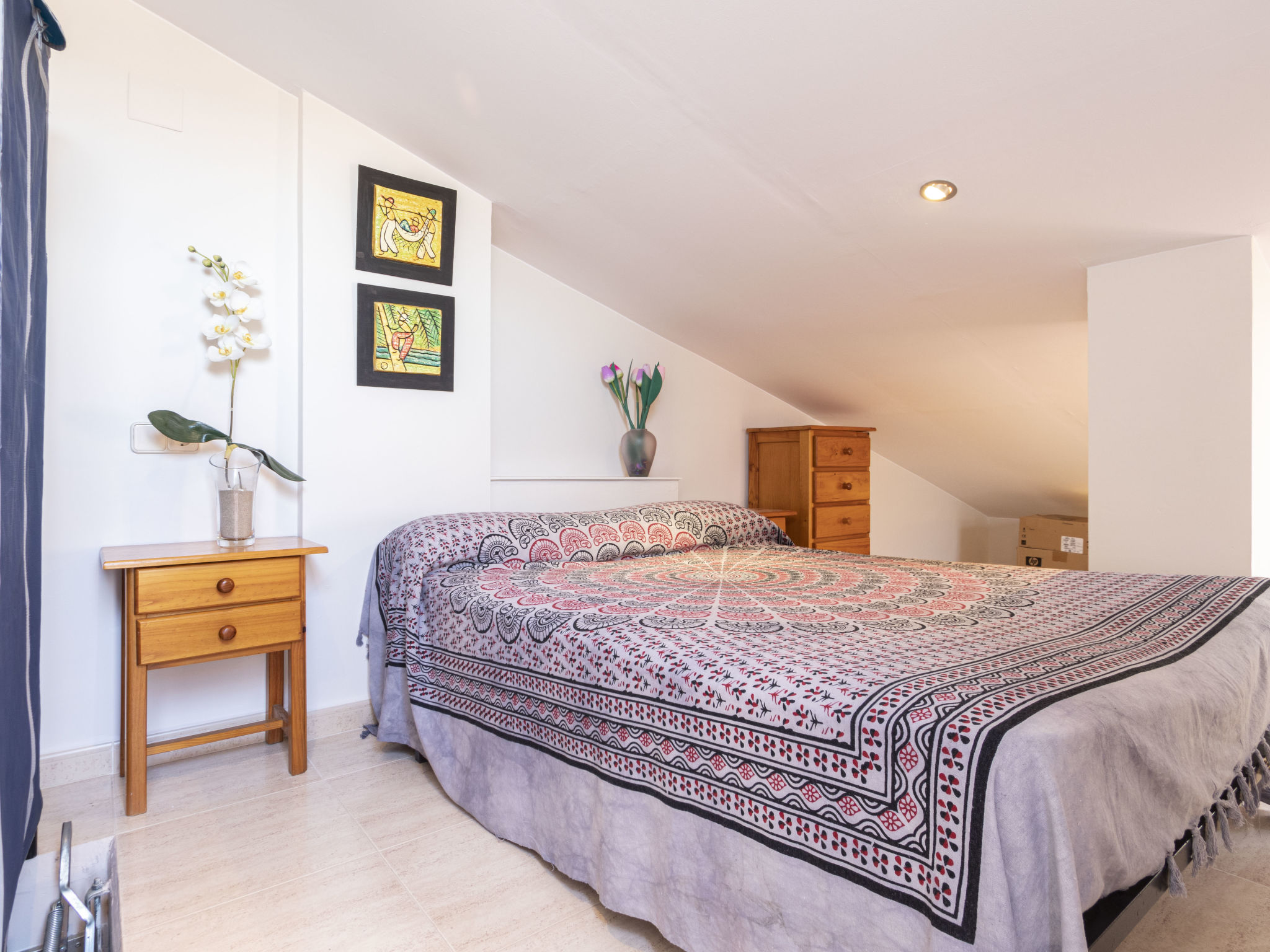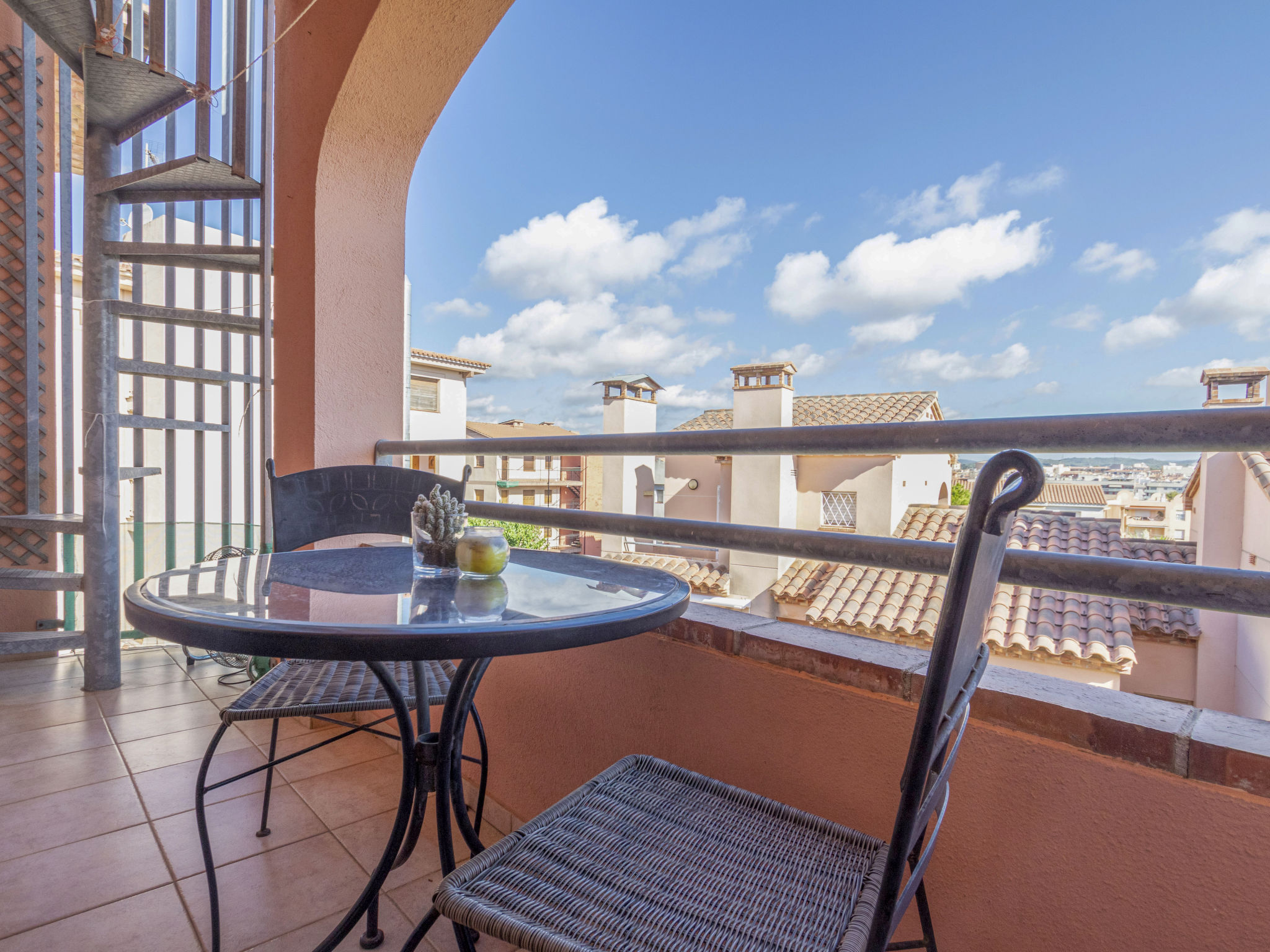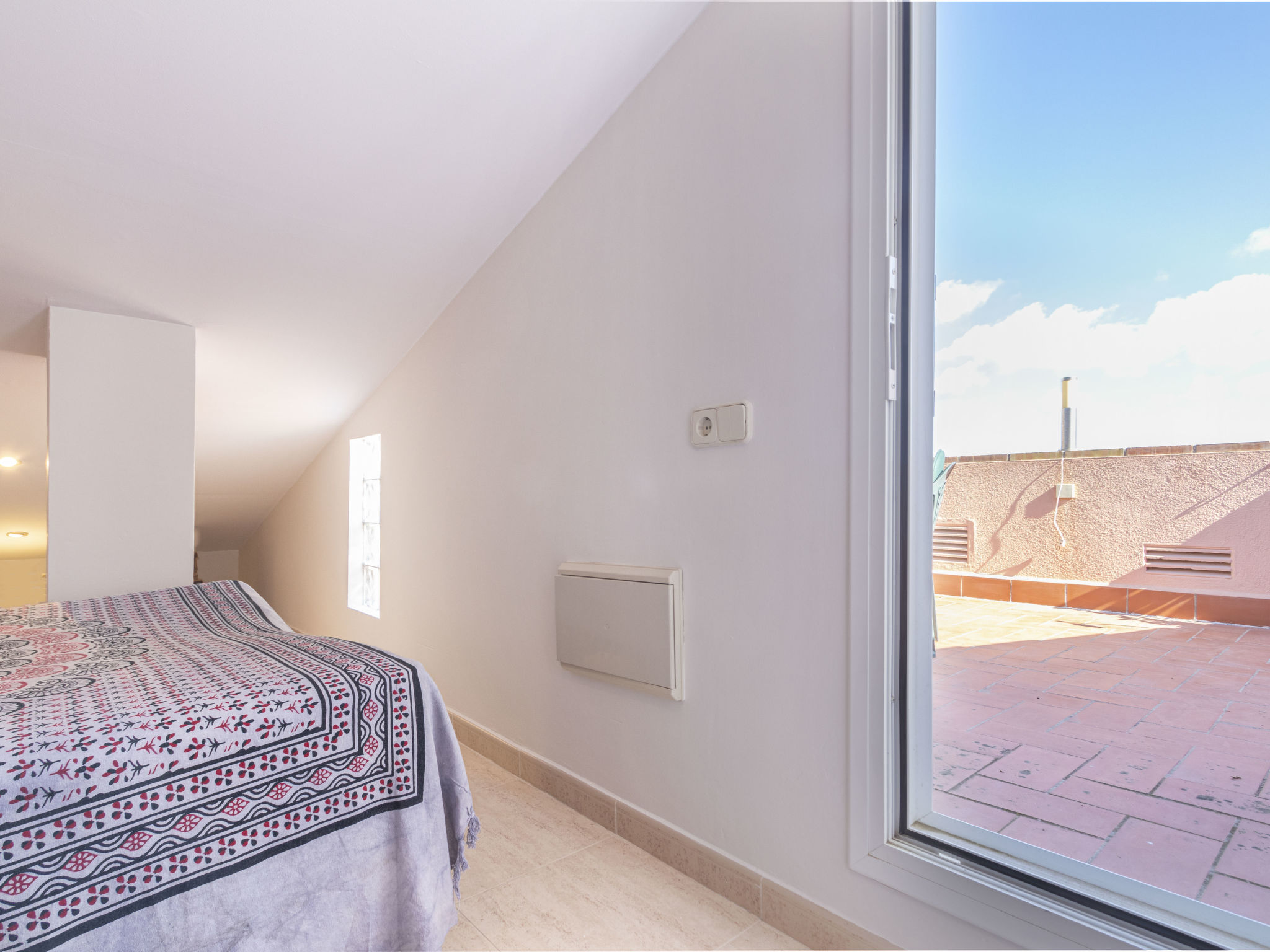 "Torrepuerto", 2-Zimmer-Maisonette-Wohnung 36 m2 im 2. Stock. Objekt geeignet für 3 Erwachsene. Teilweise abgeschrägt, einfach und zweckmässig eingerichtet: Wohn-/Esszimmer mit 1 Diwanbett (130 cm), Digital-TV und Klimaanlage. Ausgang zum Balkon, zur Terrasse. 1 Zimmer mit 1 franz. Bett (135 cm, Länge 190 cm). Offene Küche (Backofen, 3 Glaskeramikherd Platten, Toaster, Wasserkocher, Mikrowelle, elektrische Kaffeemaschine, Kapseln für die Kaffeemaschine (Nespresso)). Dusche/WC. Balkon, Terrasse. Terrassenmöbel, Gartengrill. Zur Verfügung: Waschmaschine, Bügeleisen, Haartrockner. Internet (Wireless LAN, gratis). Bitte beachten: Nichtraucher-Unterkunft. HUTT0014110