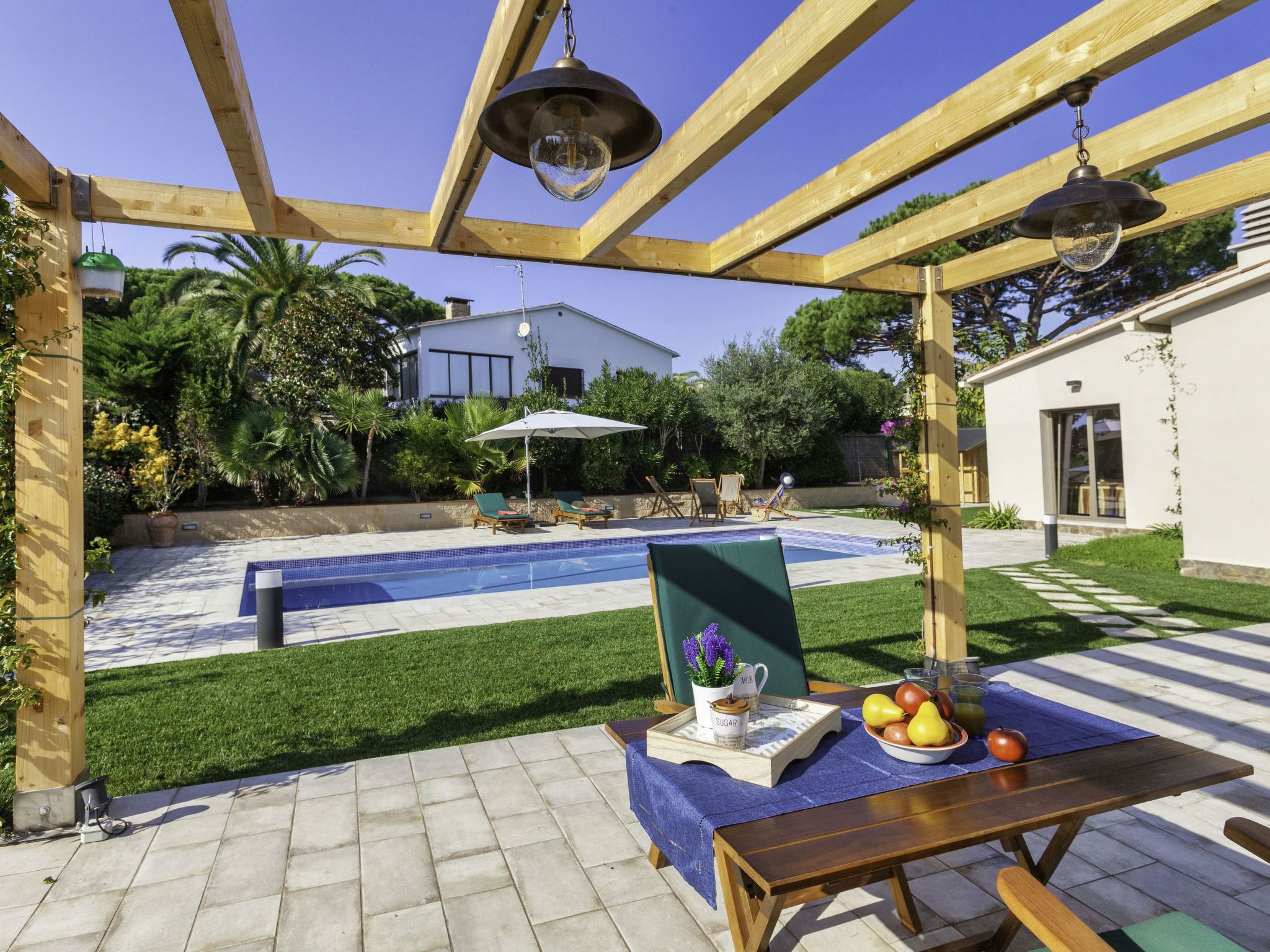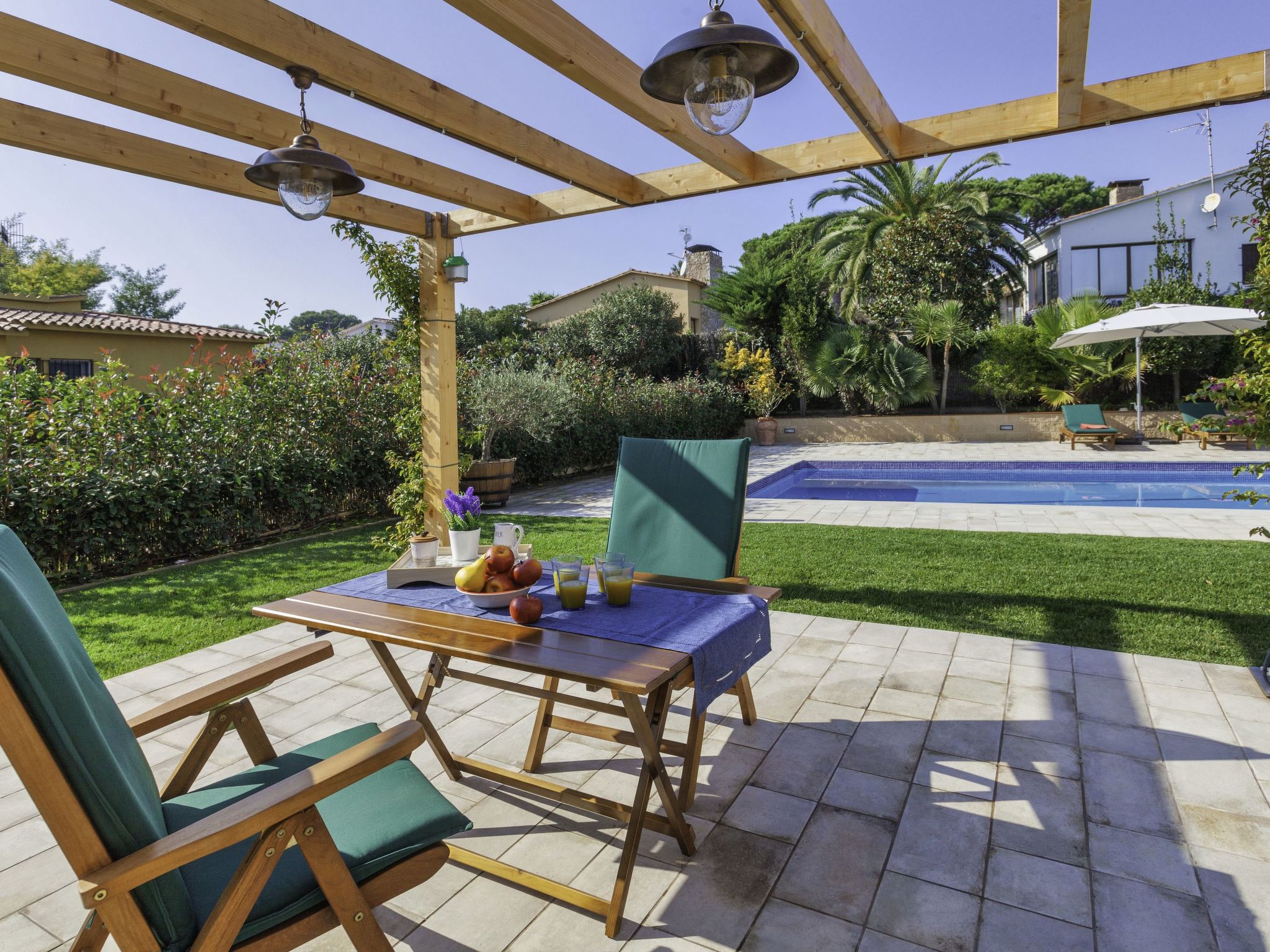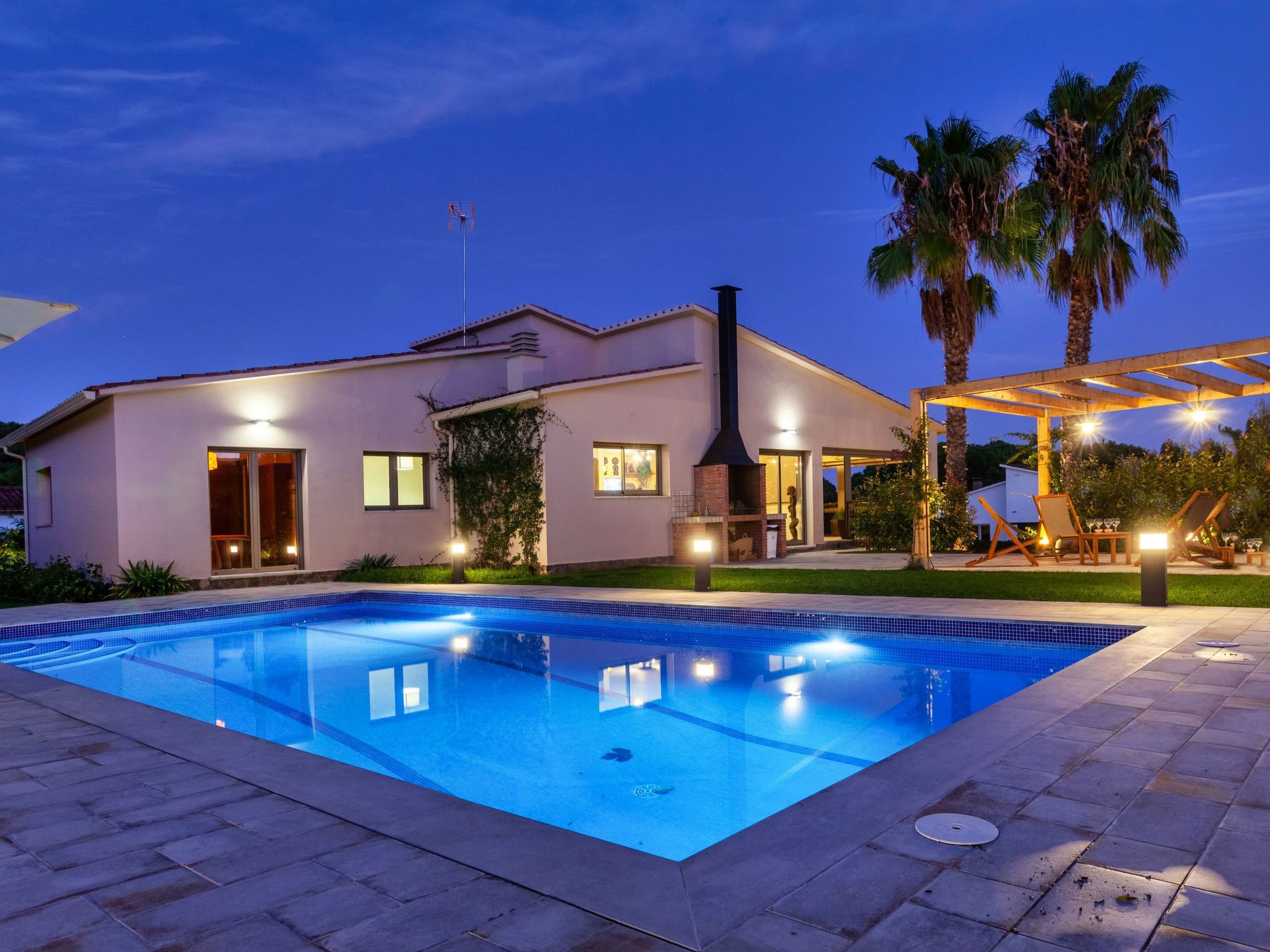 Puig ses forques 1 km von Sant Antoni de Calonge: Sehr modernes Haus "Emporion", renoviert im Jahre 2021. Im Ort, 1 km vom Zentrum von Sant Antoni de Calonge, sonnige Lage, verkehrsberuhigte Zone, 1 km vom Meer. Zur Alleinbenutzung: Garten (eingezäunt) mit Rasen und Bäumen, Schwimmbad eckig (10 x 5 m, 100 - 200 cm tief, saisonale Verfügbarkeit: 01.Mai.-31.Okt.). Pergola, Gartenmöbel, Grill, Parkplatz auf dem Grundstück. Supermarkt 1 km, Restaurant 1 km, Bar 1 km, Sandstrand "Sant Antoni de Calonge" 1 km. Sporthafen 4 km, Golfplatz 6 km, Reitstall 12 km. Nahe gelegene Sehenswürdigkeiten: Water park Aquadiver 5 km. Bitte beachten: geeignet für Familien. Der Besitzer akzeptiert keine Jugendgruppen. Die Nachbarschaft ist sehr lärmempfindlich. Ruhe und gutes Benehmen wird erwartet.