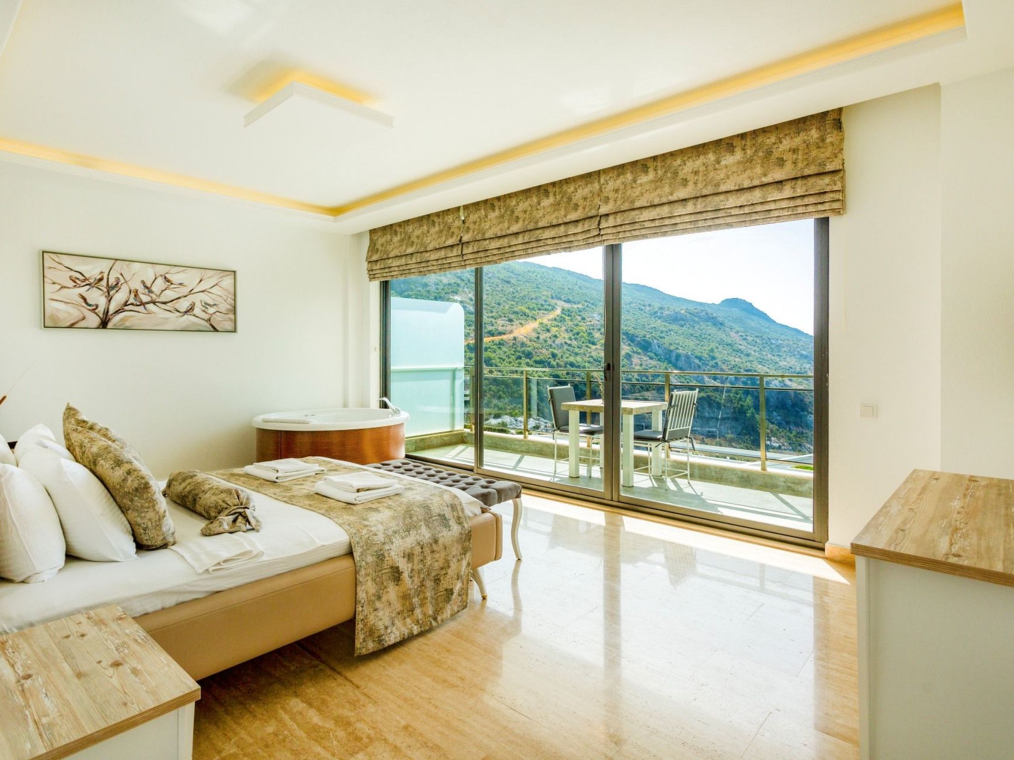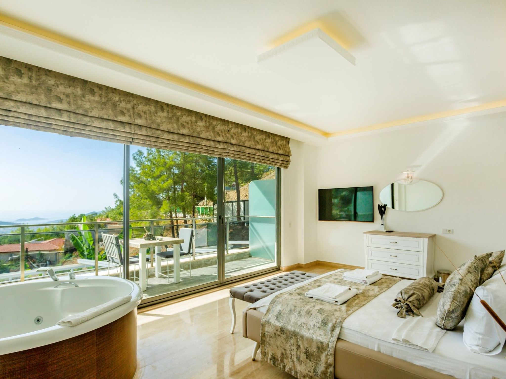 - Schlafzimmer: Doppelbett für einen Familienanzug, Klimaanlage, Kleiderschrank, Balkon, LED-TV, Whirlpool