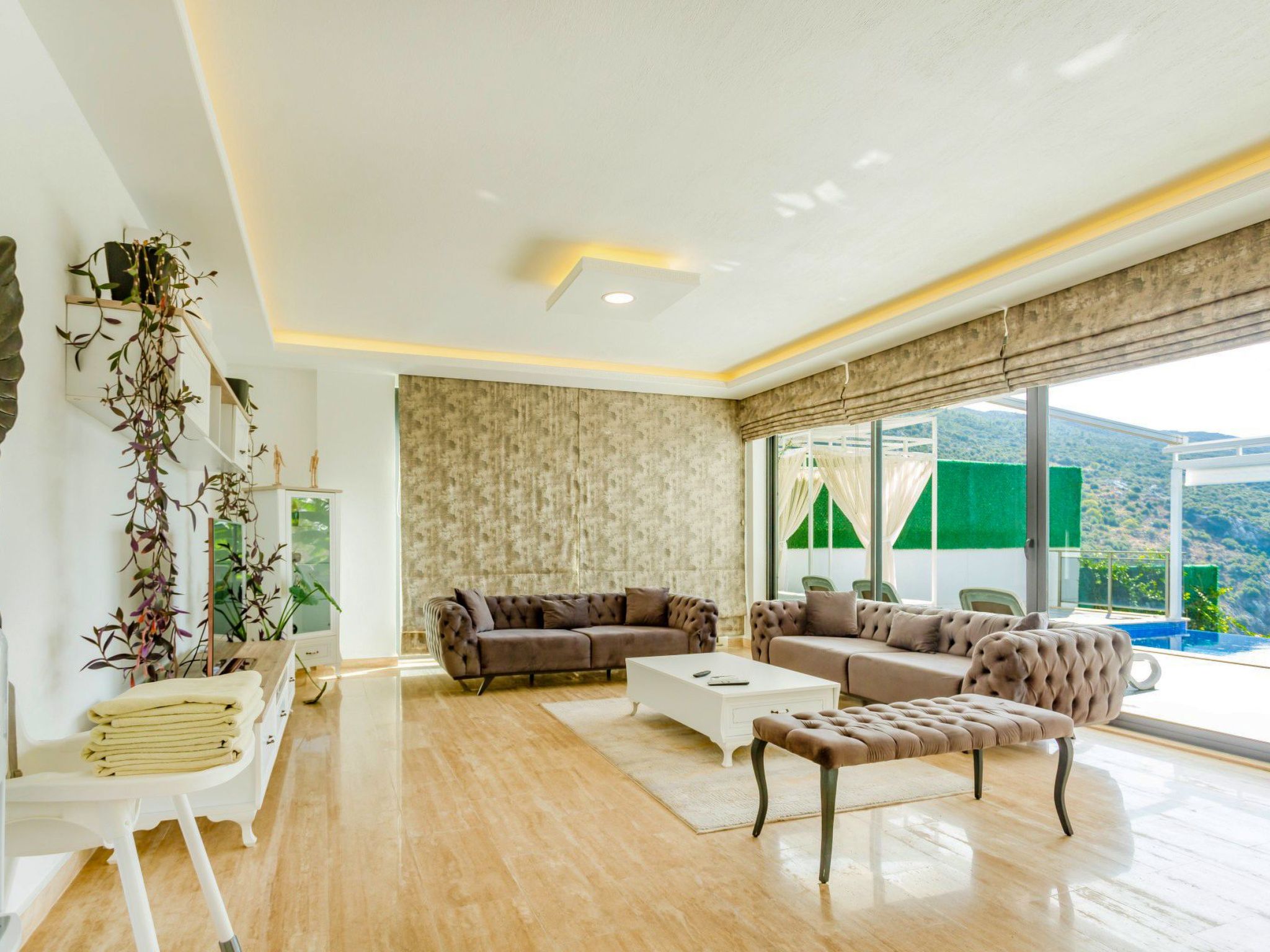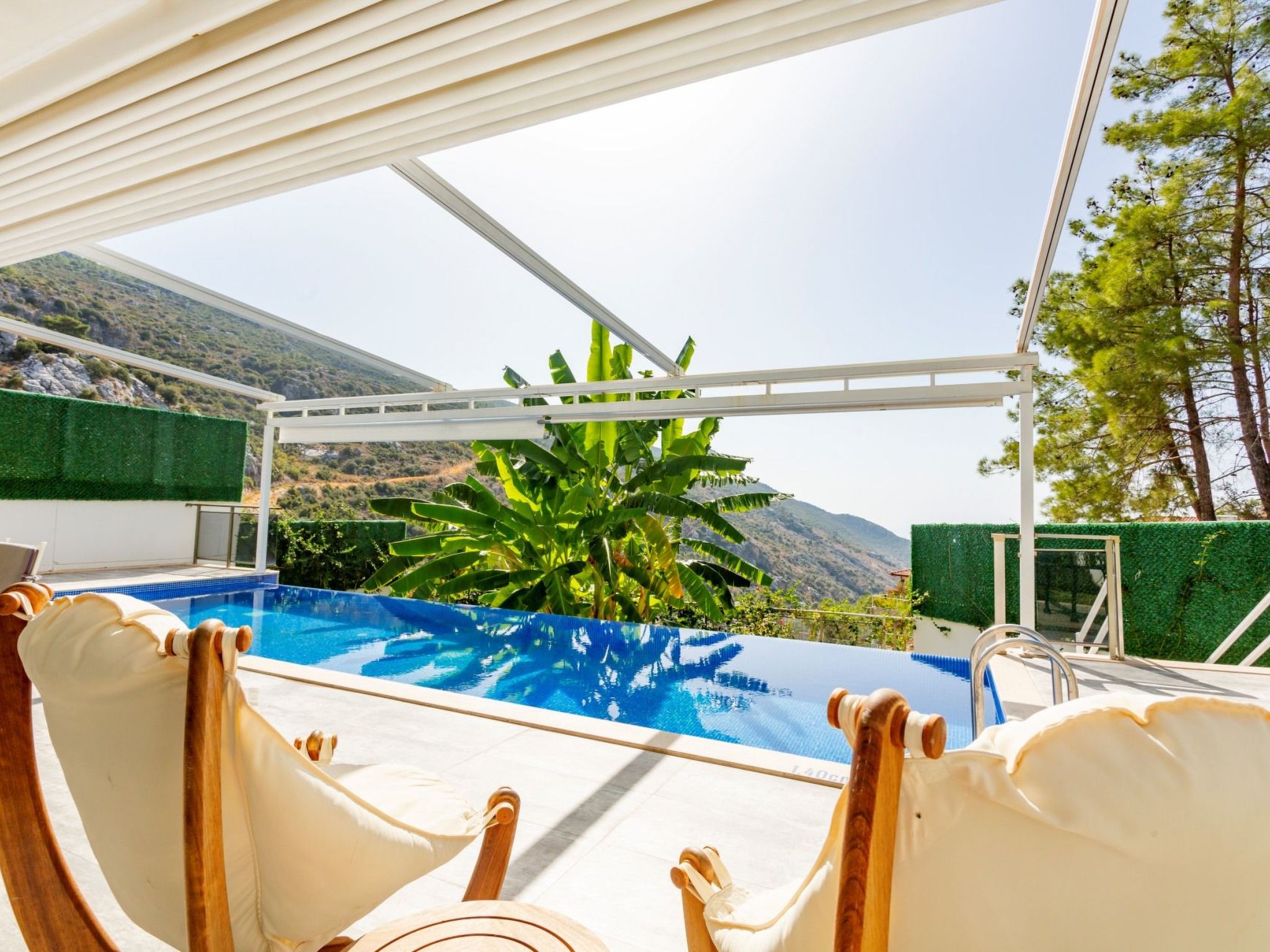 Das Dorf Islamlar bietet mit seiner ungestörten Natur und makellosen Luft eine fantastische Urlaubsmöglichkeit. Das an der Straße nach Lykien gelegene Dorf Islamlar ist eine einzigartige Wahl für unsere Gäste, die mit unseren Mietvillen einen ruhigen und ereignislosen Urlaub verbringen möchten. Unsere Mietvillen befinden sich in Kas, Kalkan. Diese unverwechselbaren Villen werden Sie sofort begeistern Wie Sie sehen, bieten sie Ihnen mit ihrem großartigen Design und ihrer hervorragenden Lage ein visuelles Fest, das sich durch ein wunderschönes, sehr grünes Tal bis zum Meer erstreckt. Der Wasserfall auf der Gegenseite des Tals, der im Frühling und Winter intensiv fließt, sorgt für Ruhe und Stille. In allen unseren Villen stehen Ihnen ein Außen-/Innenpool (überwacht), ein professionelles Fitnesscenter, ein Whirlpool, eine Sauna und ein Bad zur Verfügung, die Körper und Geist entspannen. Somit wird Ihnen ein komfortableres und ruhigeres Gartenvergnügen geboten. Unsere Villen sind mit einem Garten ausgestattet, um Ihnen eine größere und komfortablere Umgebung zu bieten. (Alle Villen in der Natur werden regelmäßig mit Insektiziden behandelt. Trotzdem können in der Nähe Schmetterlinge, Insekten, Fliegen usw. vorkommen.) Von Das bedeutet, dass Sie während Ihres Urlaubs sowohl den Pool als auch den Garten in vollen Zügen genießen und den unverwechselbarsten Zustand der Natur spüren können. Die Villen wurden so gebaut, dass Garten und Pool von außen nicht sichtbar sind. Unsere Villen sind für den Fall eines Stromausfalls mit einem Generator ausgestattet.