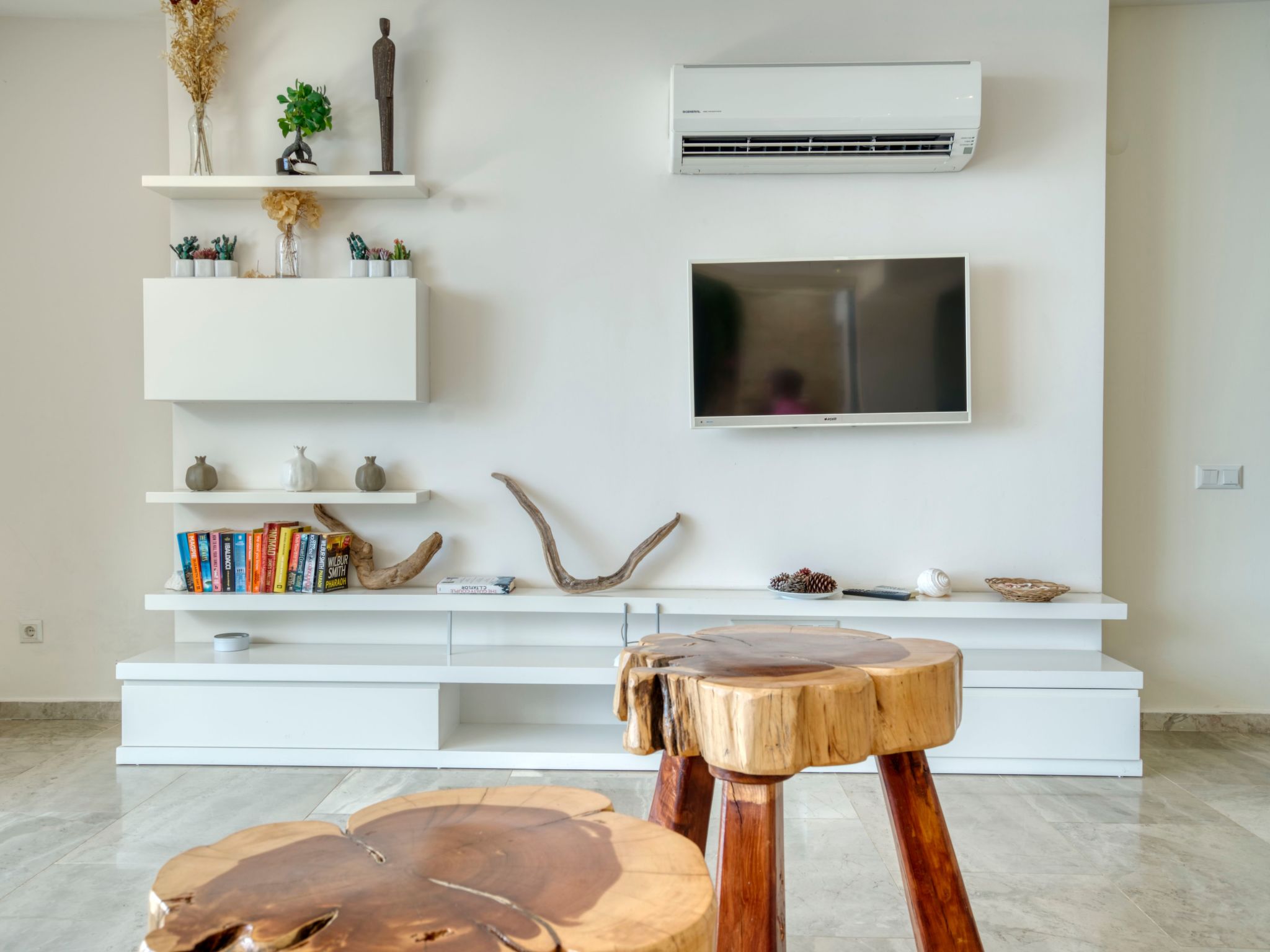 Das Innere des Ferienhauses ist praktisch und komfortabel ausgestattet, um Ihren Aufenthalt so angenehm wie möglich zu gestalten. Jedes der drei Schlafzimmer ist ein Ruhepol, der nach einem Tag voller Abenteuer zum Entspannen einlädt – mit drei Badezimmern, jeweils mit Dusche, steht der Morgenroutine nichts im Wege. Eine Waschmaschine und eine Spülmaschine sorgen für zusätzlichen Komfort während Ihres Aufenthalts, während die überall vorhandene Klimaanlage auch an den wärmsten Tagen für ein angenehmes Raumklima sorgt.
