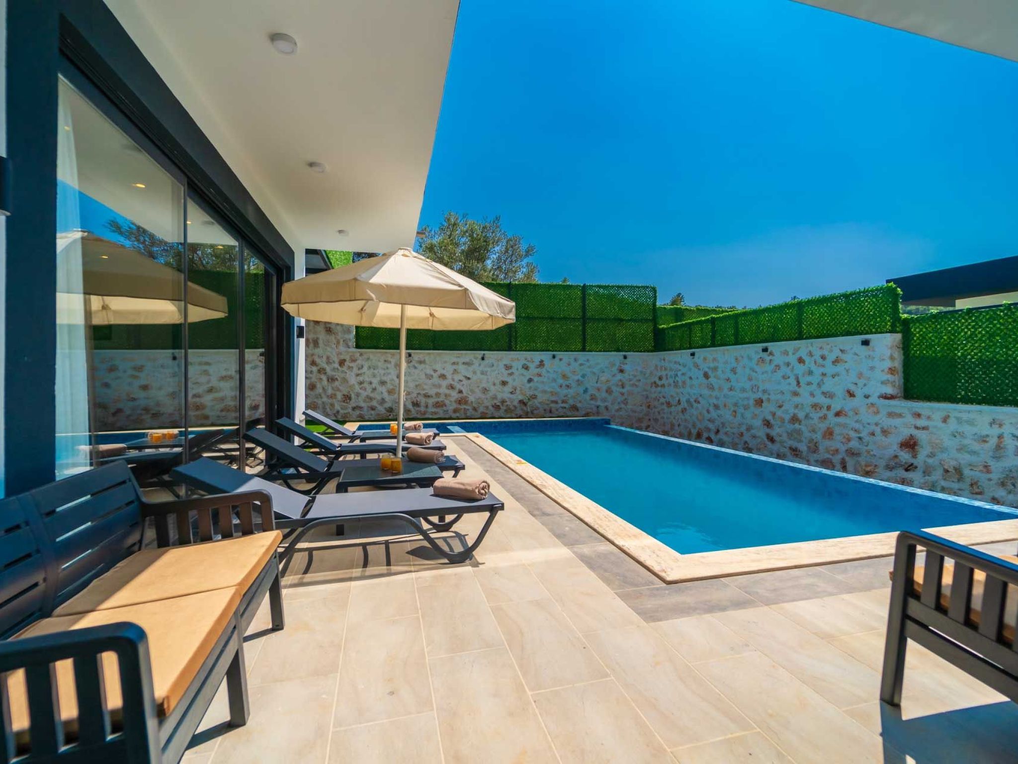 Diese exklusive Villa bietet Platz für bis zu vier Personen und garantiert Ihnen absolute Privatsphäre und Ruhe.