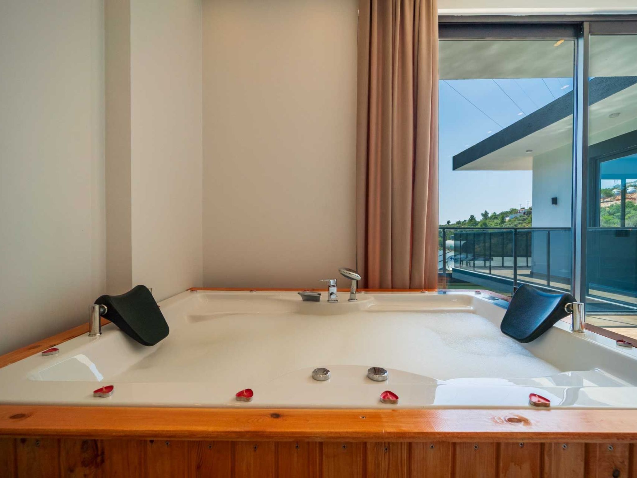 Die Villa ist liebevoll eingerichtet und bietet eine warme und einladende Atmosphäre, die ideal für Flitterwochen ist. Sie können entspannende Momente im Jacuzzi oder am Pool genießen und dabei die Ruhe und Schönheit der Natur auf sich wirken lassen. In der Umgebung gibt es zahlreiche Möglichkeiten für Aktivitäten wie Wandern, Besichtigungen und Ausflüge zu den nahegelegenen Stränden und Sehenswürdigkeiten.