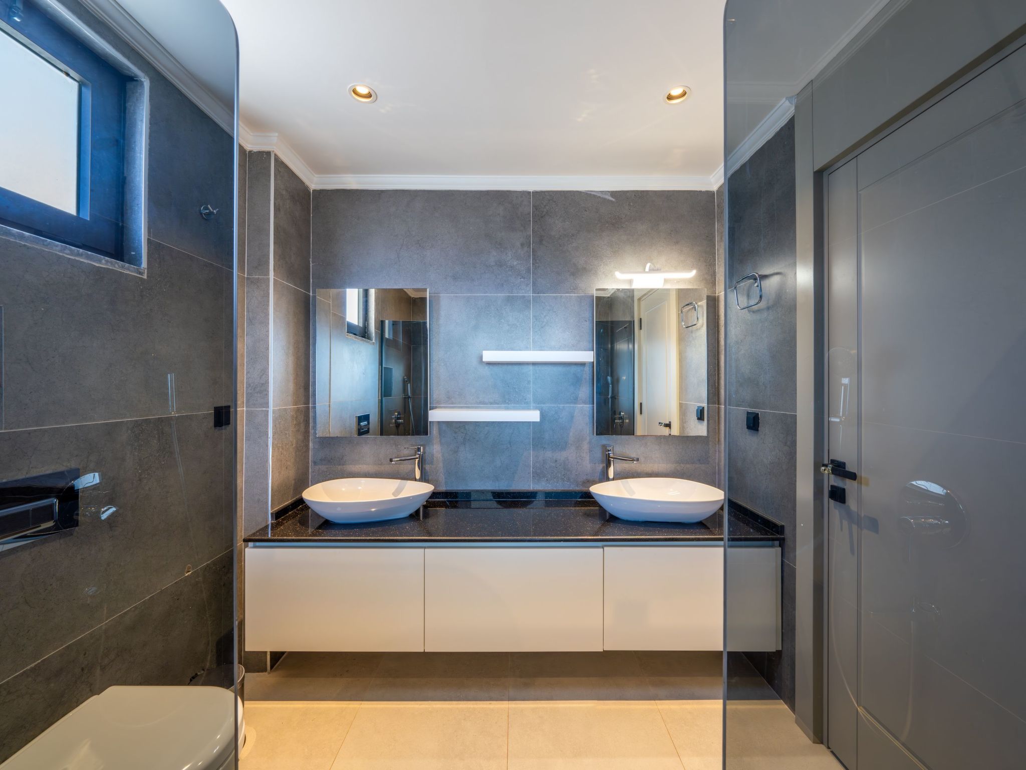 Im Inneren erwarten Sie fünf einladende Schlafzimmer mit jeweils eigenem Badezimmer, die für Privatsphäre und Komfort sorgen. Die umfassende Ausstattung, zu der auch Klimaanlage, Waschmaschine, Kaffeemaschine, Spülmaschine und Wasserkocher gehören, macht Ihr Aufenthalt angenehm und sorgt dafür, dass es Ihnen an nichts fehlt. Obwohl die Küche, das Badezimmer, Schlaf- und Wohnzimmer außer Betracht bleiben, ist die Innenausstattung darauf ausgerichtet, Ihnen und Ihren Gästen die bestmögliche Erfahrung zu bieten.