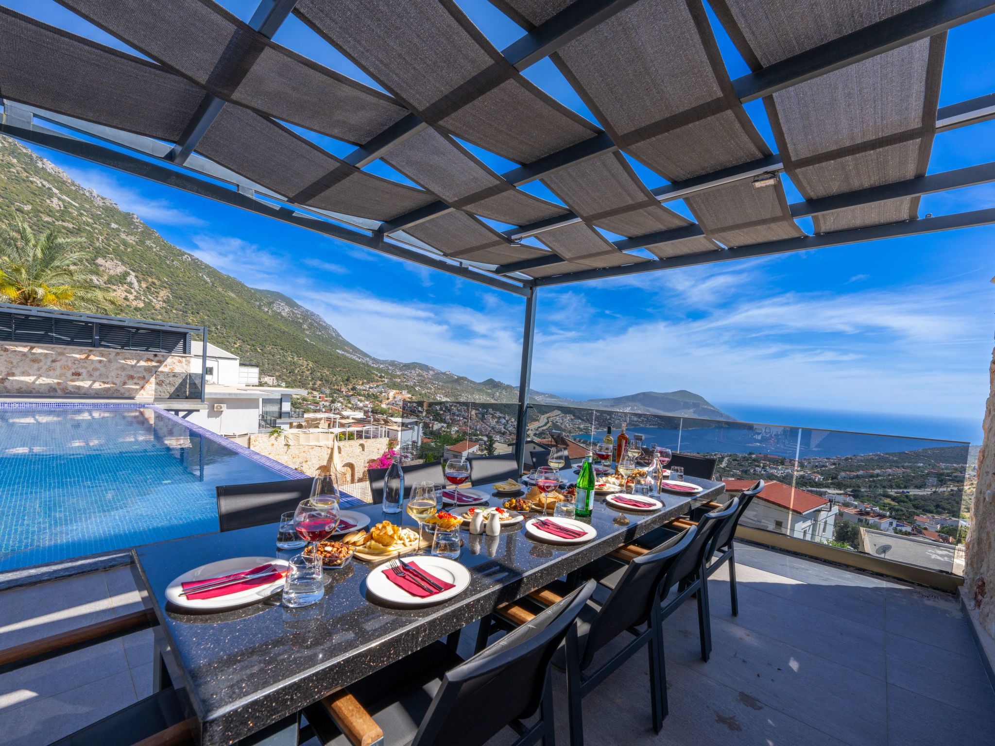 Dieses Ferienhaus in Kalkan ist der ideale Ort für diejenigen, die das Zusammenkommen schätzen und gemeinsam unvergessliche Momente in einer atemberaubenden Umgebung erleben möchten. Es erwartet Sie ein Ambiente zum Wohlfühlen, wo Sie ungezwungene Luxusmomente erleben und den Alltag hinter sich lassen können. Freuen Sie sich auf eine Auszeit, die Sie so schnell nicht vergessen werden.