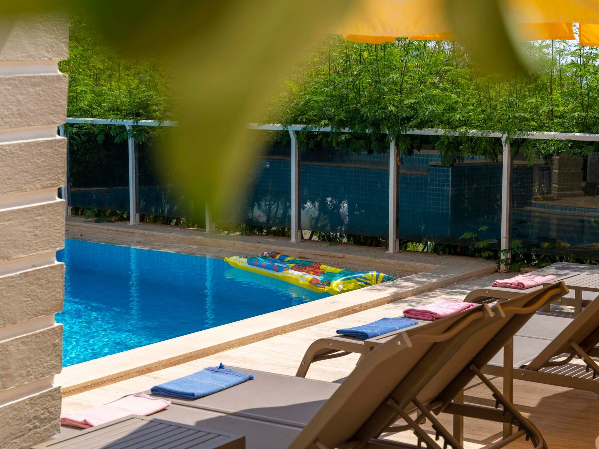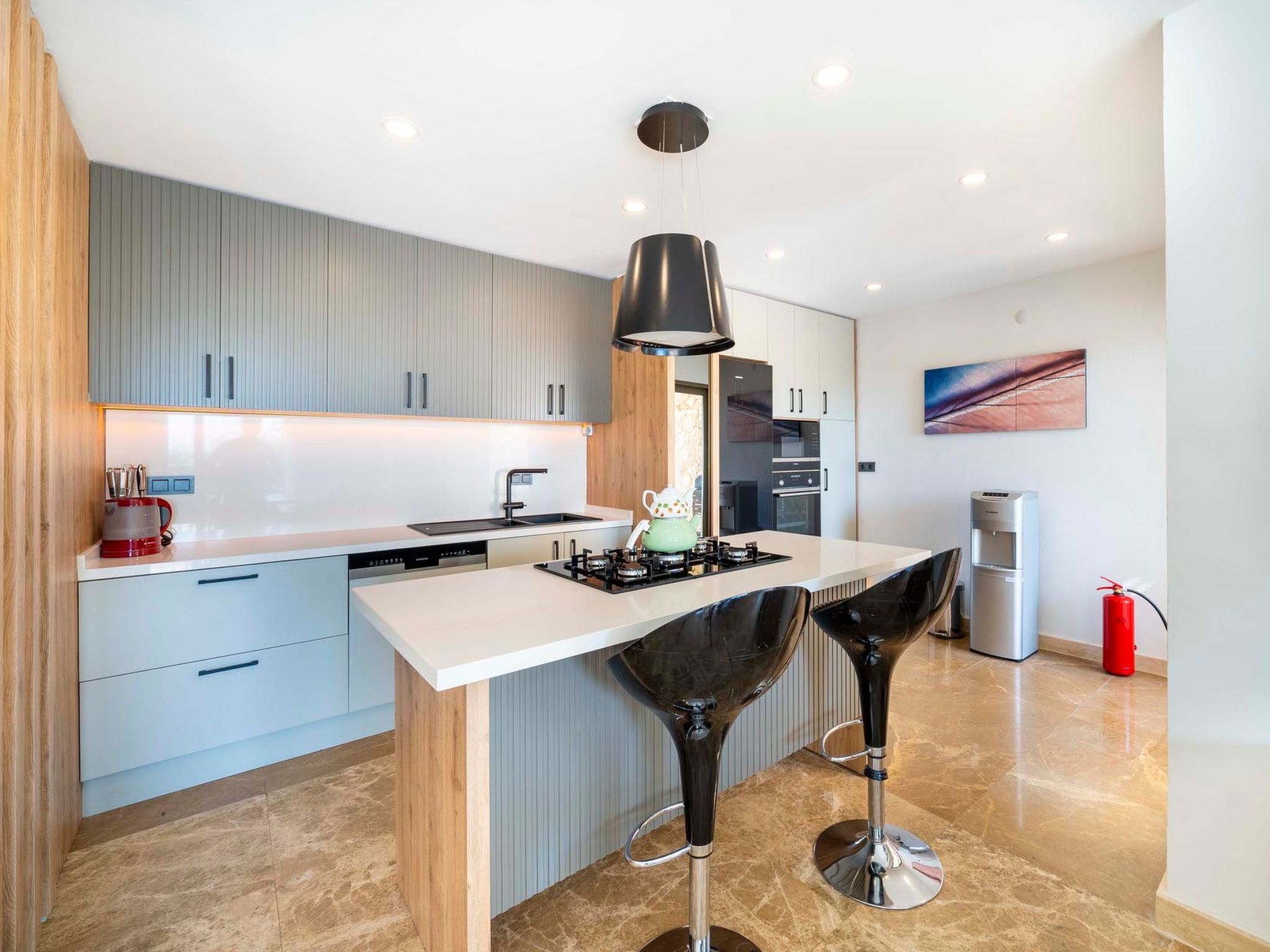 Ein besonderes Highlight der Villa ist der atemberaubende Infinitypool, der nahtlos in die Umgebung übergeht und einen spektakulären Blick auf das Meer und die umliegenden Berge bietet. Der Außenbereich umfasst zudem eine große Terrasse mit bequemen Liegen, eine schattige Sitzecke sowie einen Essbereich im Freien, perfekt für gemütliche Abende beim Grillen oder einem Glas Wein.