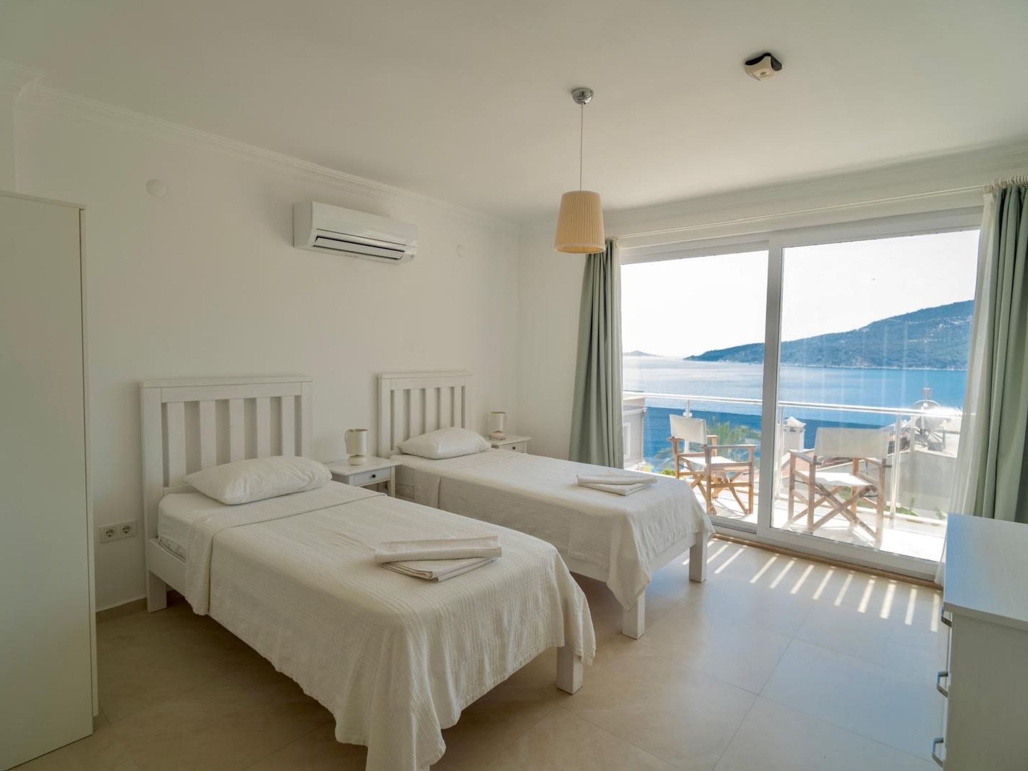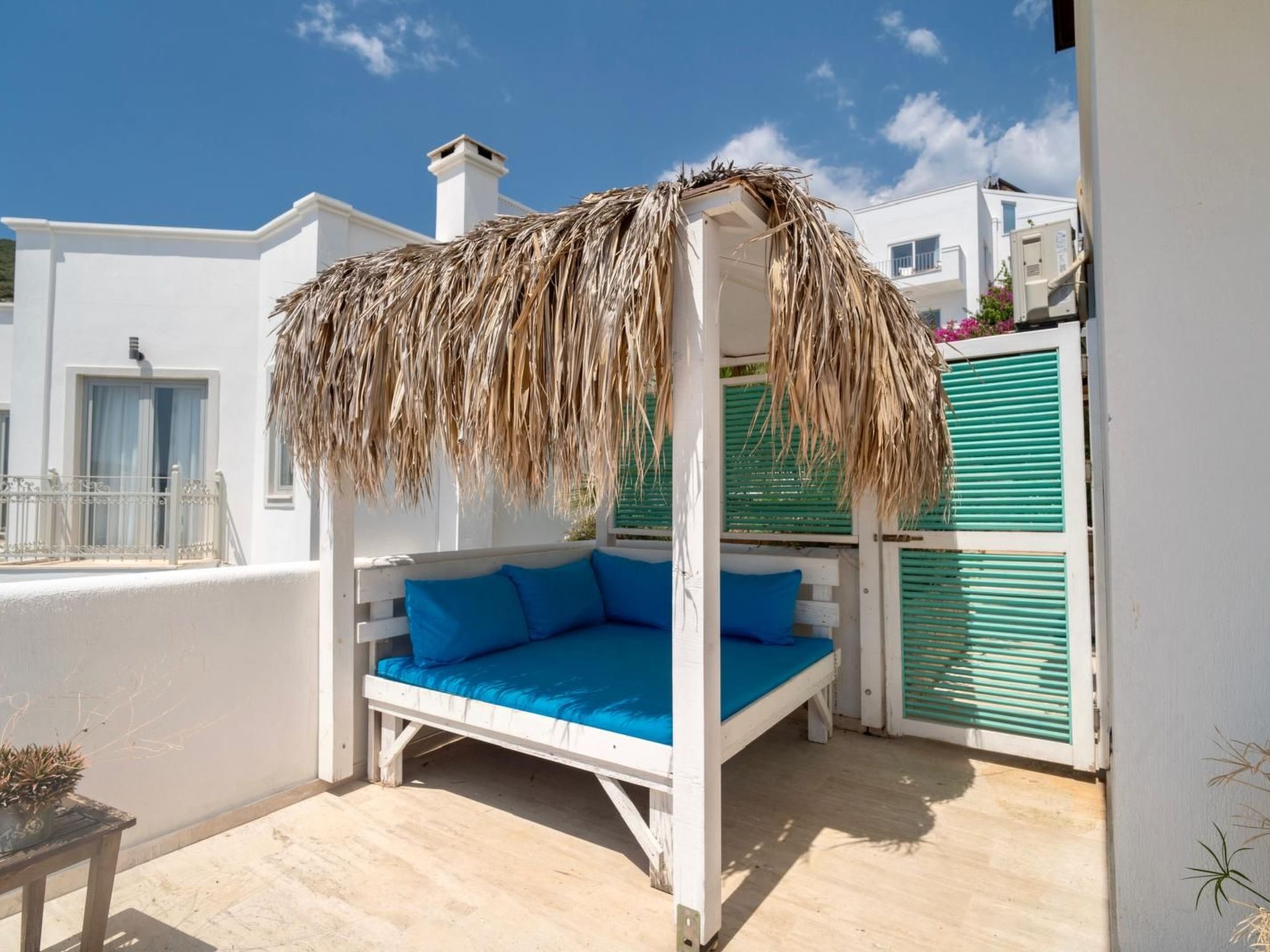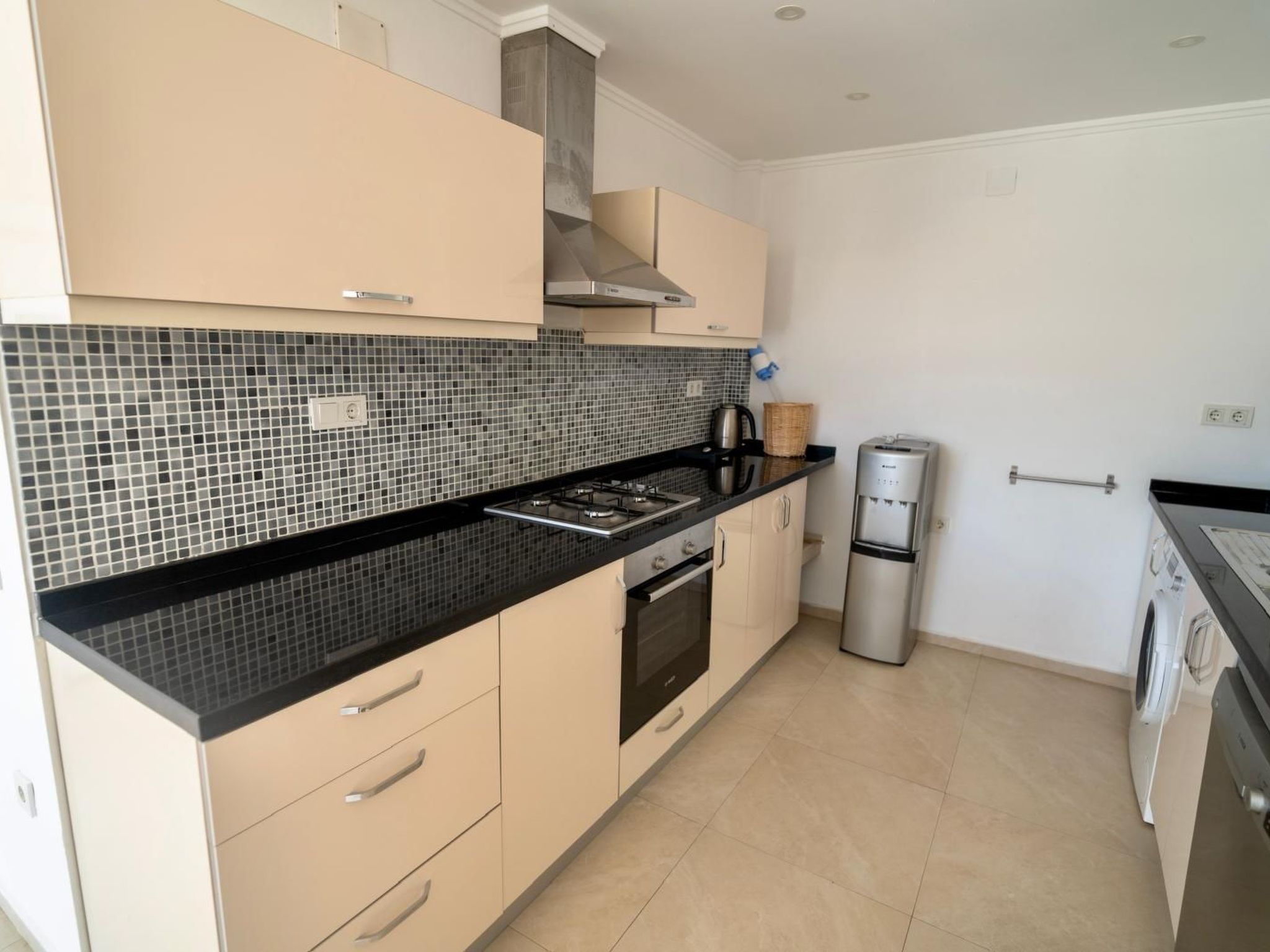Innen erwartet Sie eine helle und freundlich gestaltete Umgebung, in der natürliches Licht durch große Fenster fließt und jede Ecke des Hauses erhellt. Drei gemütliche Schlafzimmer, jedes mit einem eigenen Badezimmer ausgestattet, bieten ausreichend Privatsphäre und Komfort für jeden Gast. Die allgegenwärtige Klimaanlage sorgt für angenehme Temperaturen zu jeder Tageszeit. Für zusätzlichen Komfort sorgen eine Waschmaschine, ein Gasherd, eine Kaffeemaschine, eine Spülmaschine und ein Wasserkocher, die allen Bedürfnissen des täglichen Lebens gerecht werden.
