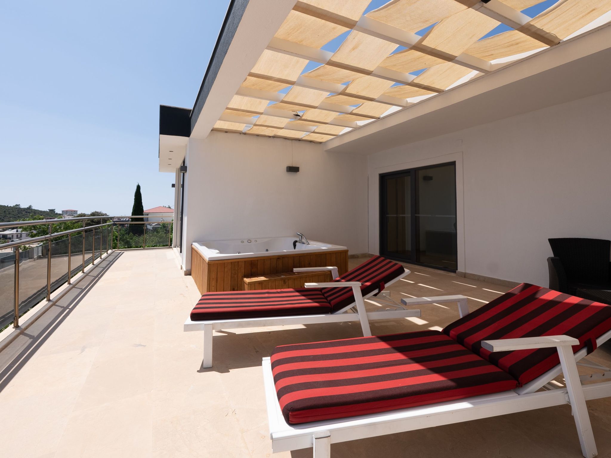 Entdecken Sie das perfekte Ferienhaus für Ihren nächsten Urlaub in Kalkan, Anatolien. Mit genügend Platz für bis zu 12 Personen ist dieses freistehende Ferienhaus der ideale Ort für große Familien oder Freundesgruppen. Genießen Sie in dieser Unterkunft nicht nur den Komfort und die Privatsphäre, sondern auch den atemberaubenden Blick auf das Meer direkt von den Zimmern aus.