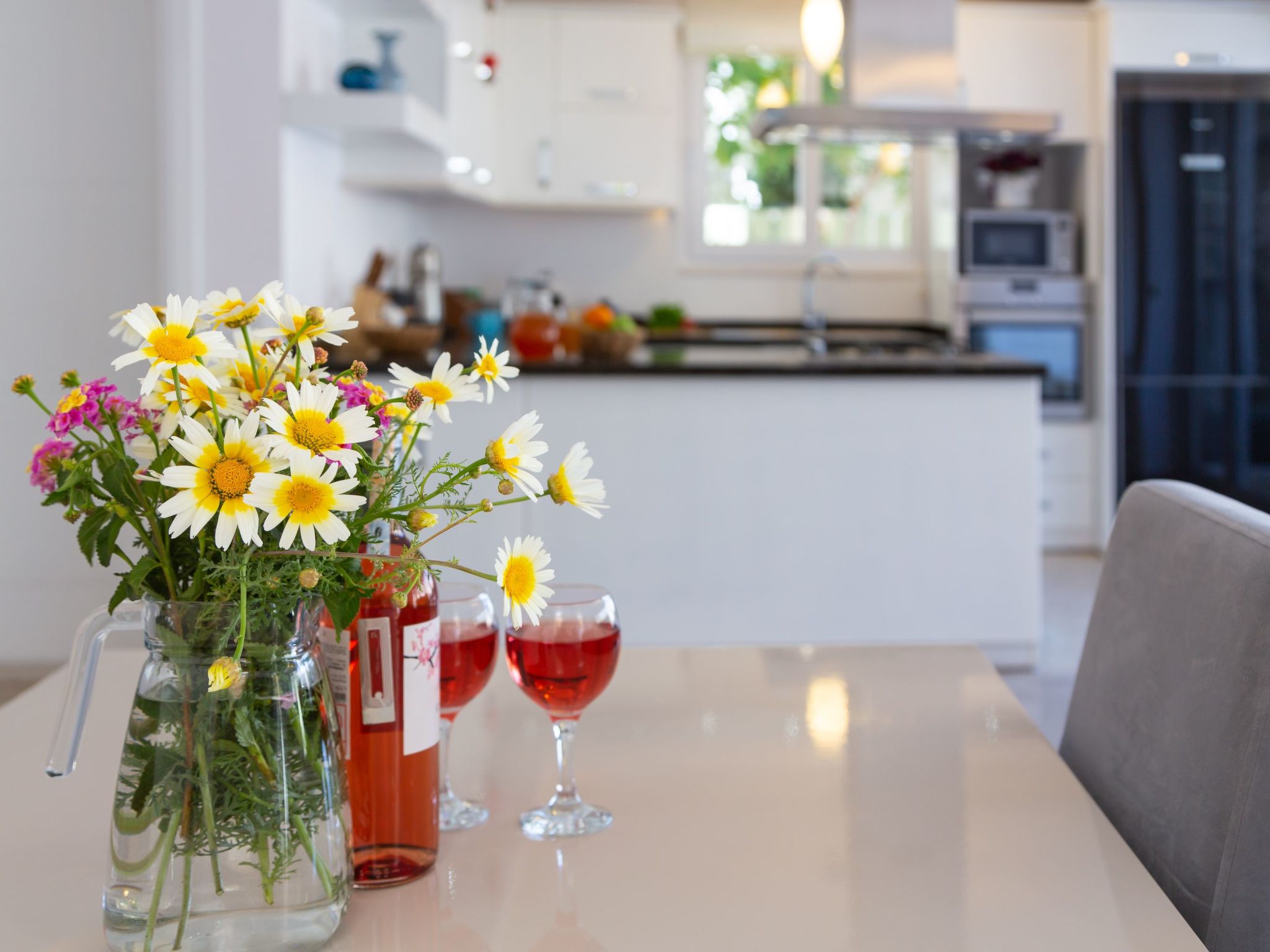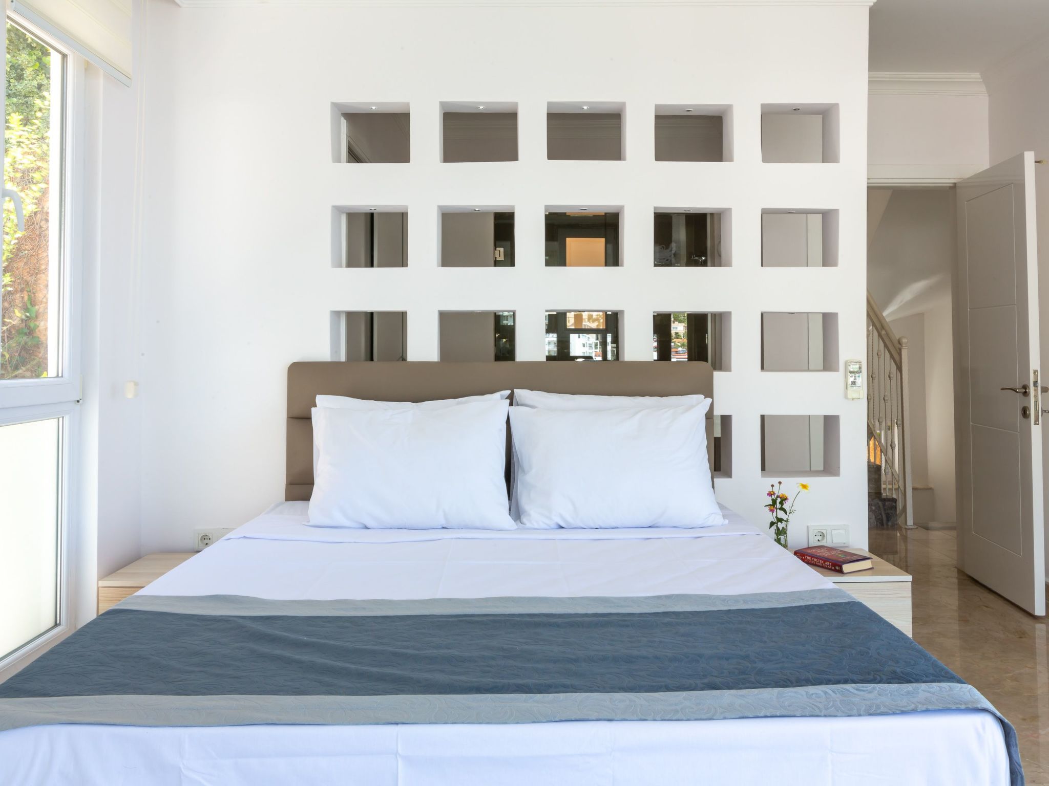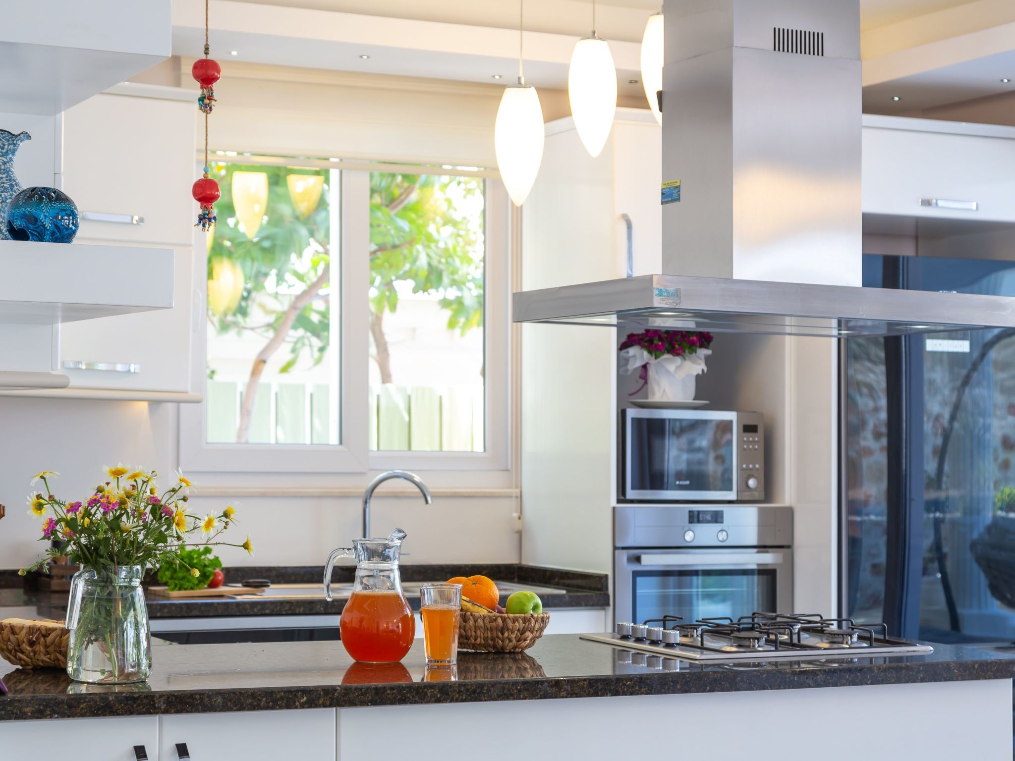 Im Inneren des Hauses erwartet Sie ein hoher Komfort mit einer praktischen Ausstattung, die keine Wünsche offenlässt. Alle Schlafzimmer sind abdunkelbar, garantieren also ungestörte Nachtruhe. Die 5 Badezimmer, ausgestattet mit Dusche und Badewanne, sorgen für ein problemloses Morgenritual, auch wenn Sie mit einer größeren Gruppe reisen. Zur weiteren Ausstattung gehören eine Klimaanlage, die für angenehme Temperaturen in allen Räumen sorgt, eine Waschmaschine und eine Spülmaschine für den alltäglichen Komfort sowie Solarenergie, die das Haus umweltfreundlich mit Energie versorgt.