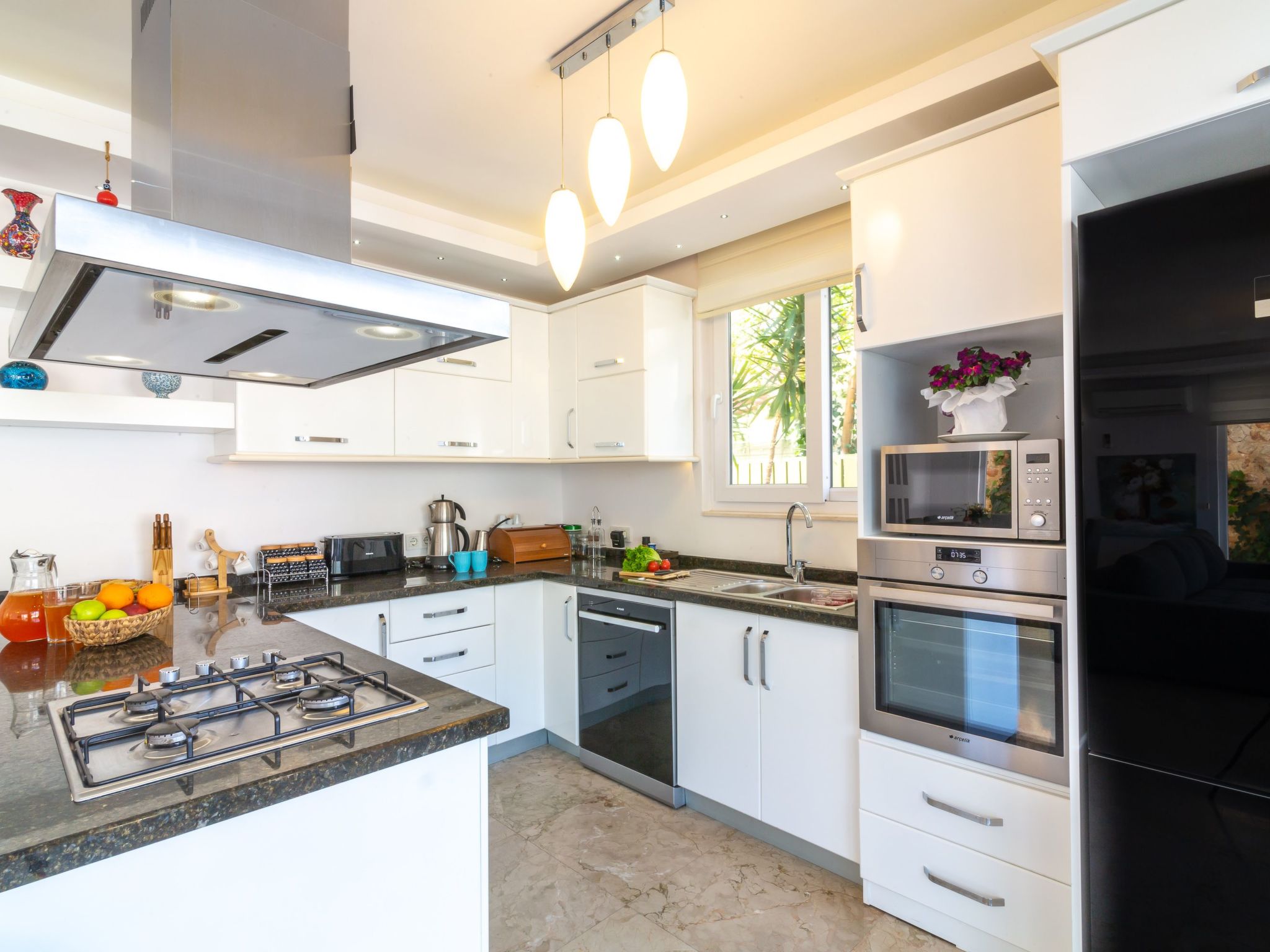 Die Lage der Villa in Kalkan-Kisla ist hervorragend. Mit dem Strand und dem Meer nur 300 Meter entfernt, lassen sich sonnige Tage am Wasser ohne lange Wege genießen. Die nächstgelegene Ortsmitte ist 2000 Meter entfernt, so dass Sie auch das lebendige Stadtleben von Kalkan mit seinen Einkaufsmöglichkeiten und gastronomischen Angeboten bequem erkunden können. Ein Lebensmittelhandel befindet sich zudem nur 1000 Meter von Ihrem Feriendomizil entfernt, was die Selbstversorgung erleichtert.