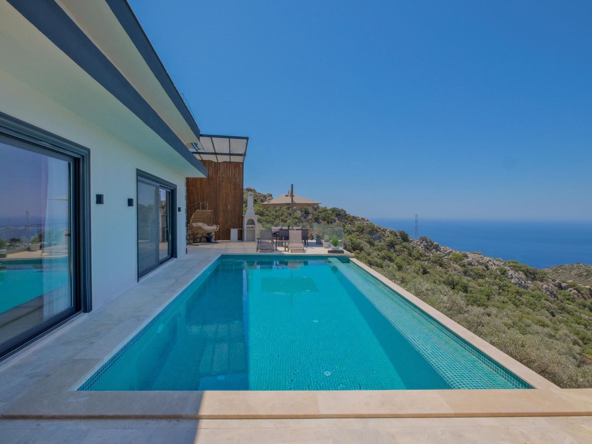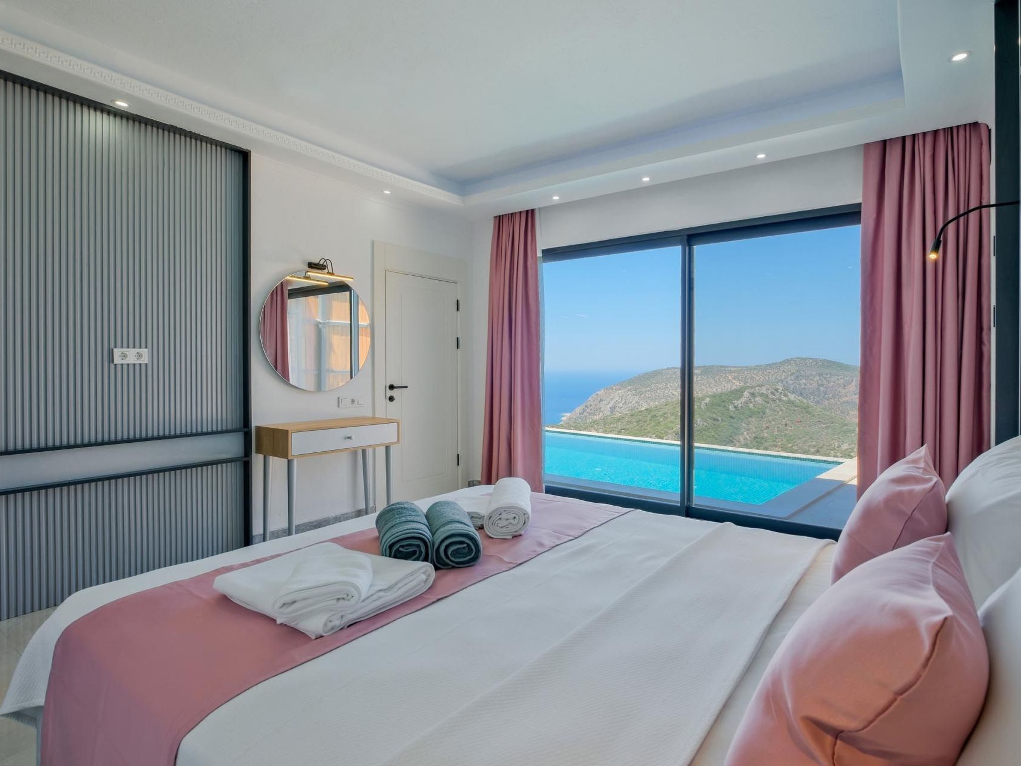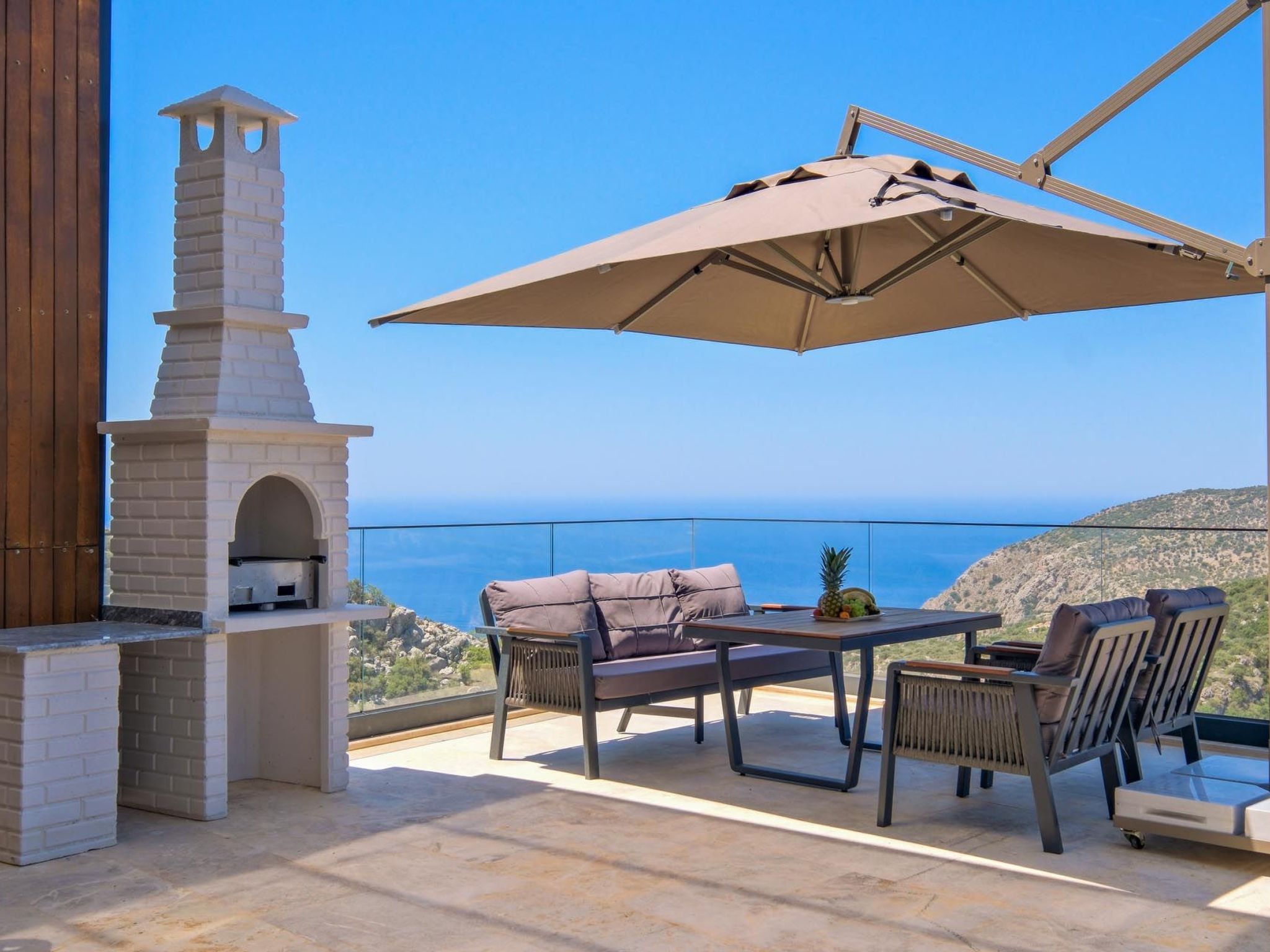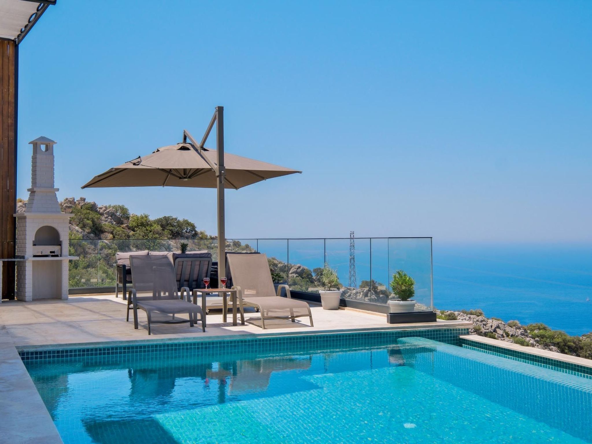 Erleben Sie den ultimativen Luxus und Komfort in unserer exquisiten Villa, die speziell für Paare und romantische Flitterwochen konzipiert ist. Diese idyllische Oase bietet Platz für zwei Personen und besticht durch ihre außergewöhnliche Lage sowie atemberaubende Aussichten. Der glitzernde Infinitypool lädt dazu ein, in sein kristallklares Wasser einzutauchen und die spektakuläre Aussicht zu genießen, die das Gefühl vermittelt, direkt mit dem Horizont zu verschmelzen. Die Villa bietet eine unvergleichliche Aussicht auf majestätische Berge und das tiefblaue Meer, die Sie vom Pool, der Terrasse oder den Wohnbereichen aus bewundern können.