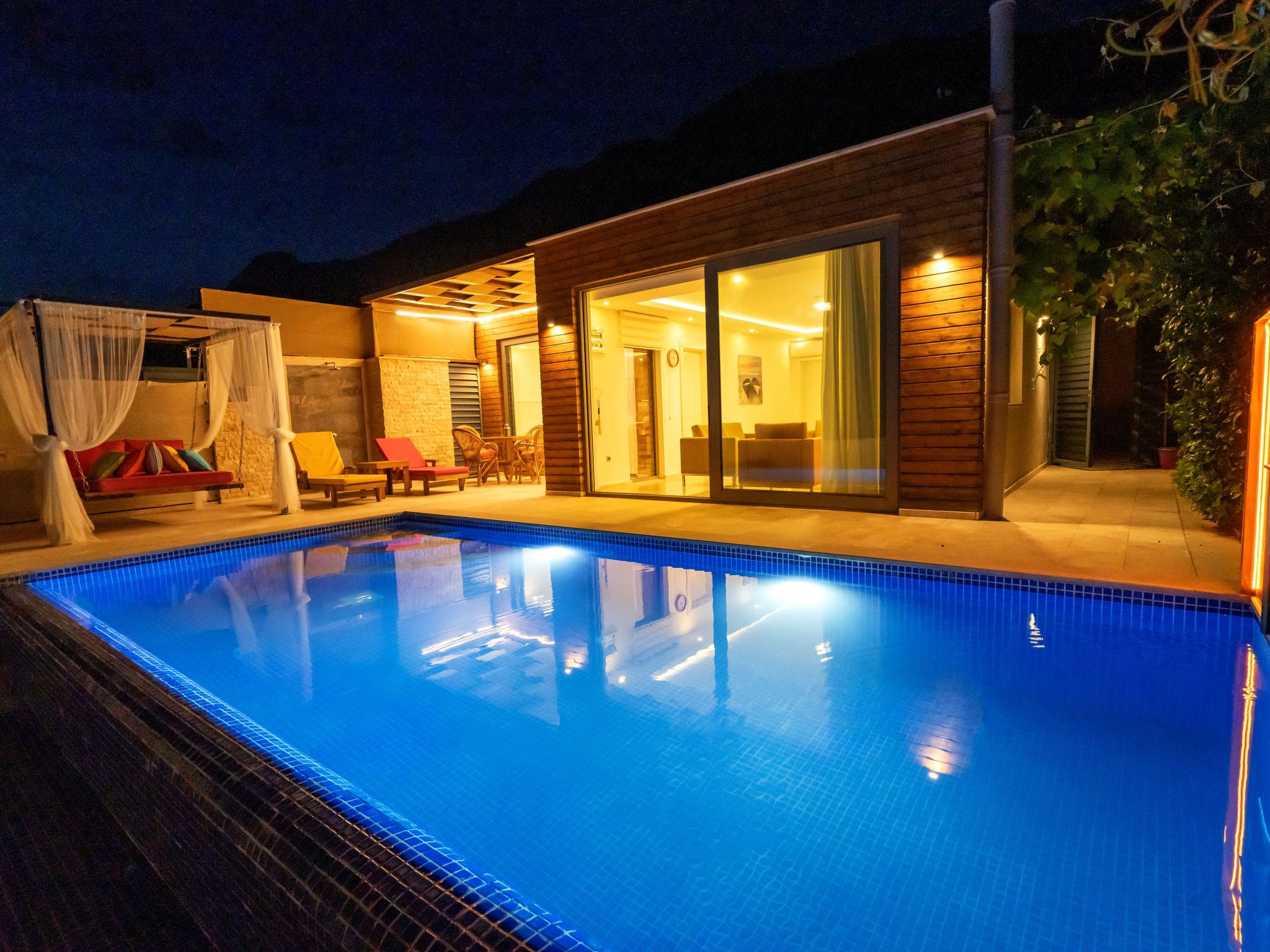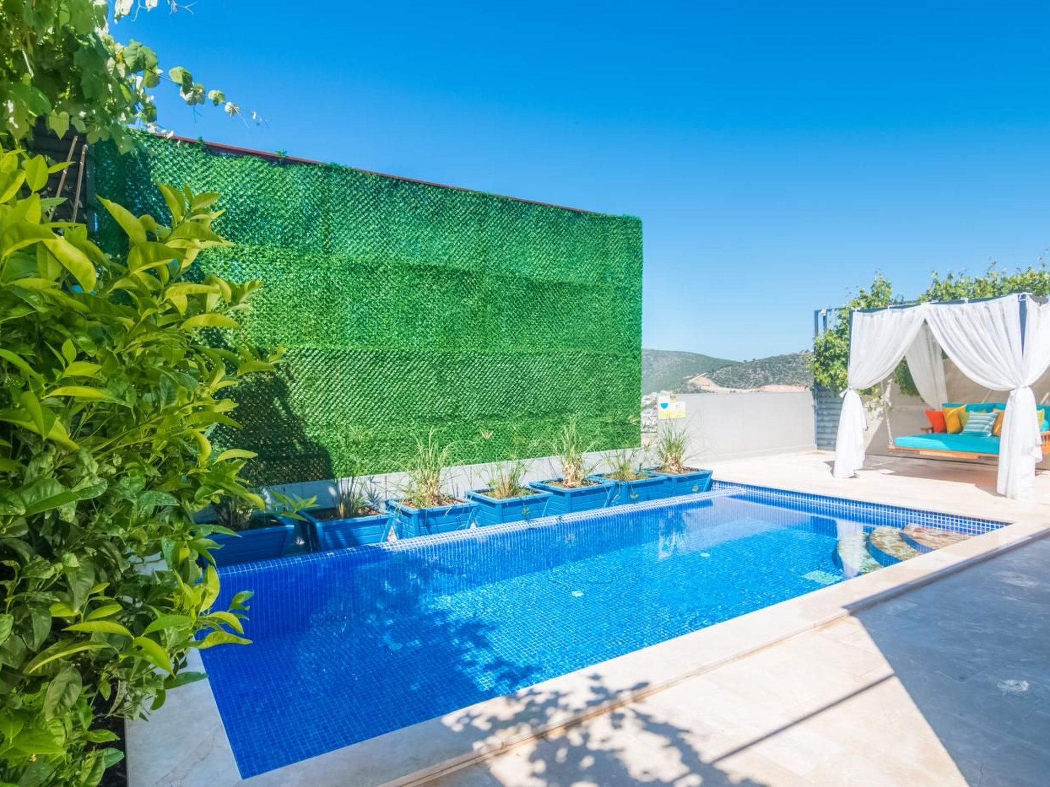 Die Villa, die sich im Bereich Kördere in Kalkan befindet, ist eine Hochzeitsvilla mit einem atemberaubenden Blick auf das Meer und die Inseln. Sie verfügt über 1 Schlafzimmer und bietet Platz für 2 Personen. Mit ihrer stilvollen und einfachen Architektur ist die Villa eine der perfekten Adressen für Ihre Traumflitterwochen.