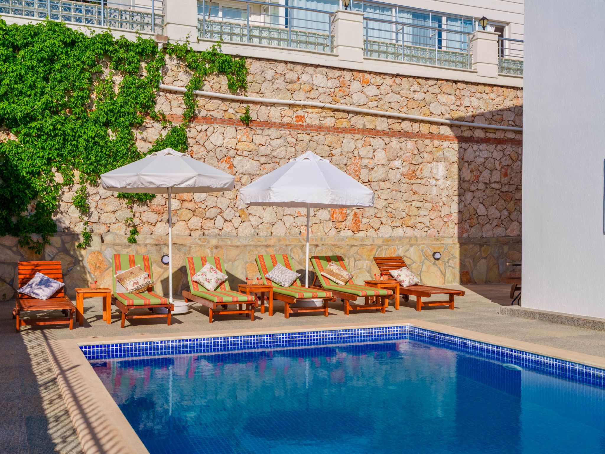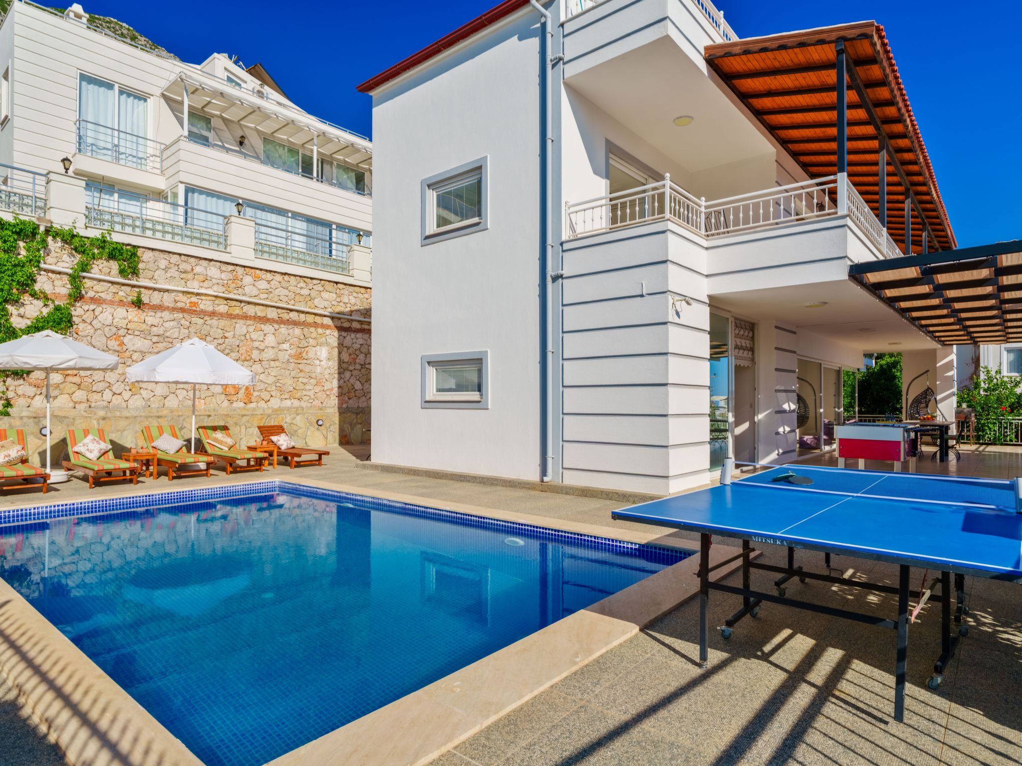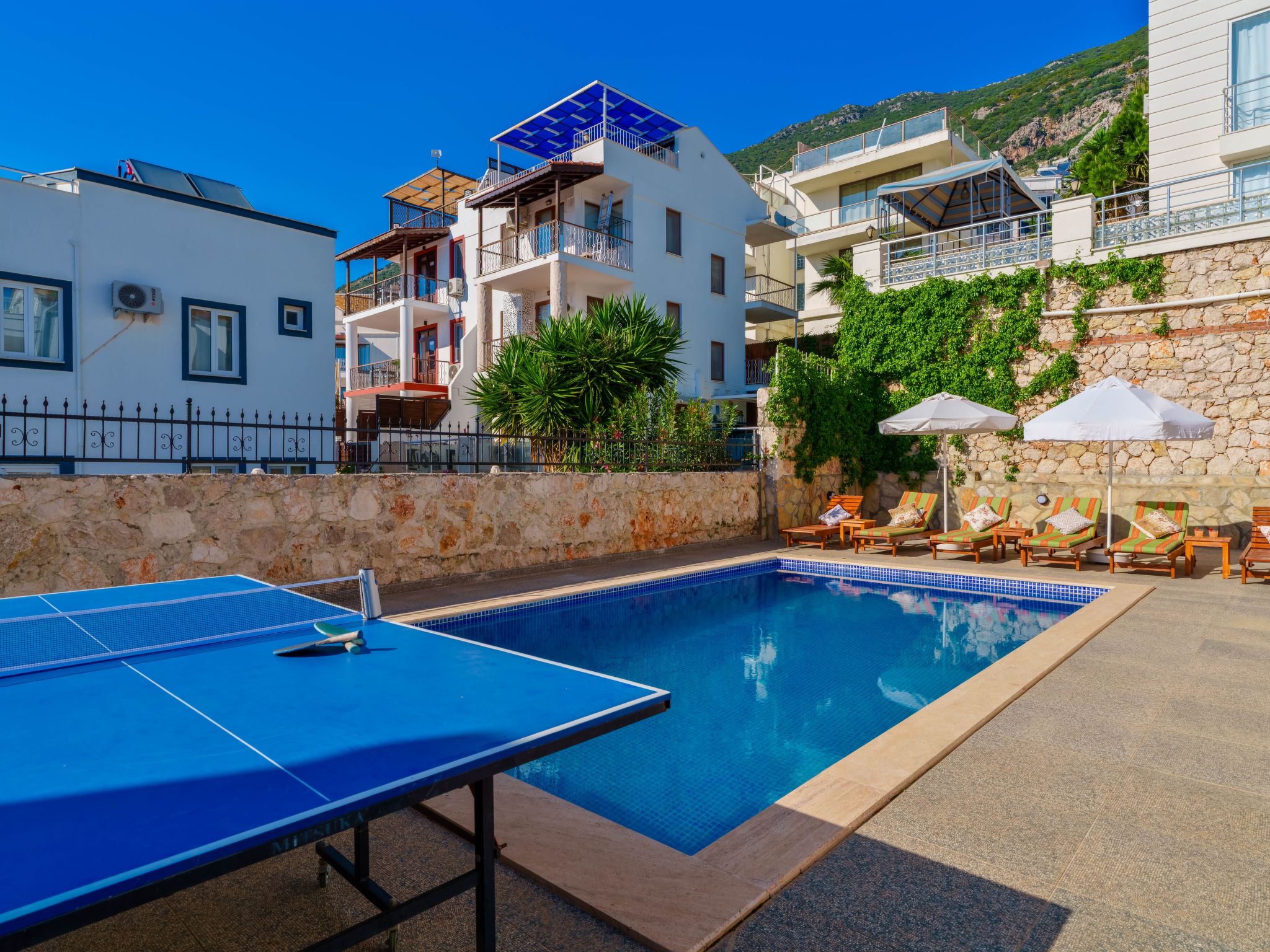 Die Villa befindet sich in der Gegend Kızıltaş in Kalkan und bietet einen wunderschönen Blick auf das Mittelmeer. Die Villa befindet sich in der Nähe des Stadtzentrums und der Strände, was sie ideal für große Familien oder Gruppen mit 3 Schlafzimmern und einer Kapazität von 7 Personen macht. Sie können angenehme und entspannte Momente mit Ihrer Familie und Ihren Lieben in dieser Villa verbringen und dabei die schöne Umgebung genießen.