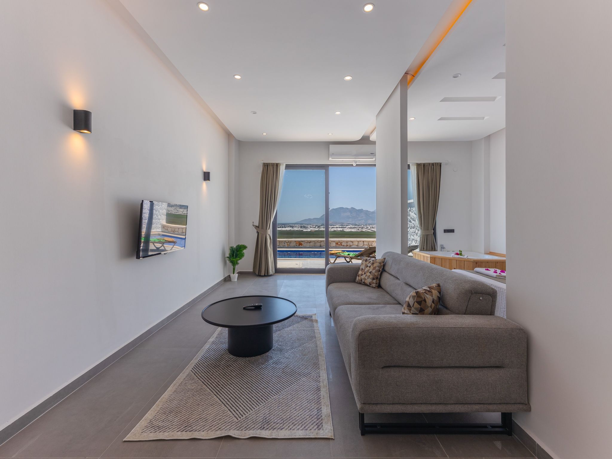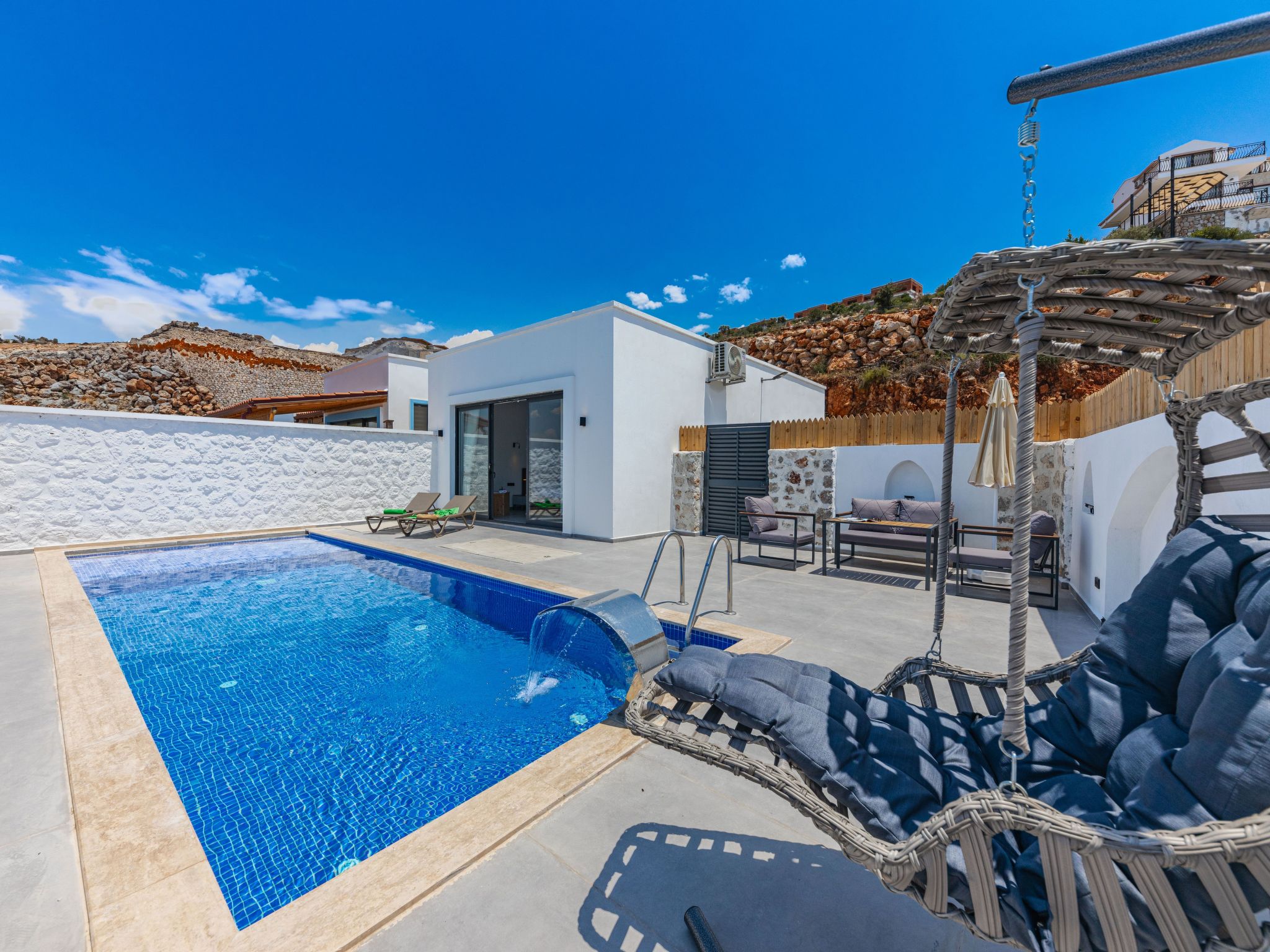 Dieses charmante Ferienhaus in Kalkan-Islamlar bietet eine idyllische Rückzugsmöglichkeit für zwei Personen. Als ein Studio konzipiert, verbindet es Wohn- und Schlafbereich zu einem harmonischen Ganzen. Das Haus verfügt über ein Badezimmer mit Dusche, ideal für eine erfrischende Abkühlung nach einem Tag in der Sonne. Ein besonderes Highlight ist der Pool zur alleinigen Nutzung, der eine willkommene Erfrischung an warmen Tagen verspricht.