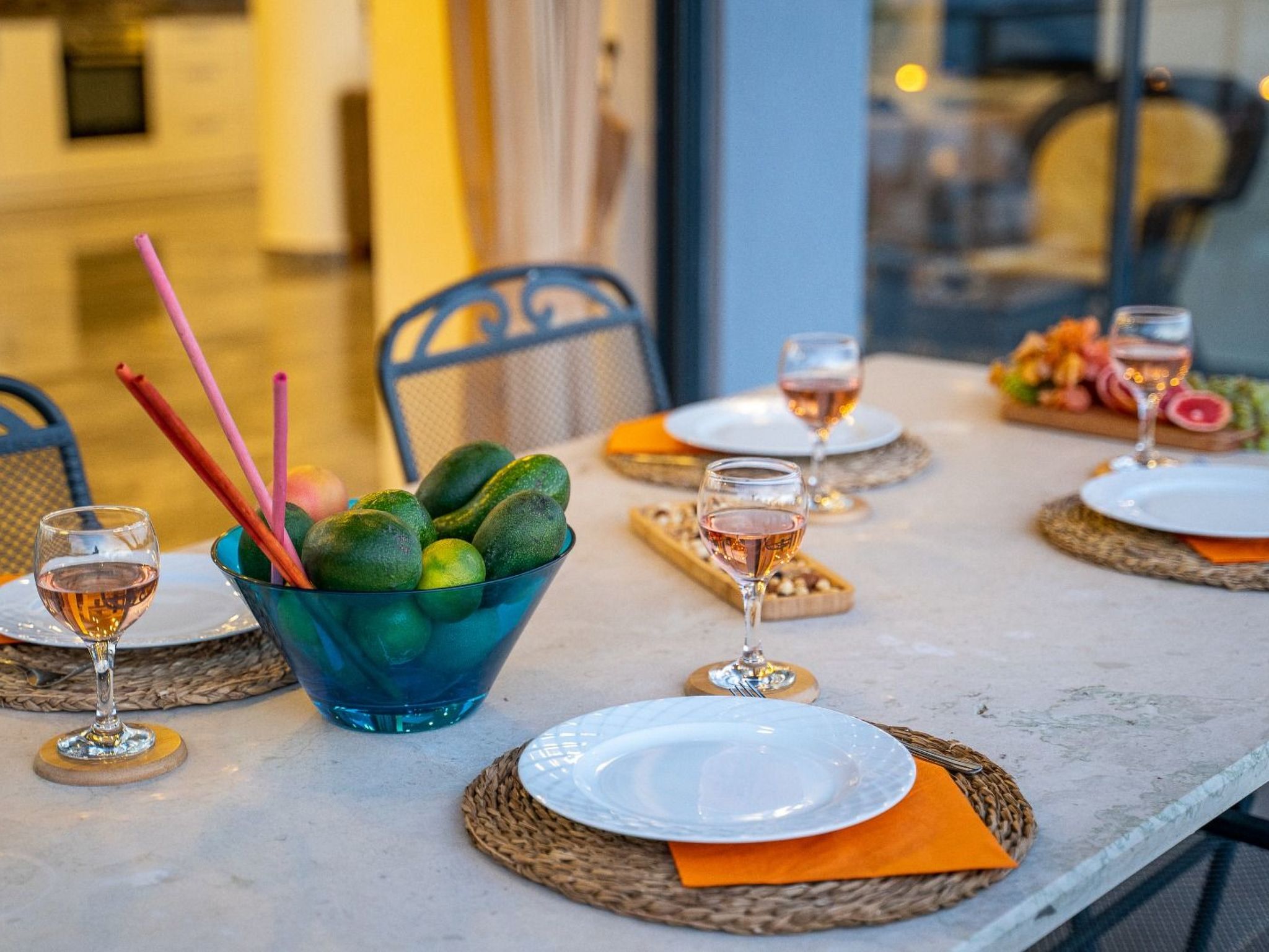 Innen bietet das Haus eine komfortable und einladende Atmosphäre mit fünf Schlafzimmern und ebenso vielen Badezimmern, die genügend Privatsphäre für alle Gäste garantieren. Eine Klimaanlage sorgt in allen Räumen für angenehme Temperaturen, während praktische Annehmlichkeiten wie eine Waschmaschine und eine Spülmaschine den Komfort während Ihres Aufenthalts erhöhen. Zur weiteren Ausstattung gehören ein Wasserkocher, was den Hausstand vervollständigt und Ihren Aufenthalt so angenehm wie möglich macht.