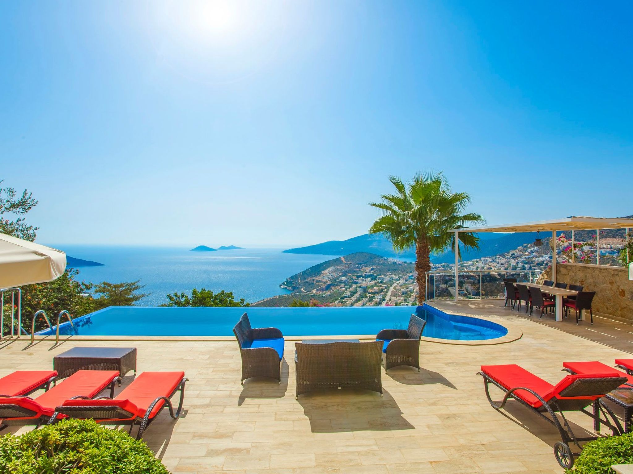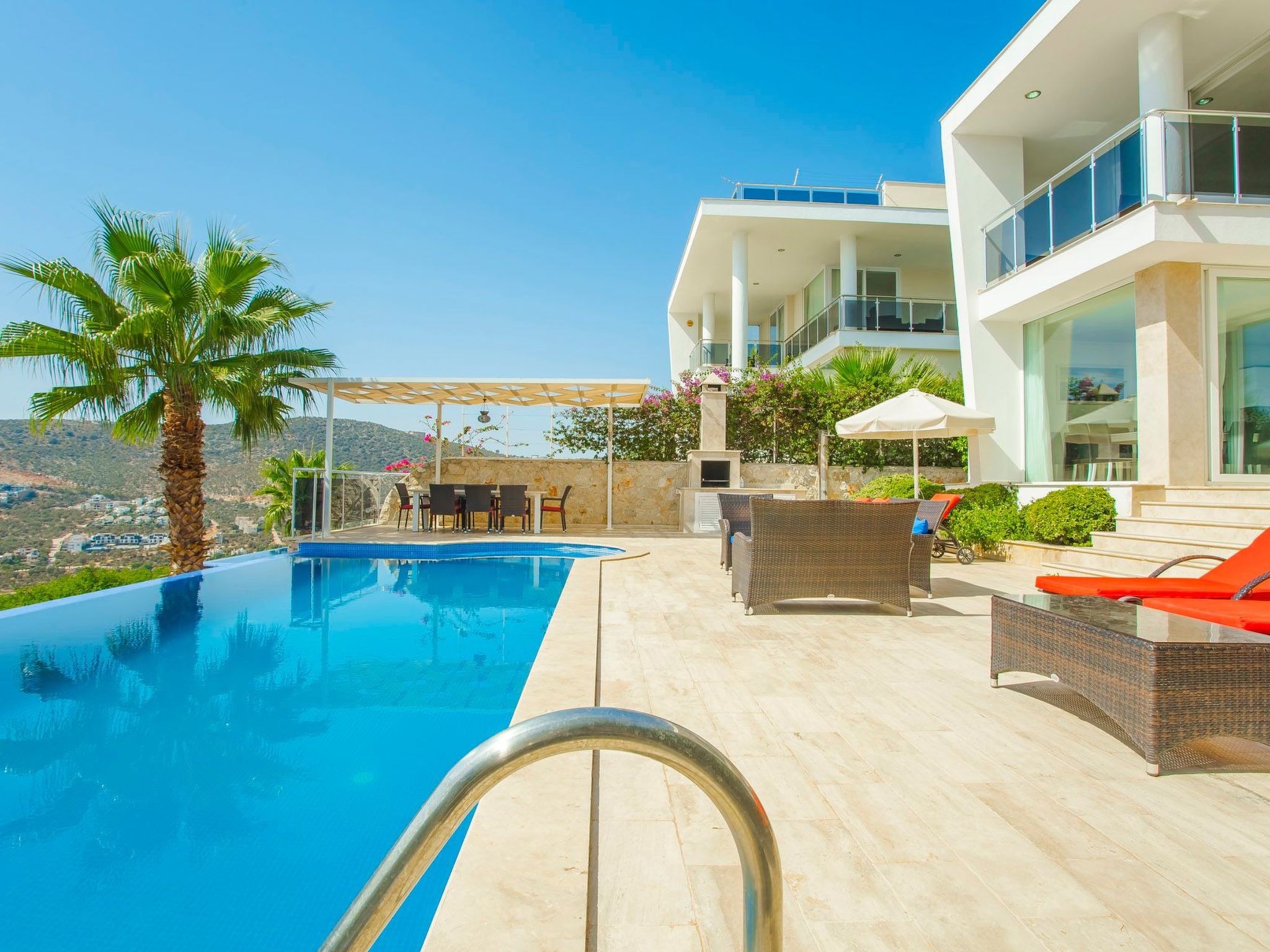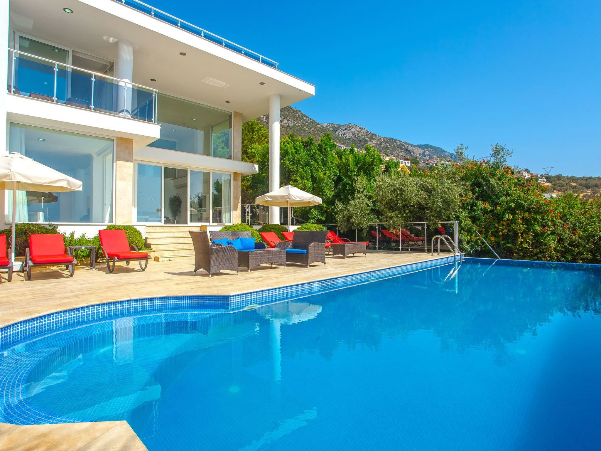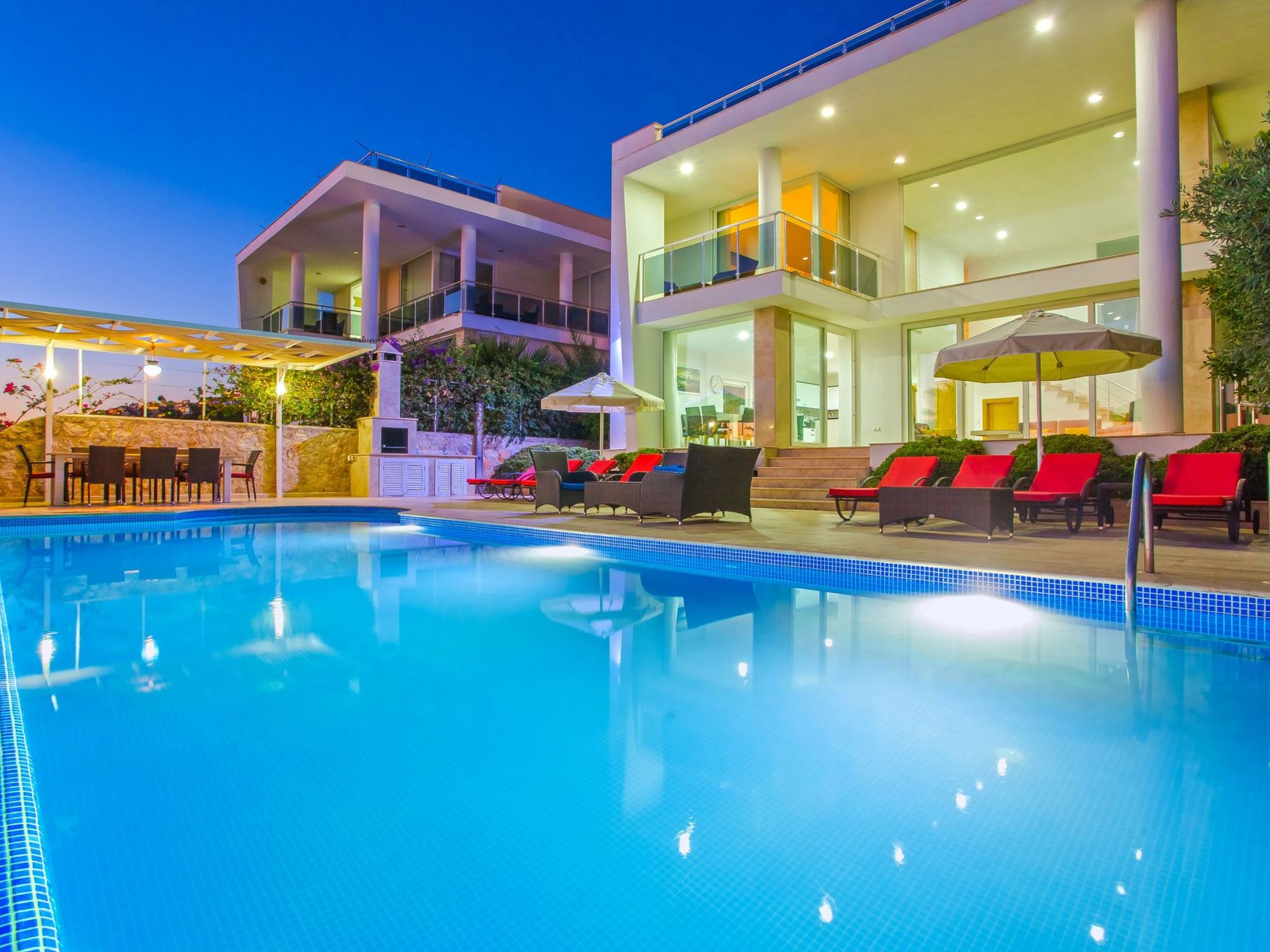 Der Außenbereich des Hauses umfasst eine großzügige Terrasse, einen Balkon sowie eine ausschließlich für Sie nutzbare Dachterrasse, die zu entspannten Stunden unter dem Himmel von Anatolien einlädt. Das Highlight ist sicherlich der private Pool, der an warmen Tagen für erfrischende Momente sorgt. Der Garten, der zur alleinigen Nutzung steht, bietet ausreichend Raum für Erholung und gemeinsame Aktivitäten im Freien.