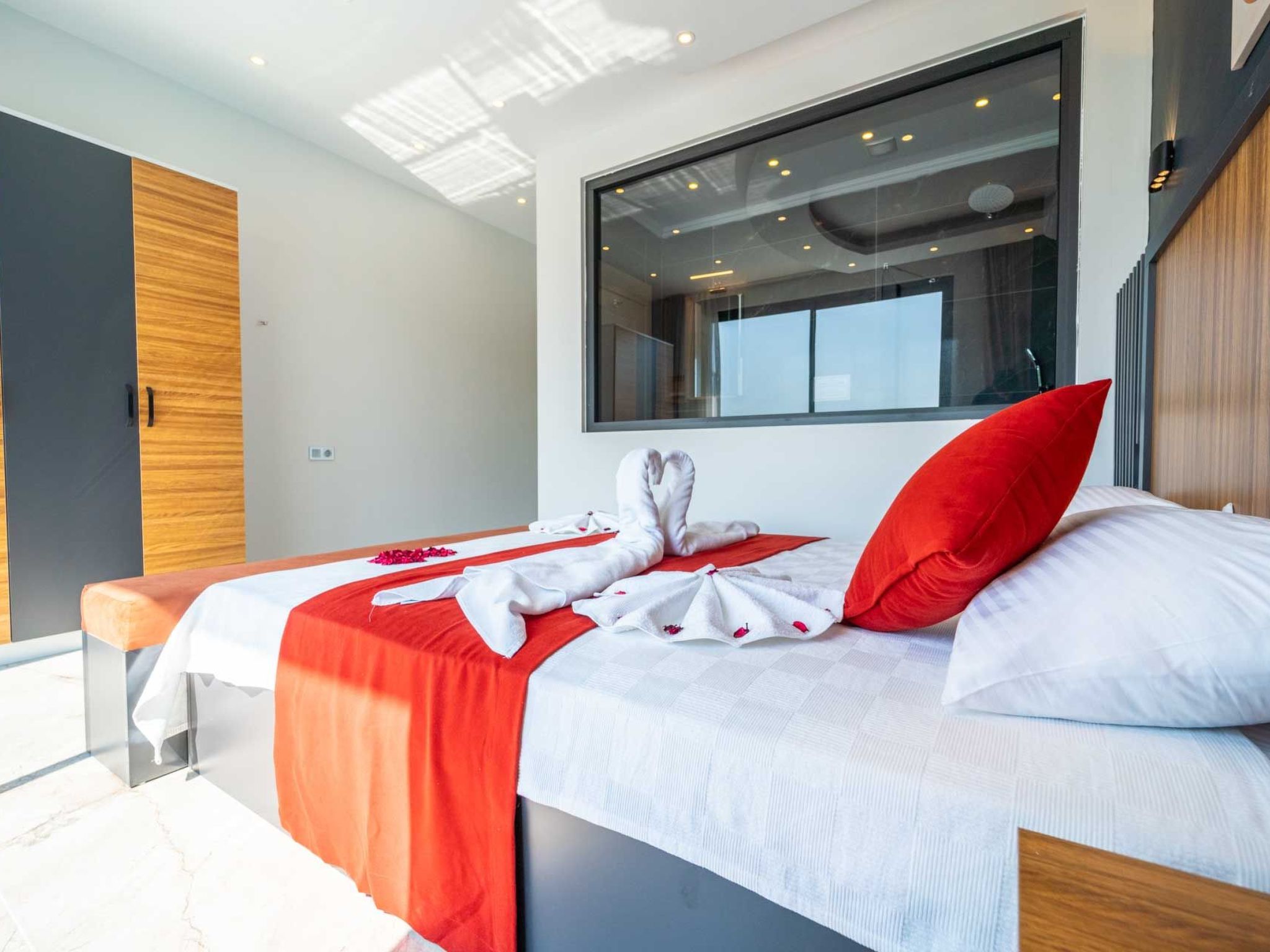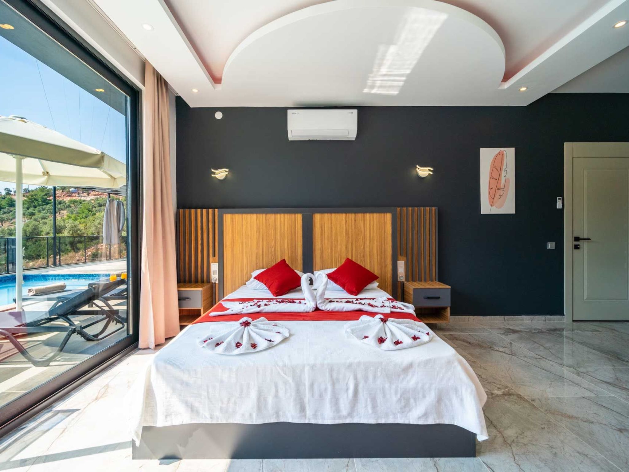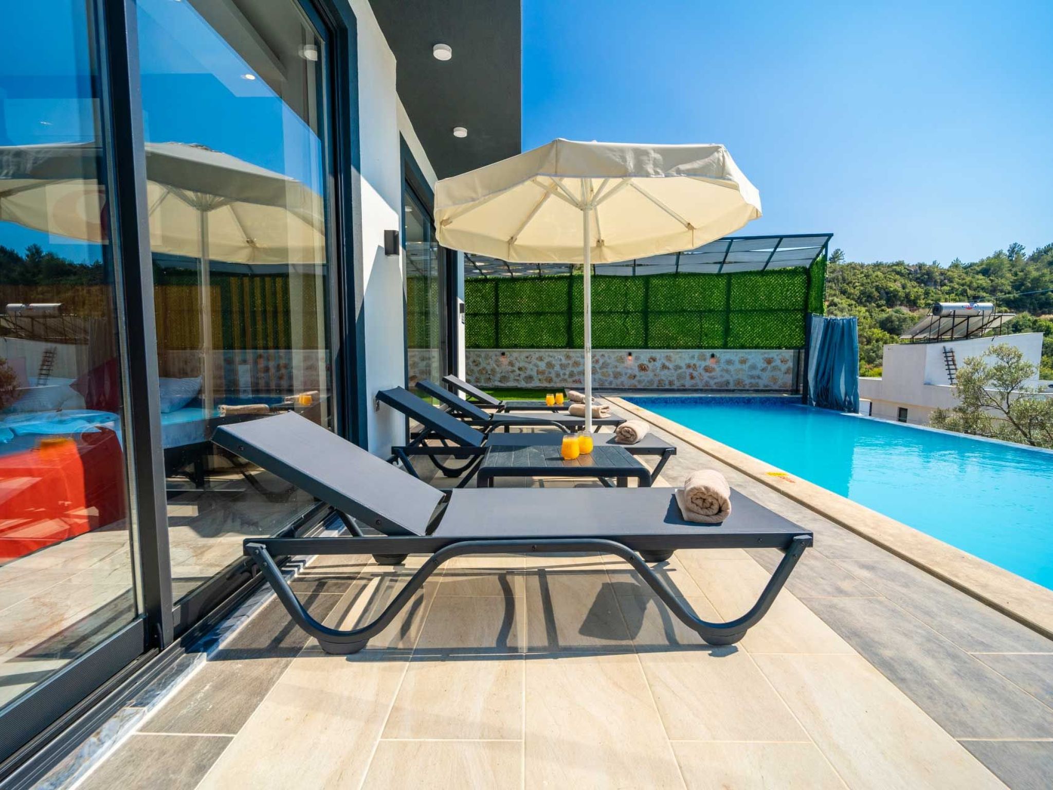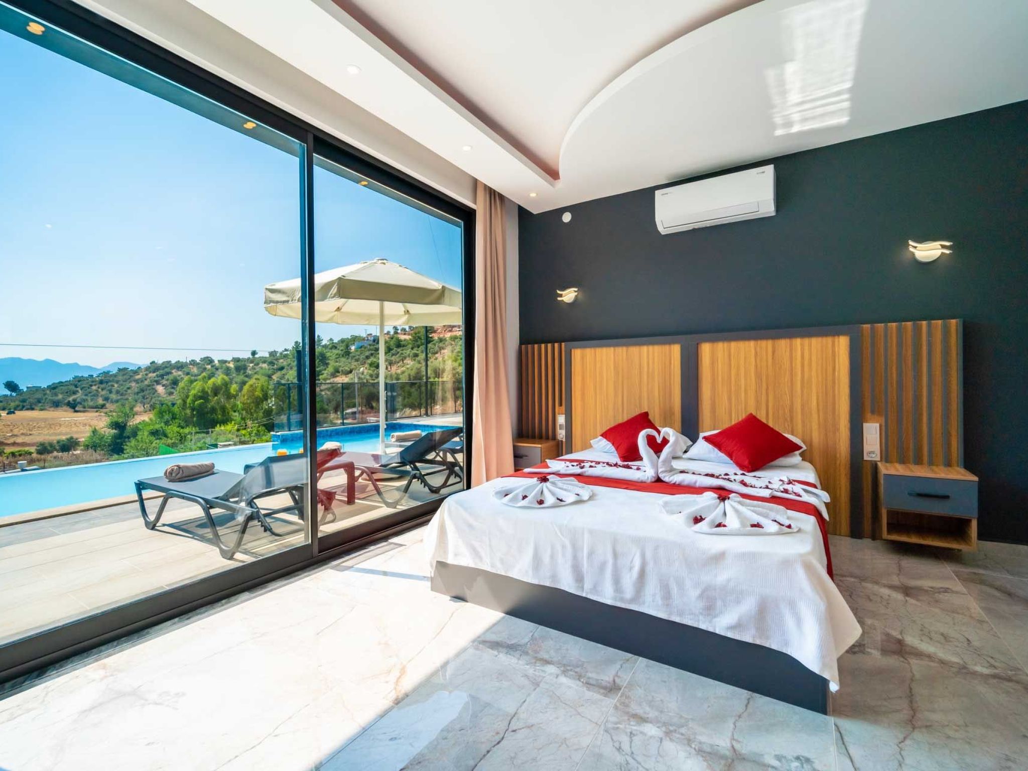 Die Villa ist liebevoll eingerichtet und strahlt eine warme und einladende Atmosphäre aus, die ideal für Flitterwochen ist. Sie können sich im Jacuzzi oder am Pool entspannen und die Ruhe und Schönheit der Natur auf sich wirken lassen. In der Umgebung gibt es zahlreiche Möglichkeiten für Aktivitäten wie Wandern, Besichtigungen und Ausflüge zu den nahegelegenen Stränden und Sehenswürdigkeiten. Erleben Sie unvergessliche Flitterwochen in unserer Villa in Kalkan Islamlar und genießen Sie einen luxuriösen und romantischen Aufenthalt in absoluter Privatsphäre.