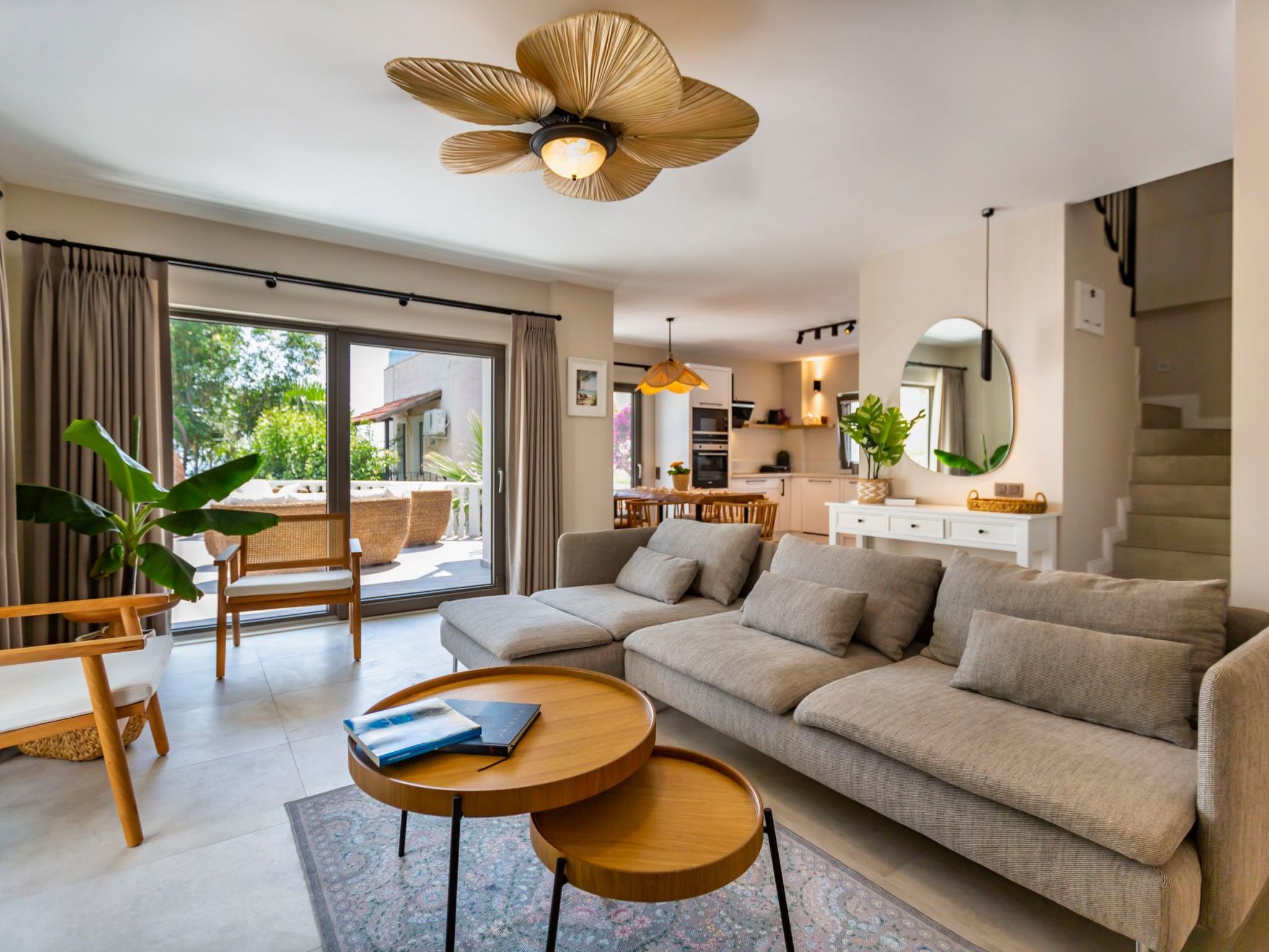 Diese außergewöhnliche Villa im Zentrum von Kalkan kombiniert moderne Eleganz mit gemütlichem Komfort und bietet den perfekten Ort für einen luxuriösen Aufenthalt. Die Villa besticht durch ihre zeitgemäße Architektur und hochwertige Einrichtung, die ein stilvolles und gleichzeitig warmes Ambiente schafft. Große Fensterfronten lassen viel Tageslicht herein und sorgen für ein offenes, luftiges Raumgefühl.