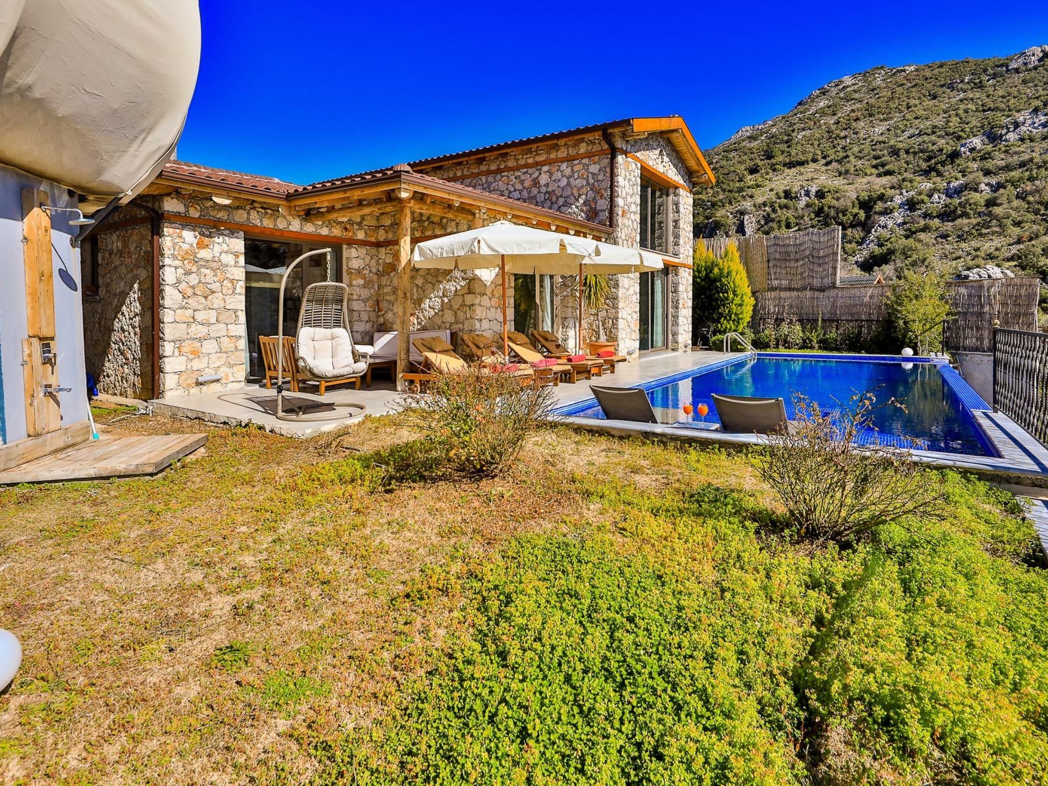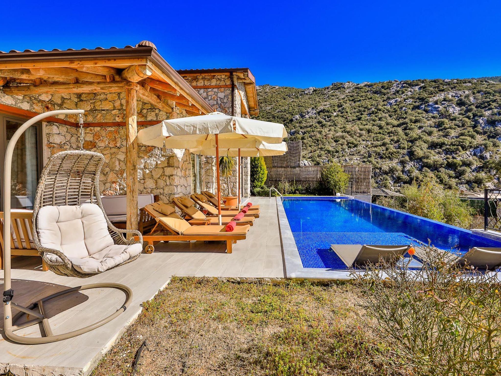 Genießen Sie die Ruhe und Gelassenheit von Kaş Kalkan Islamlar in unserer einladenden Natursteinvilla, einem Ort, an dem Sie die Schönheit der Natur in vollen Zügen genießen können. Erleben Sie unvergessliche Momente und lassen Sie den Alltag hinter sich, während Sie sich in diesem charmanten Rückzugsort verwöhnen lassen.