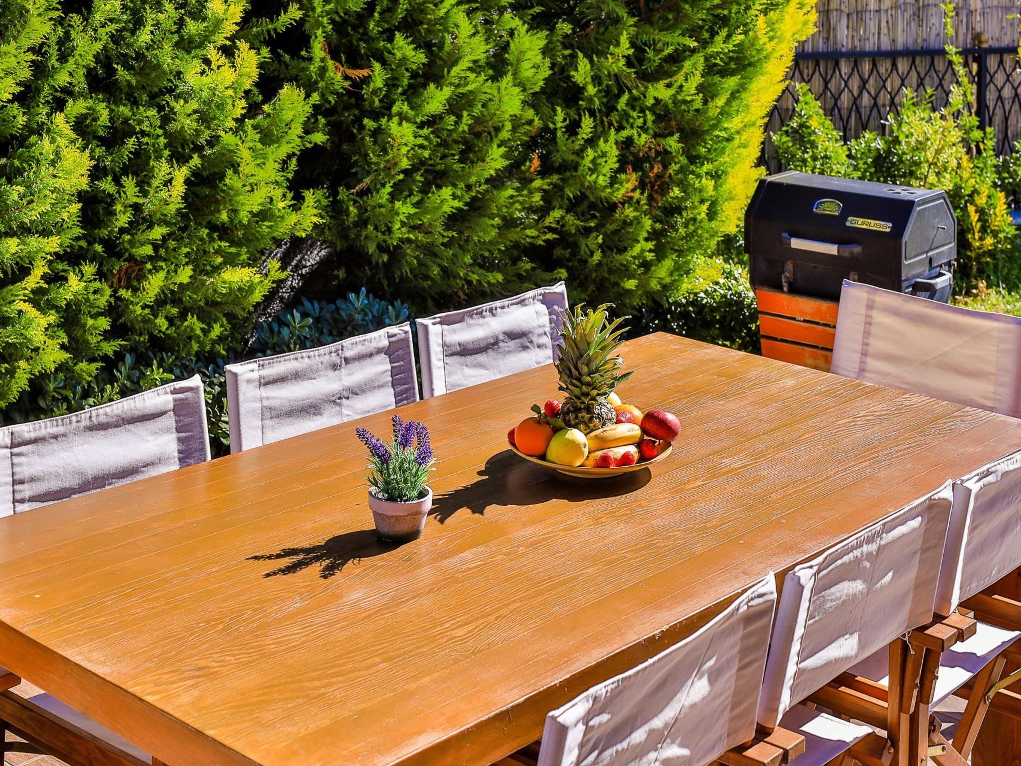 Umgeben von üppiger Vegetation und Bäumen bietet die Villa absolute Privatsphäre und einen natürlichen Sichtschutz. Hier können Sie sich in Ruhe entspannen und die Schönheit der Natur genießen, ohne sich um neugierige Blicke kümmern zu müssen.