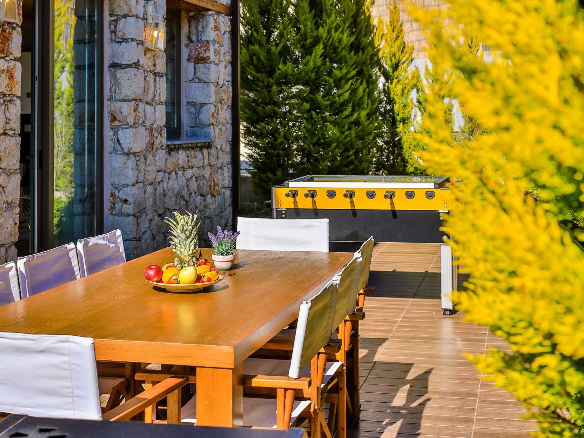 Das markante Merkmal unserer Villa ist zweifellos ihr traditioneller Natursteinbau, der sich harmonisch in die grüne Umgebung einfügt und einen zeitlosen Charme ausstrahlt. Die robusten Steinmauern verleihen der Villa eine einladende Atmosphäre und schaffen ein Gefühl von Wärme und Geborgenheit.