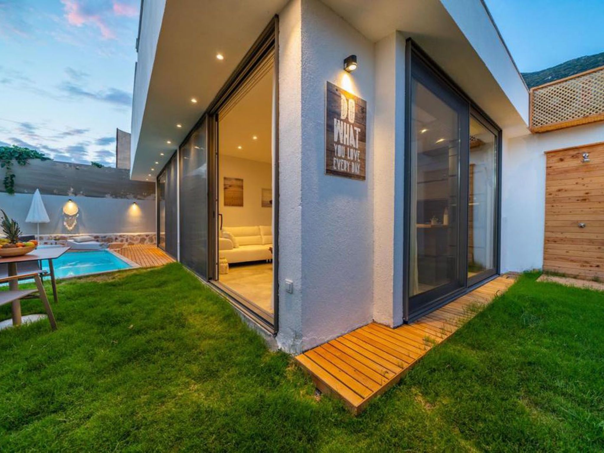Dieses Ferienhaus in Kalkan bietet einen außergewöhnlichen Ort für Paare, die Ruhe und Privatsphäre schätzen. Ohne die Ablenkungen eines Meerblicks können Sie sich voll und ganz aufeinander konzentrieren und die idyllische Atmosphäre genießen. Lassen Sie den Alltag hinter sich und erfreuen Sie sich an der Schönheit und der Ruhe, die dieses besondere Zuhause zu bieten hat.