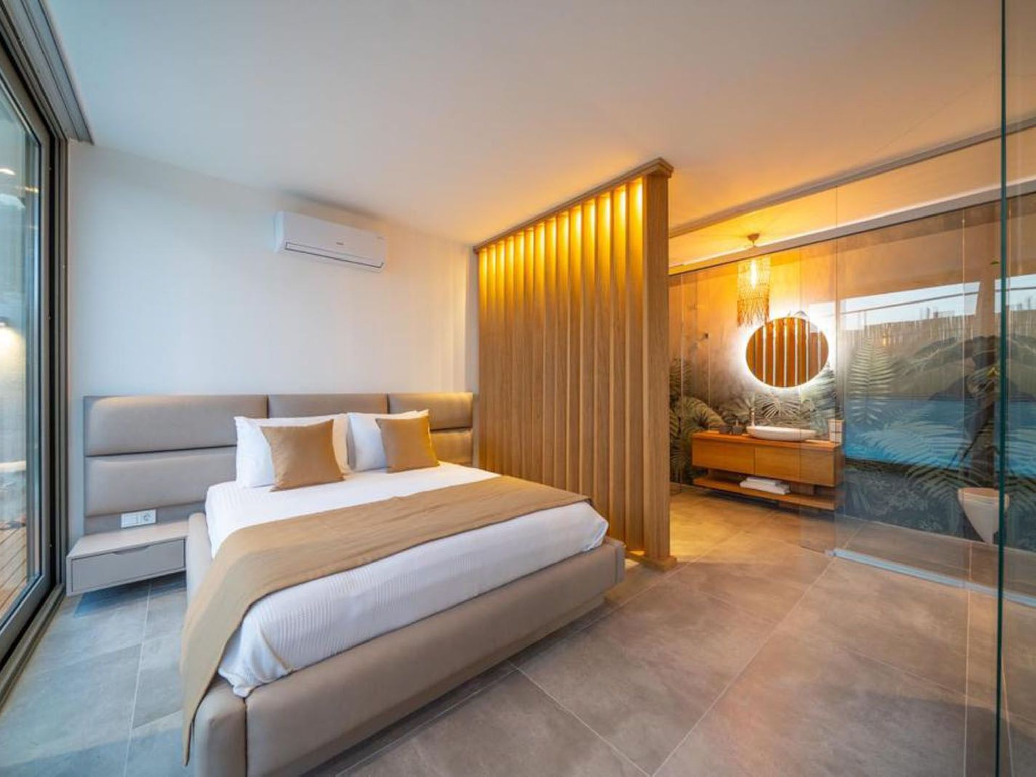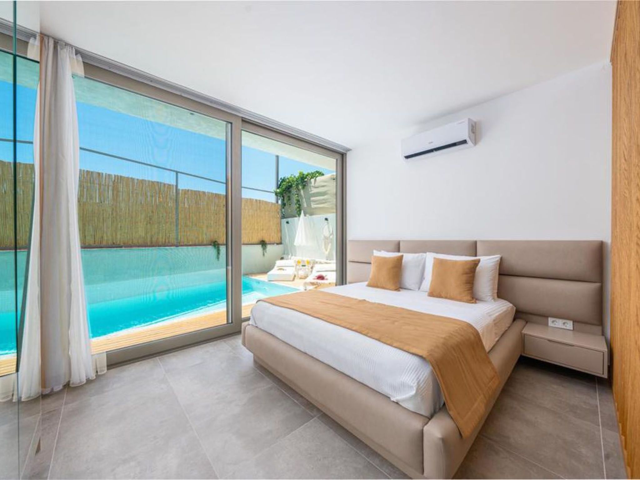 Das Innere des Ferienhauses ist darauf ausgerichtet, Ihnen einen komfortablen und angenehmen Aufenthalt zu gewährleisten. Es verfügt über ein abdunkelbares Schlafzimmer, perfekt für ausschlafende Vormittage und intime Abendstunden. Eine Klimaanlage sorgt überall für angenehme Temperaturen, während die zur alleinigen Nutzung bestimmten Annehmlichkeiten wie eine Waschmaschine und eine Spülmaschine Ihren Aufenthalt praktisch und sorgenfrei gestalten. Eine Dusche im Badezimmer, ein Wasserkocher und die Nutzung von Solarenergie unterstreichen die durchdachte Ausstattung des Hauses.