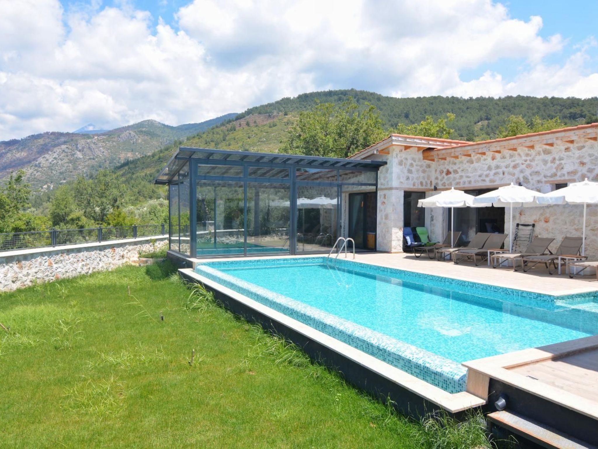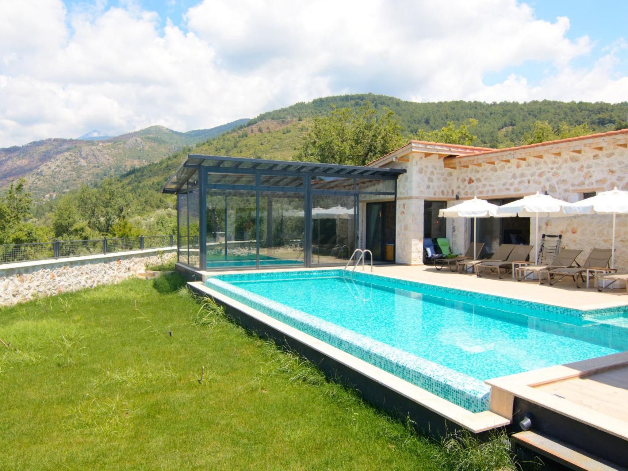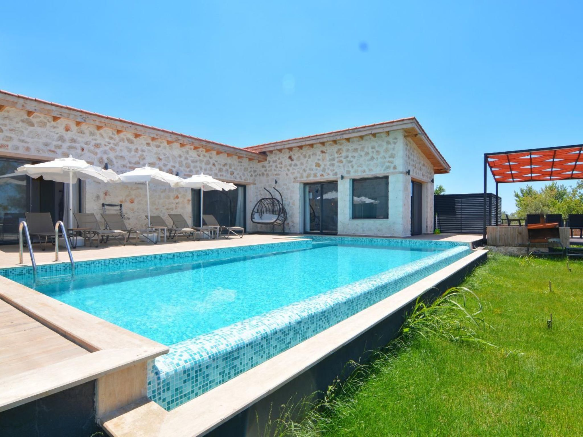 Entdecken Sie die Schönheit und Ruhe der türkischen Landschaft mit einem Aufenthalt in dieser bezaubernden Natursteinvilla in Kalkan Üzümlü. Diese einzigartige Unterkunft ist nur 9 km vom Zentrum entfernt und bietet Platz für bis zu 6 Personen, wobei sie mit einem Indoorpool und einem atemberaubenden Blick auf die umliegenden Berge begeistert.
