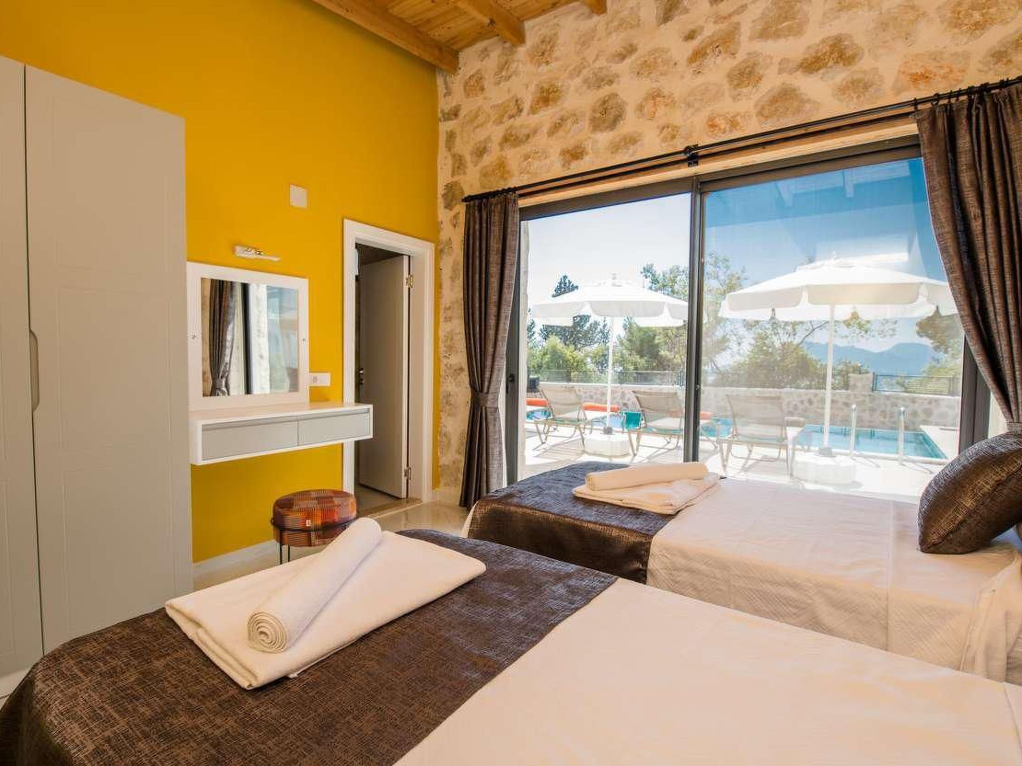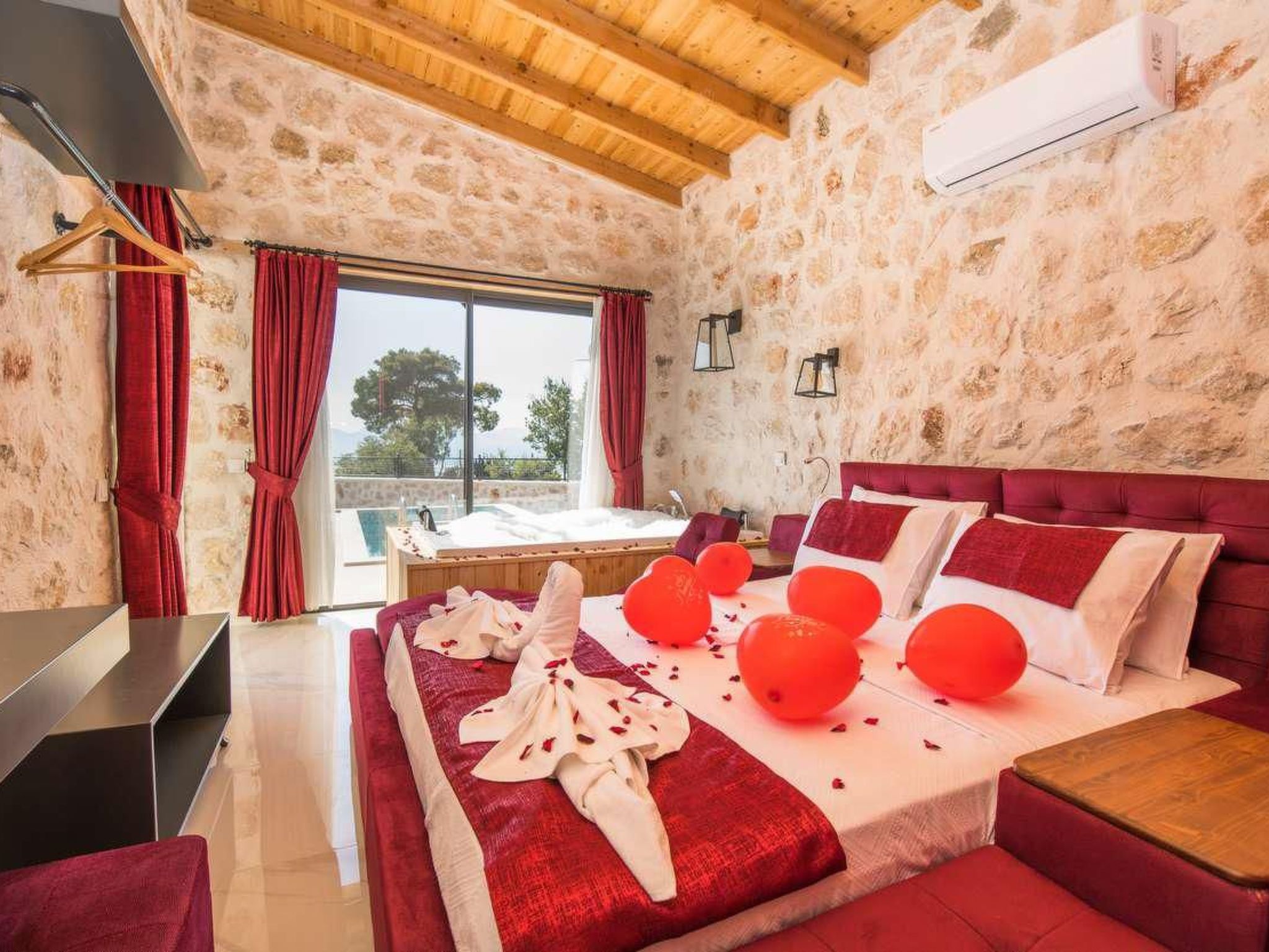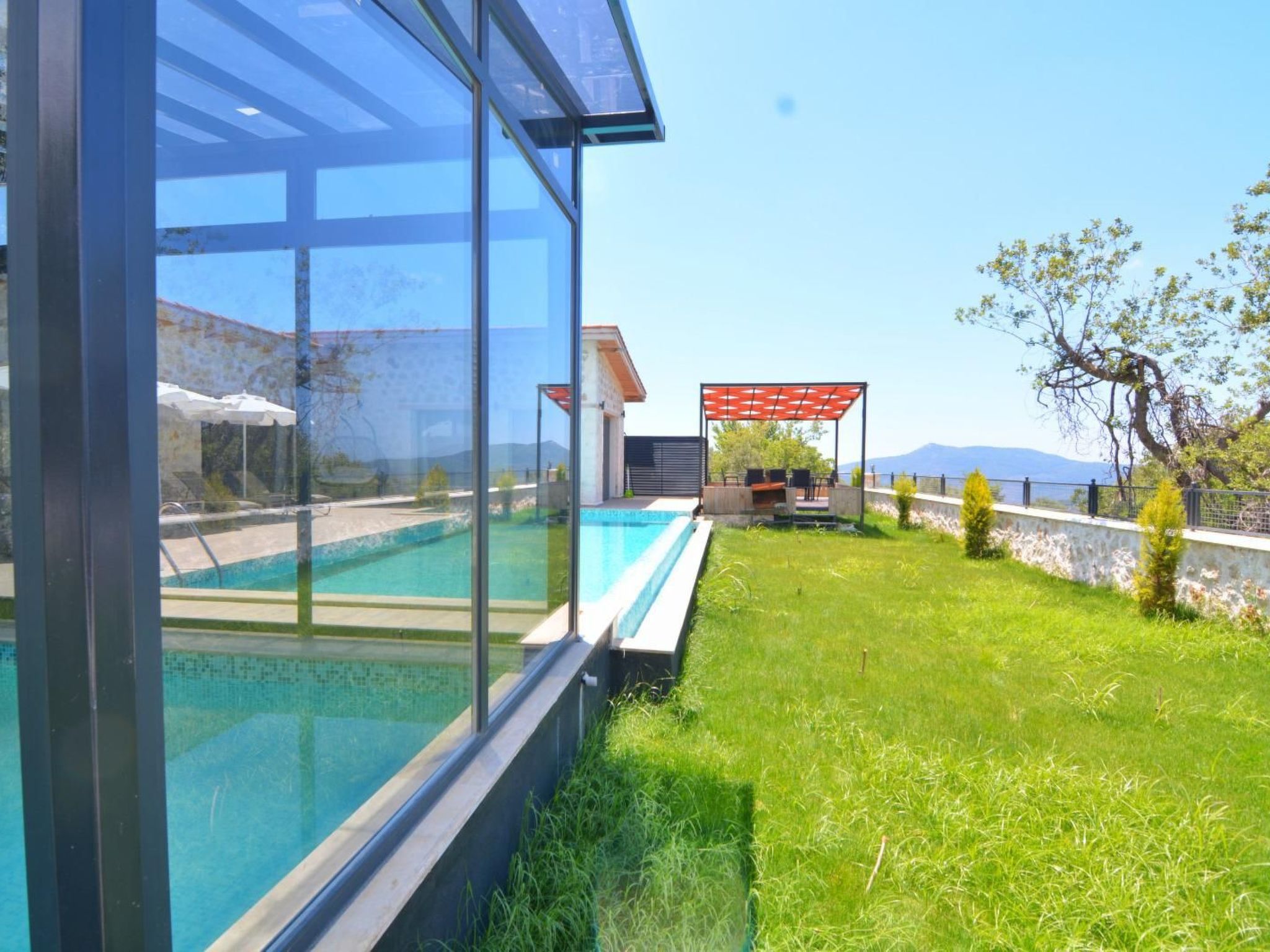 Entdecken Sie die Schönheit und Ruhe der türkischen Landschaft mit einem Aufenthalt in dieser bezaubernden Natursteinvilla in Kalkan Üzümlü. Diese einzigartige Unterkunft ist nur 9 km vom Zentrum entfernt und bietet Platz für bis zu 6 Personen, wobei sie mit einem Indoorpool und einem atemberaubenden Blick auf die umliegenden Berge begeistert.