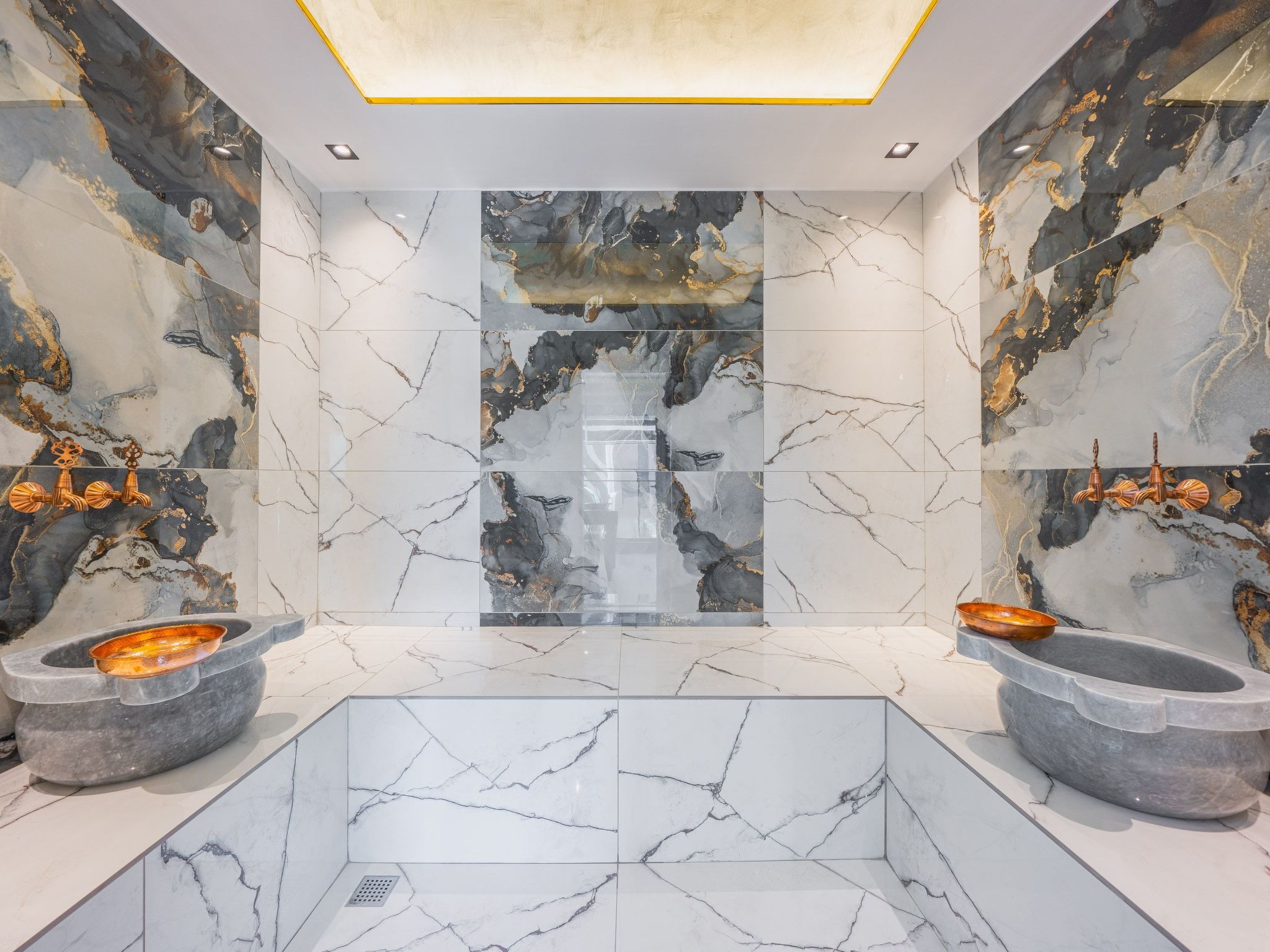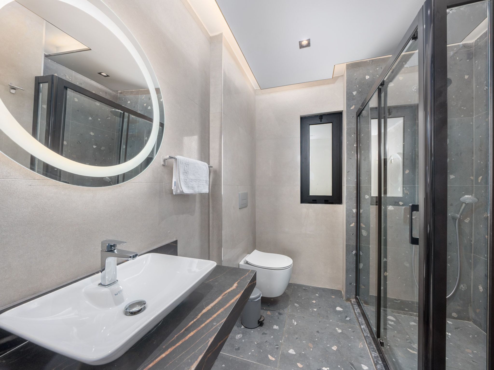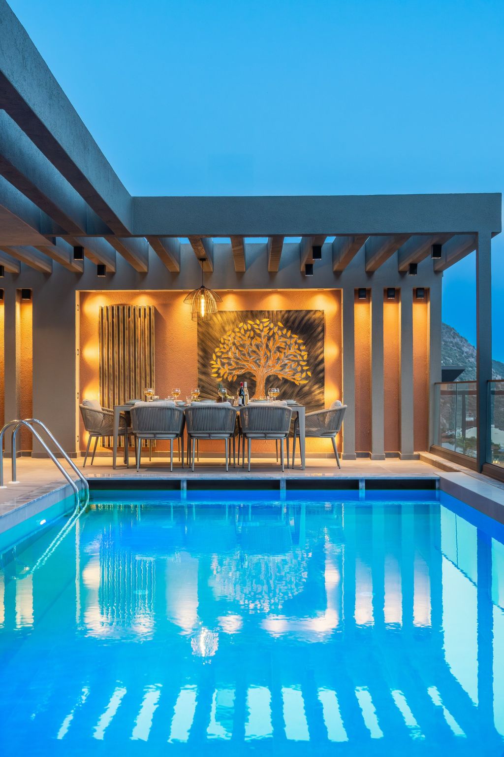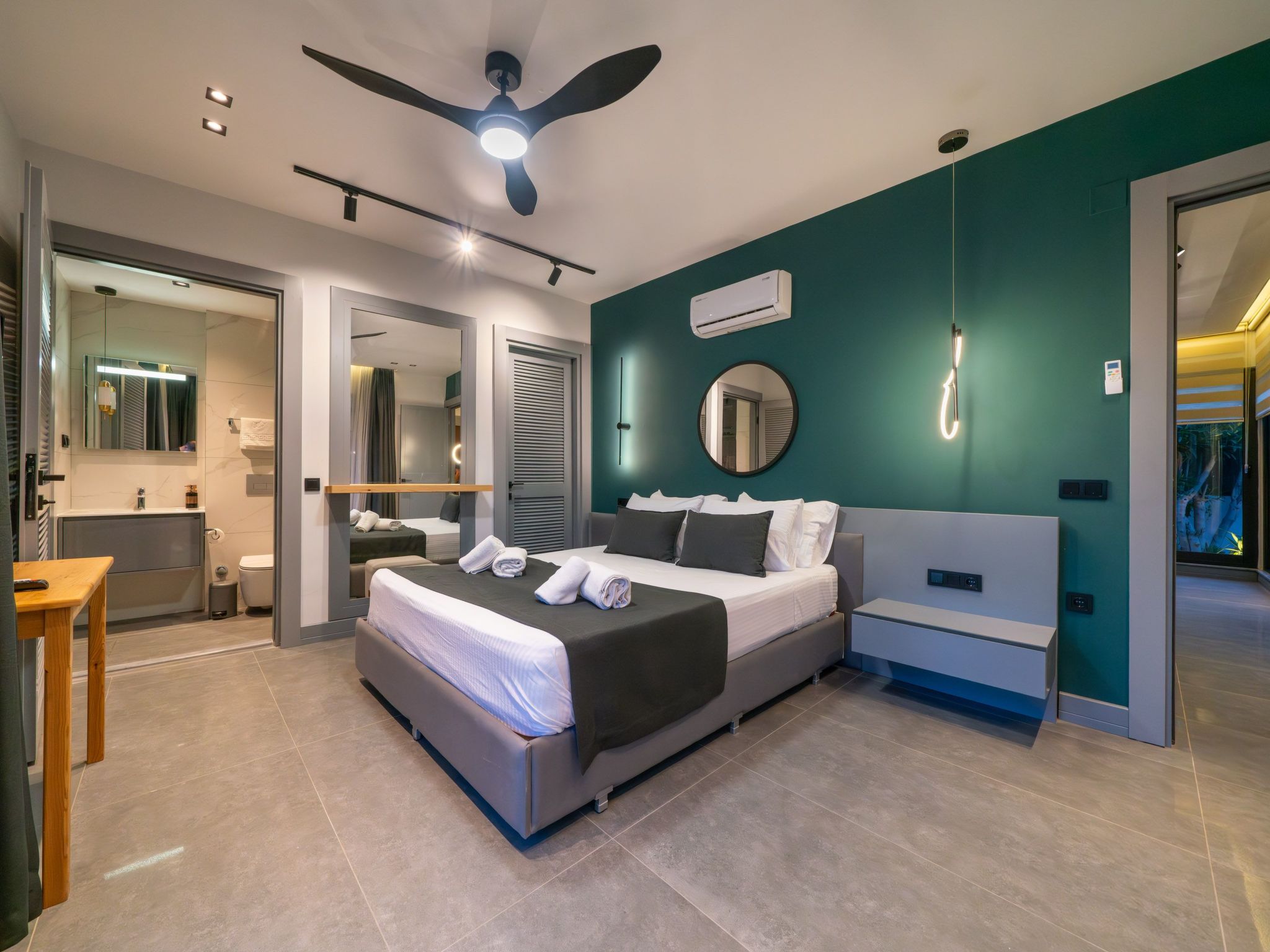 Im Außenbereich lädt ein exklusiver Pool zur alleinigen Nutzung ein, der perfekte Ort, um sich unter der Sonne Anatoliens zu entspannen. Die großzügige Terrasse und der umliegende Garten sind ideal, um die Ruhe und Schönheit der Natur in privater Atmosphäre zu genießen. Eine Dachterrasse bietet zusätzlichen Raum im Freien und ergänzt die Vielfalt der Möglichkeiten, in denen Sie Ihre Tage verbringen können.